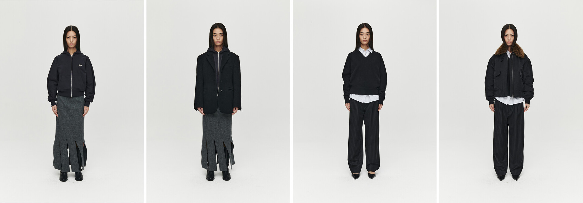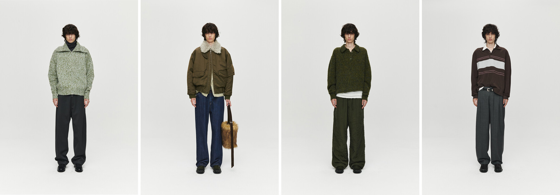 HEUTE AW25 Collection is inspired by the post-work moment the transition from the tension of the day to the freedom of the evening. The diagonal motif, drawn from the tracks of the commute home, interweaves with the contrast of shearling and padded textures to visualize the moment of transition. It embodies a sense where structure and softness coexist, reflecting a new lifestyle beyond work.