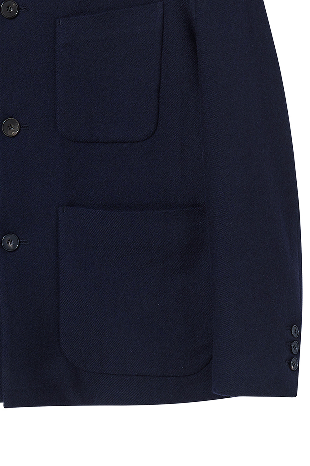 워크 자켓에서 차용한 아웃포켓 디테일이 실용성과 구조미를 함께 담아내며 셋업 트라우저와 함께 여유롭고도 세련된 무드로 연출.