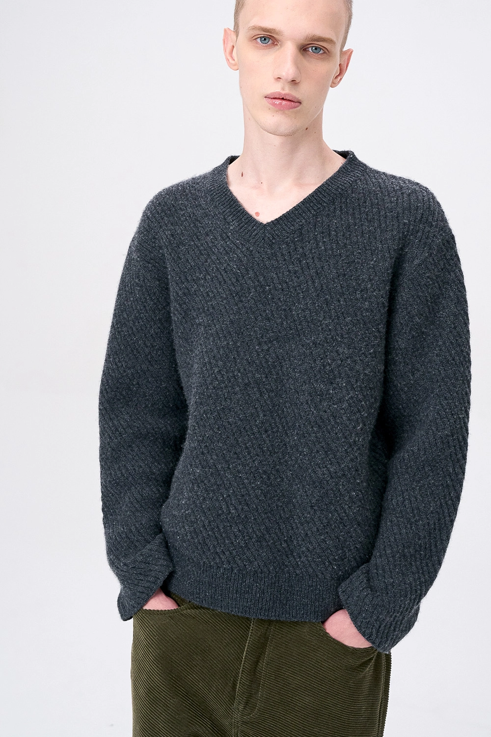 [ANYTIME LOREAK] CAMPSIS V-NECK KNIT- CHARCOAL