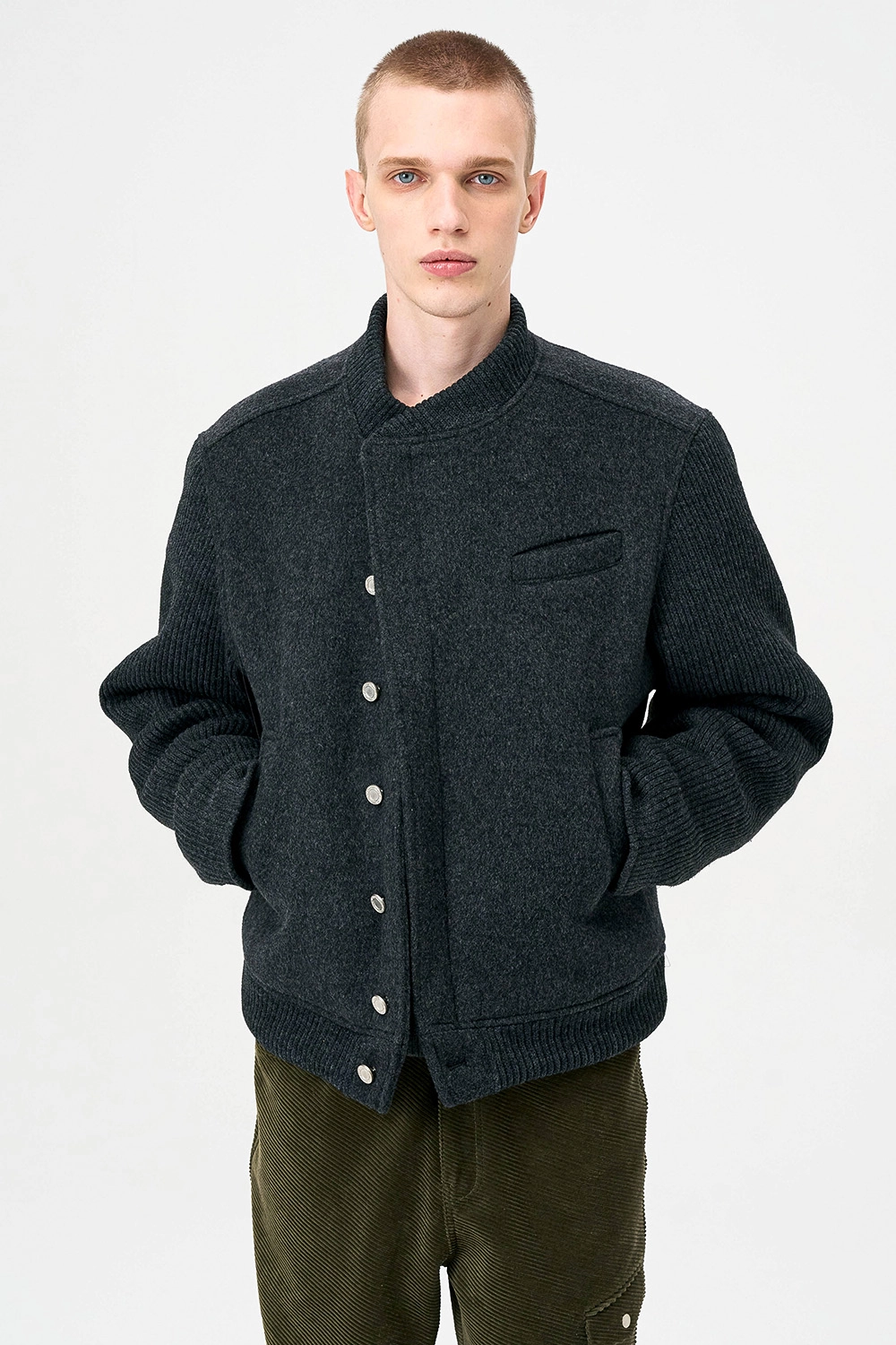 [ANYTIME LOREAK] TULIP VARSITY JACKET- CHARCOAL