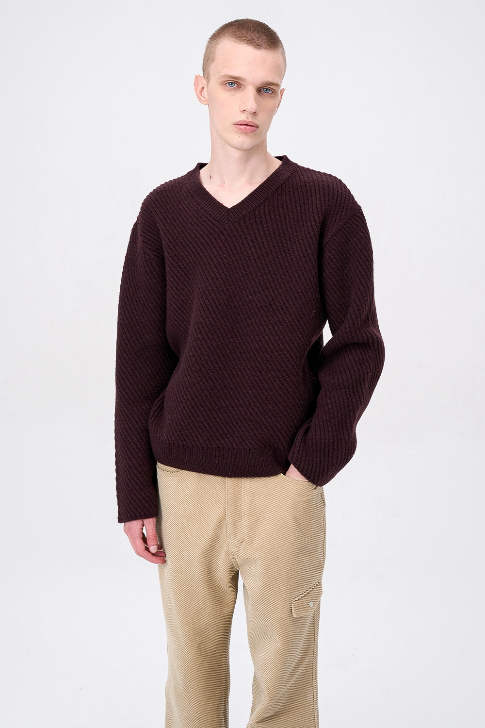 [ANYTIME LOREAK] CAMPSIS V-NECK KNIT-MULBERRY