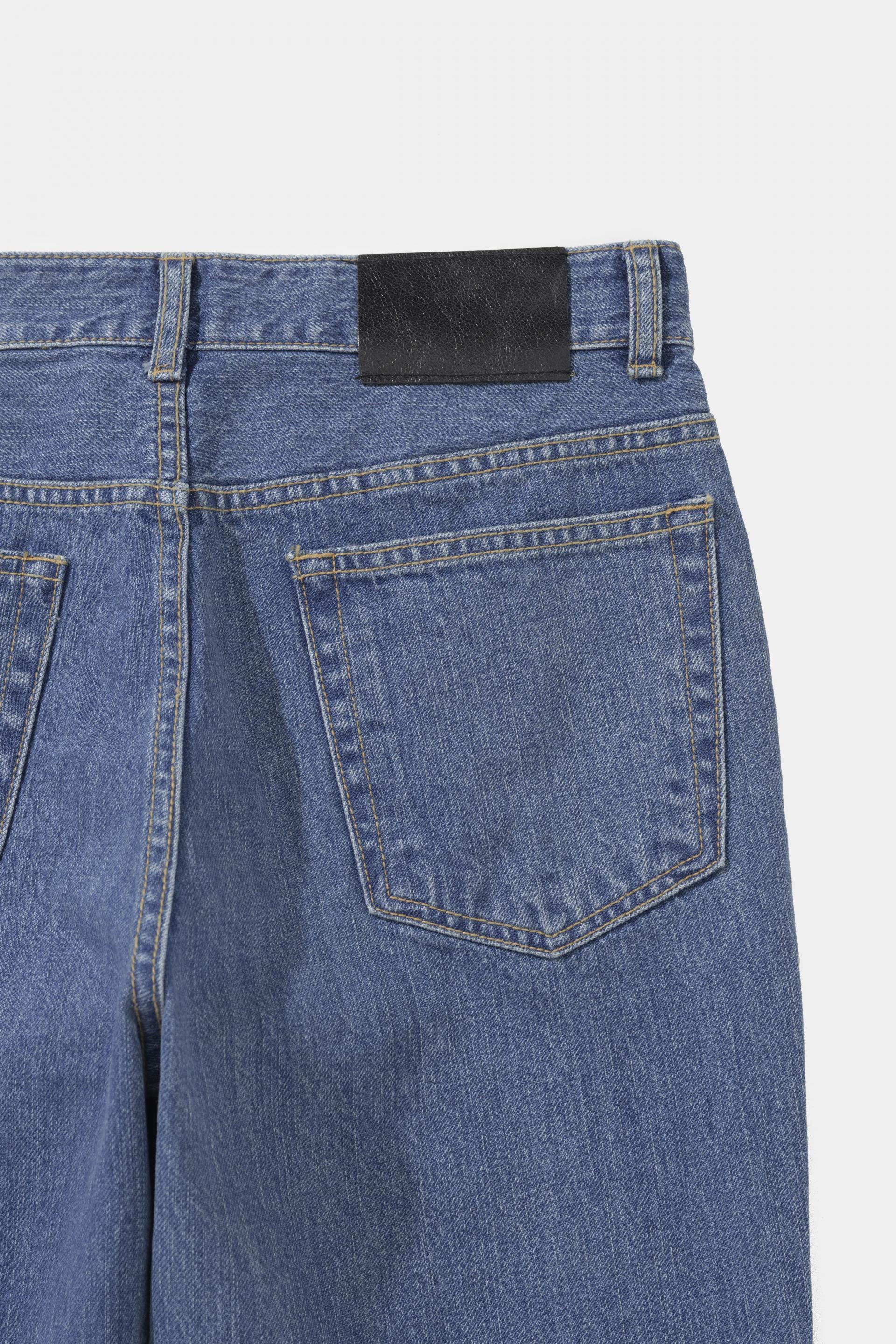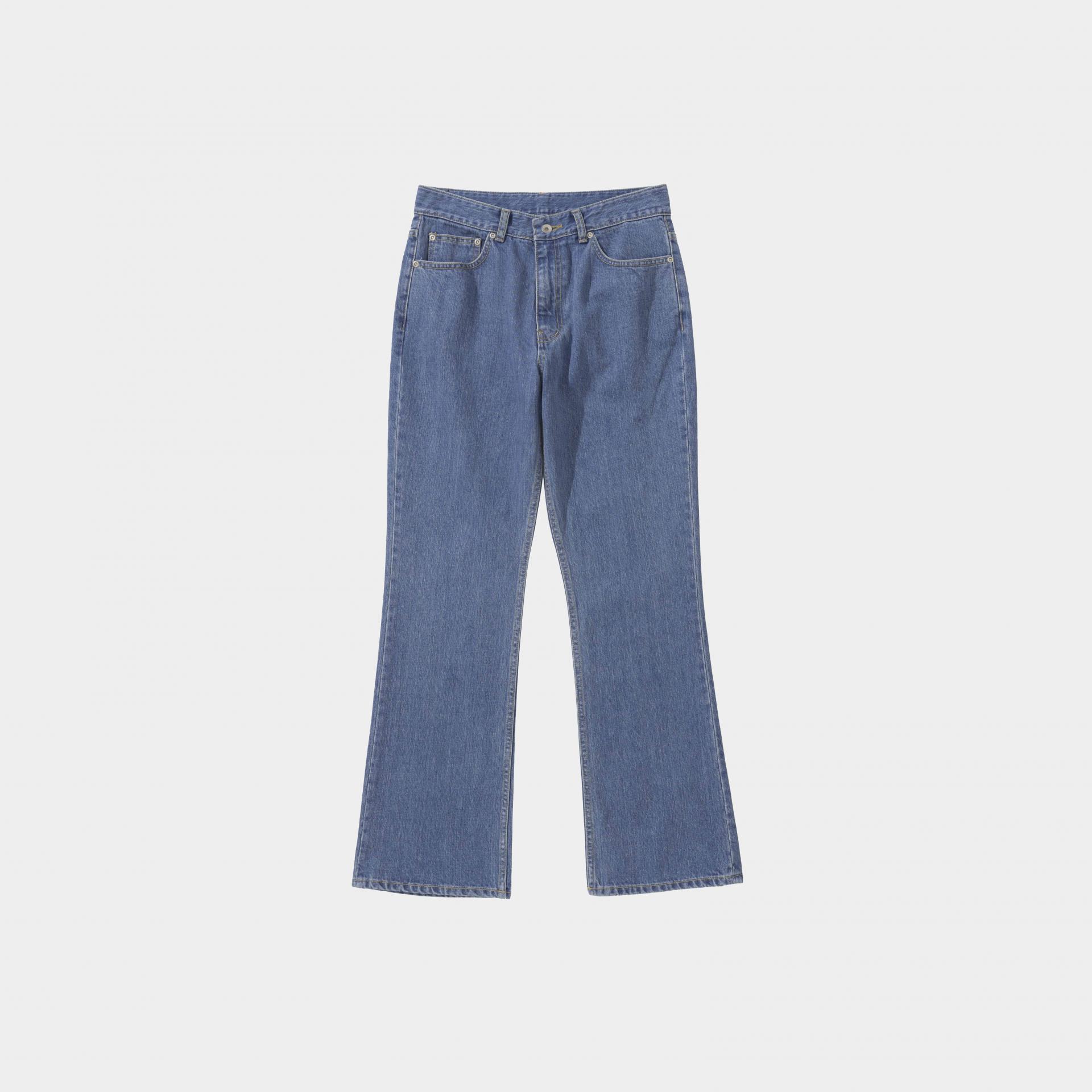 과한 부츠컷보다는 슬림한 실루엣에서 크게 벚어나지 않게 무릎부분부터 밑단까지의 차이를 크게 두지 않고 자연스러운 라인으로 제작된 부츠컷 데님입니다.