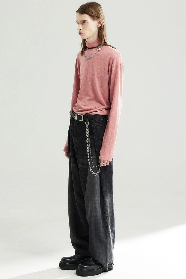 [HALEINE] JACQUARD FINGER HOLE HIGHNECK KNIT T-SHIRTS PINK(ST202)SALE