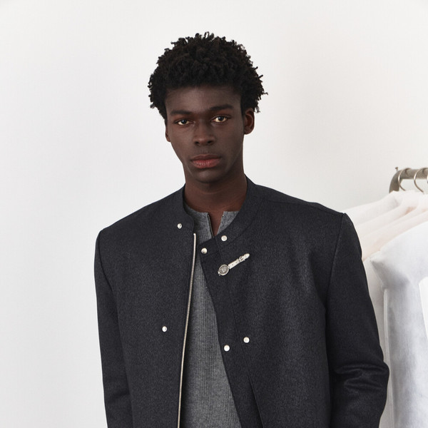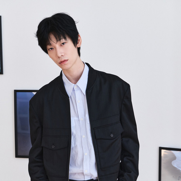 [WAVINESS] High Neck Collar Jacket - Light Grey