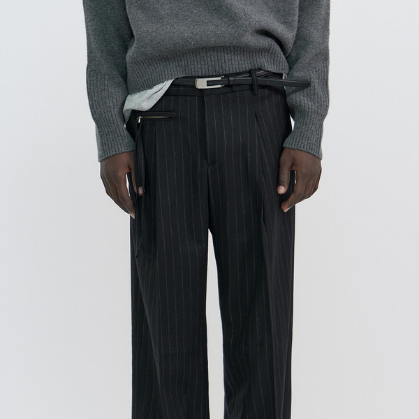 [WINDER] PULLER STRIPE WOOL TROUSERS - BLACK