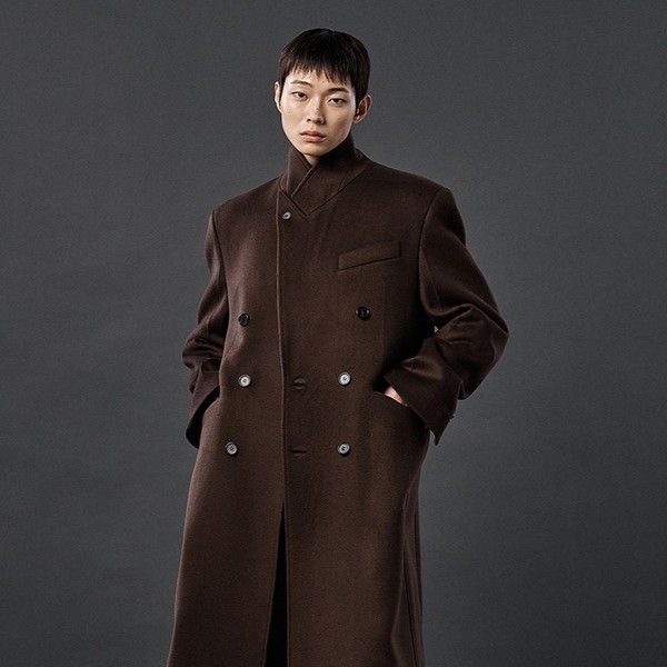 [HALEINE] WOOL CASHMERE DOUBLE-BREASTED COAT BROWN (WJ410)