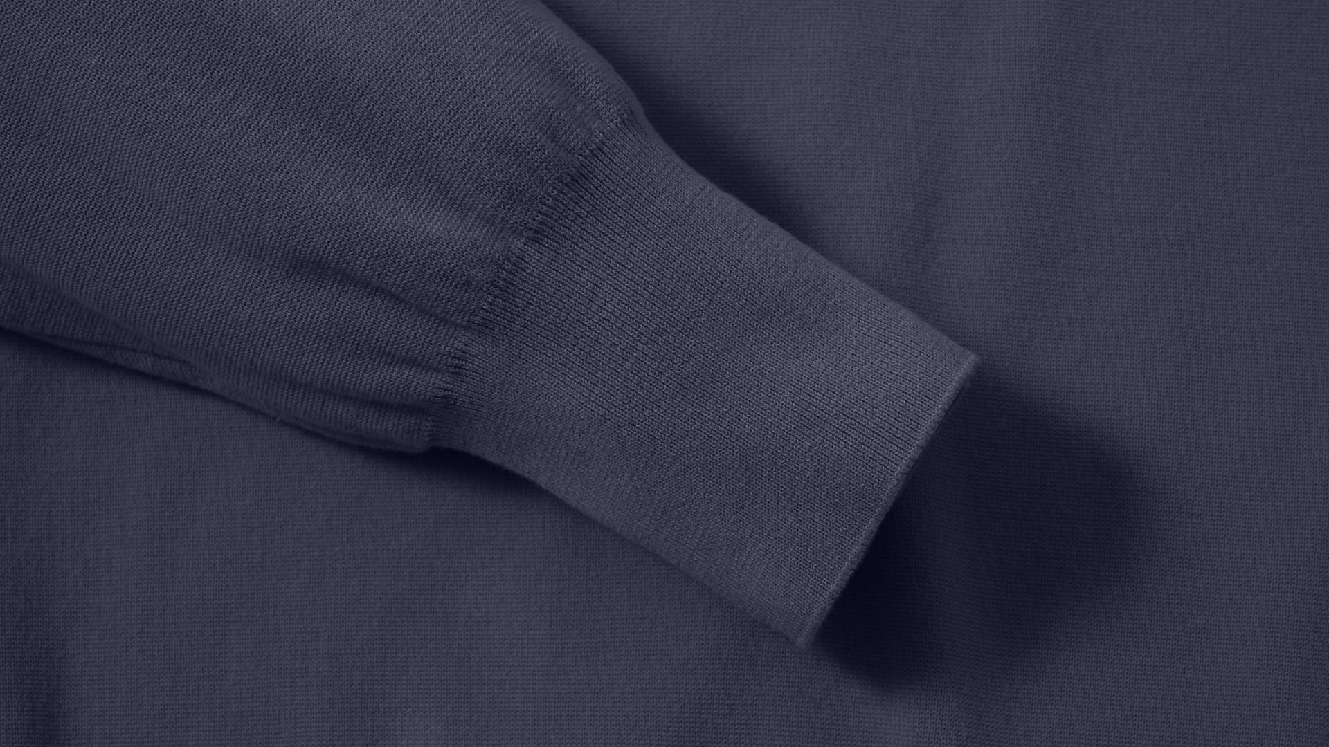편안한 착용감과 깔끔한 디자인의 립 형태 소매와 밑단입니다.