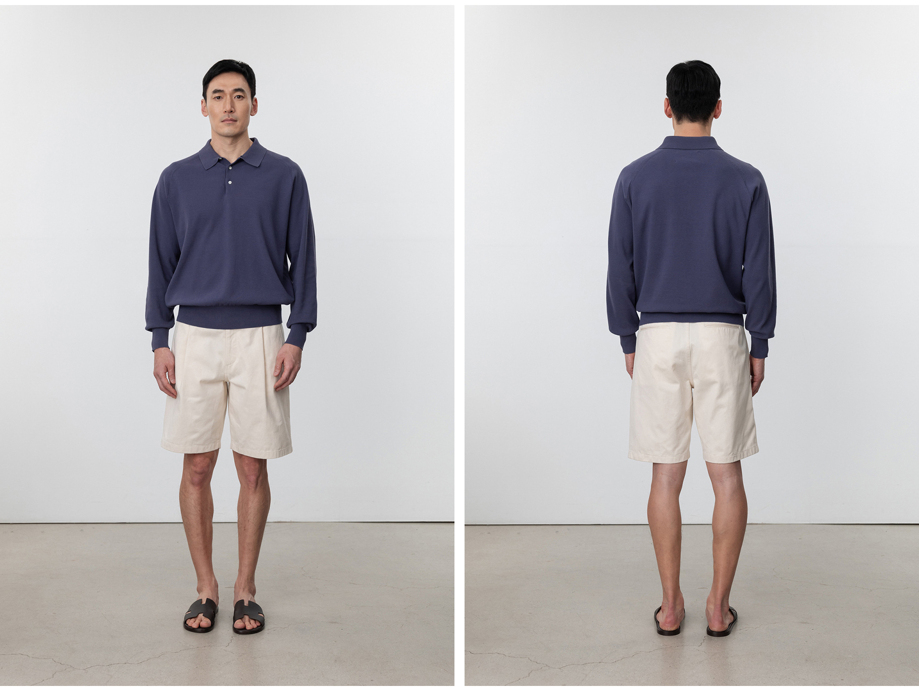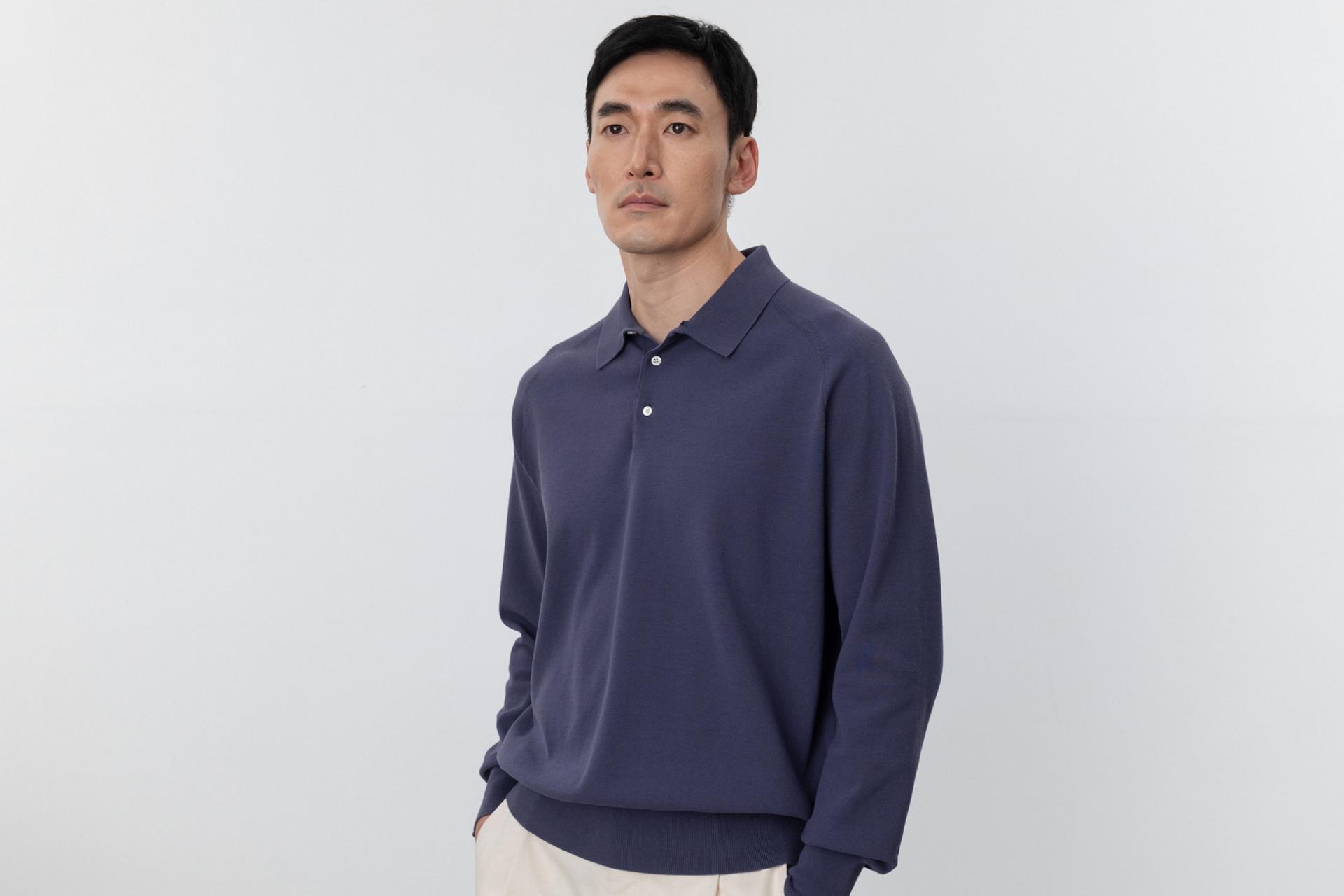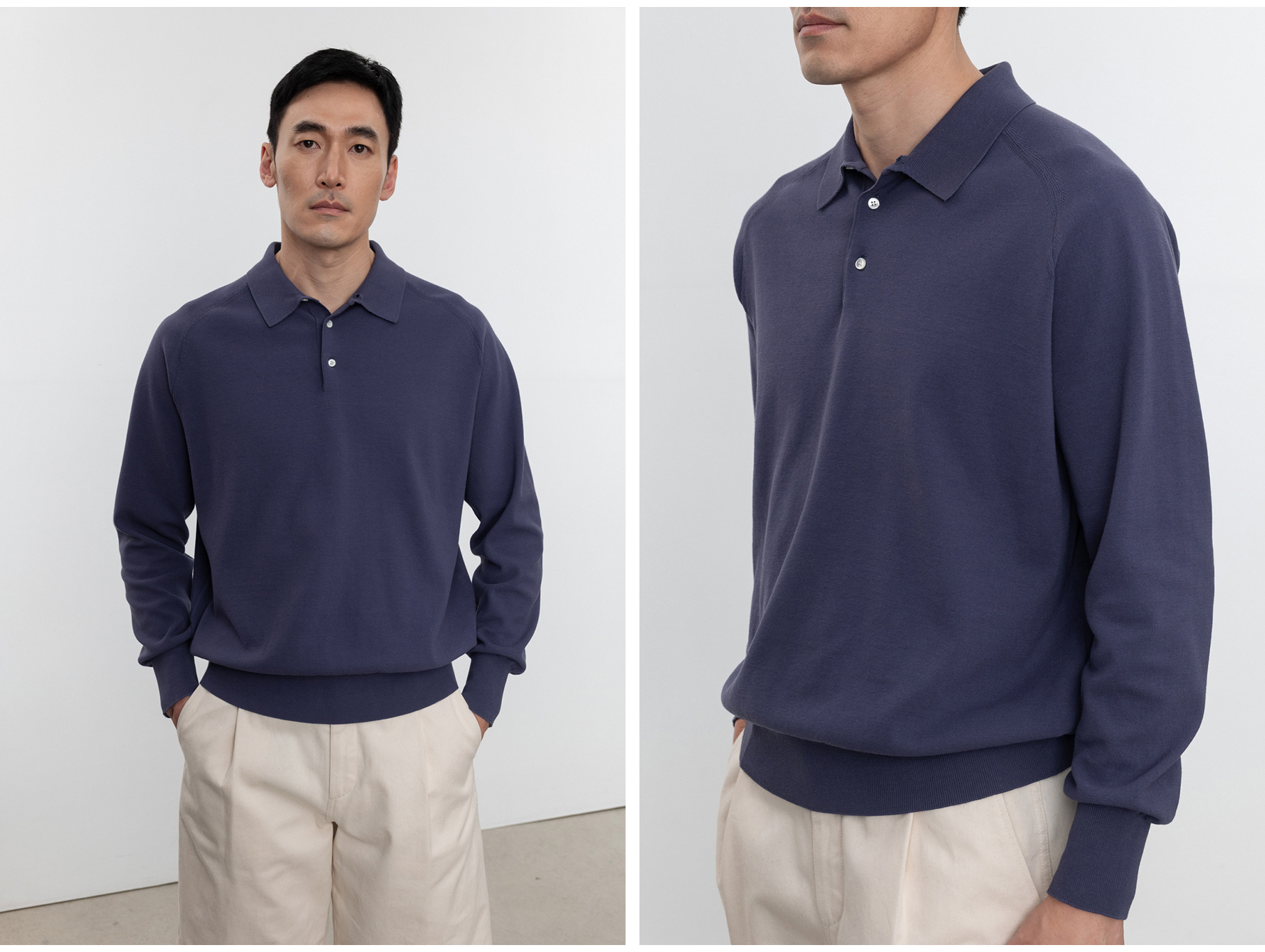 레귤러한 폴로 칼라와 단추 여밈 갯수에 따라 다양한 스타일링을 연출할 수 있습니다.