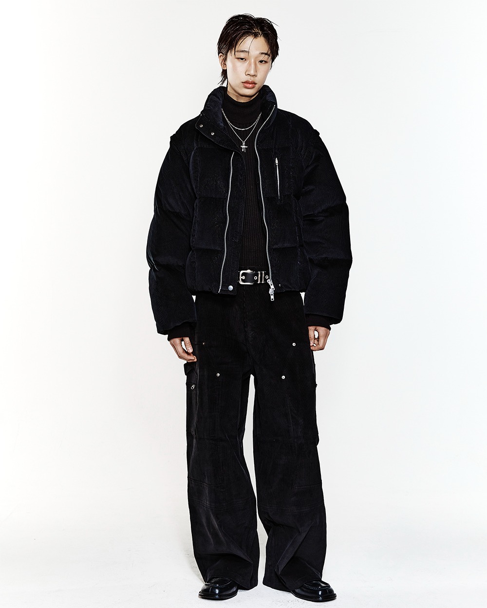 DETACHABLE CORDUROY DUCK DOWN JACKET BLACK(VJ408)
