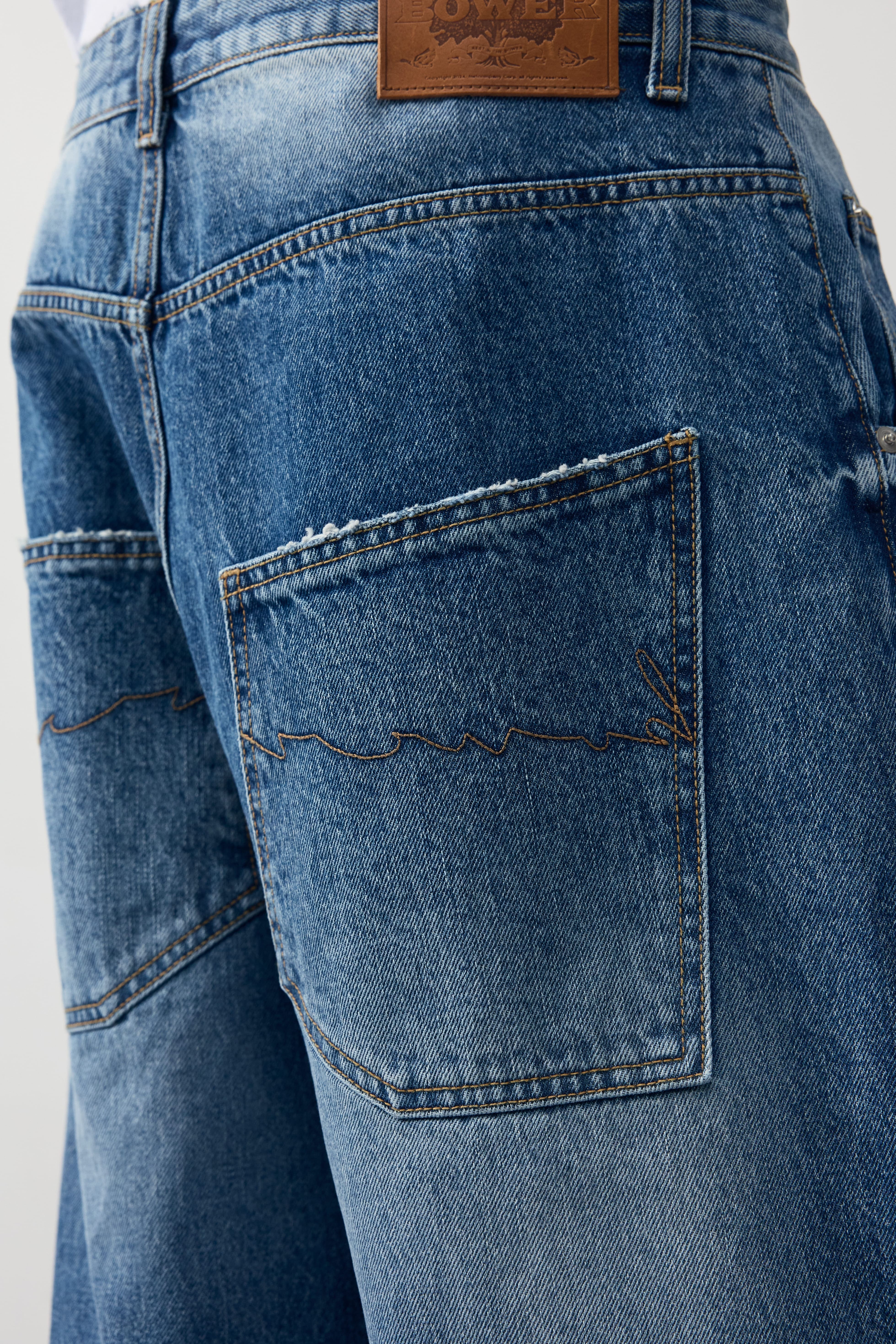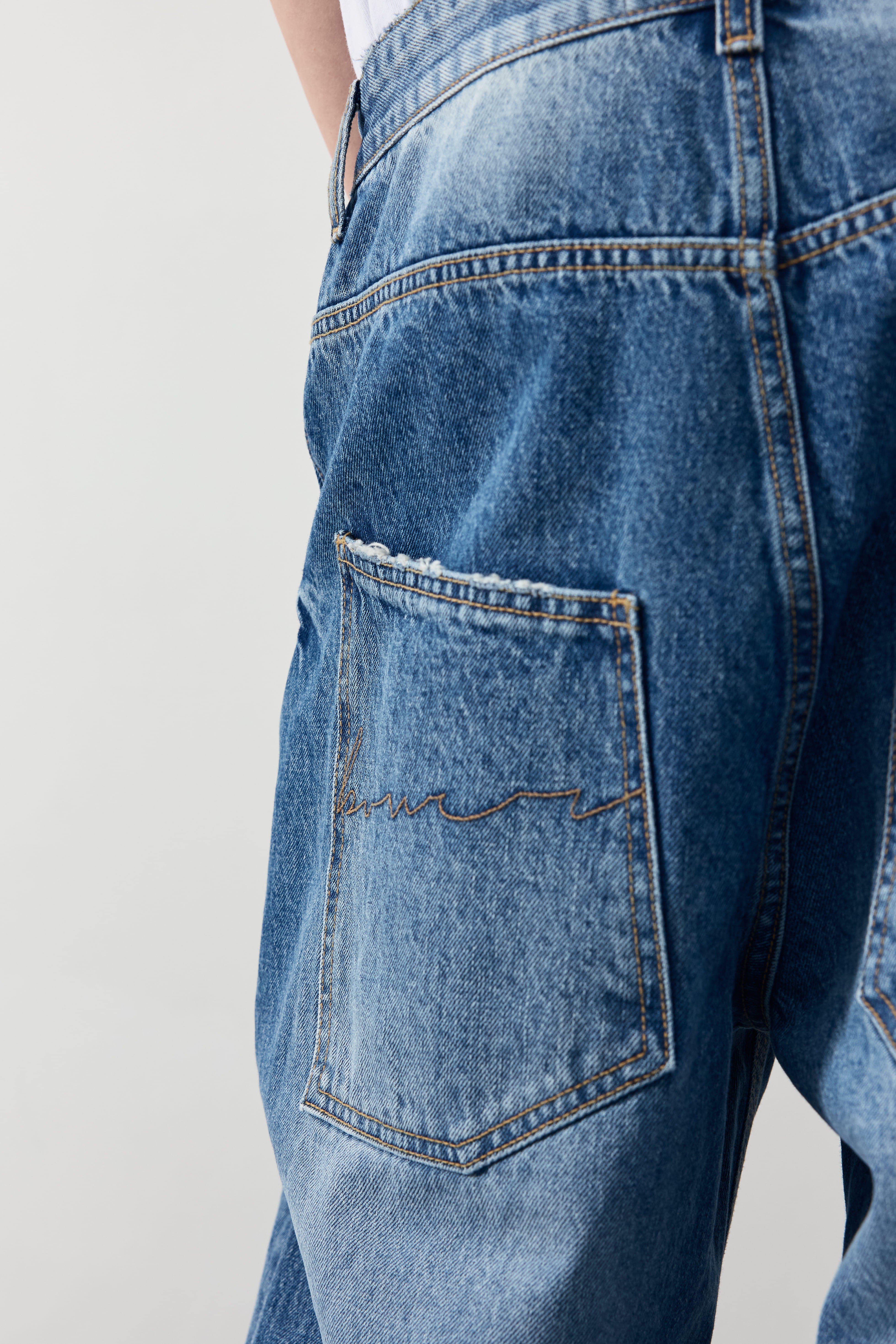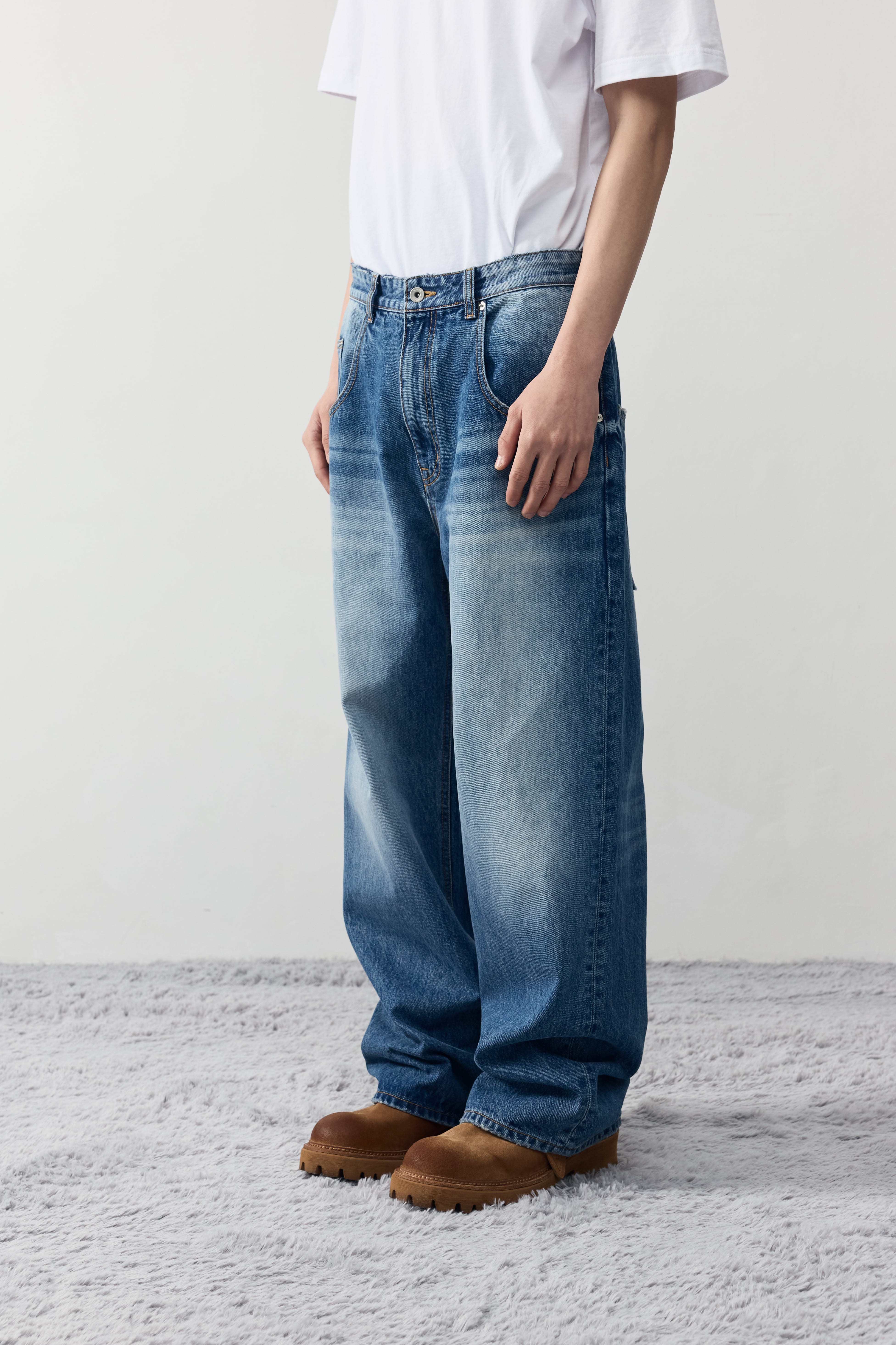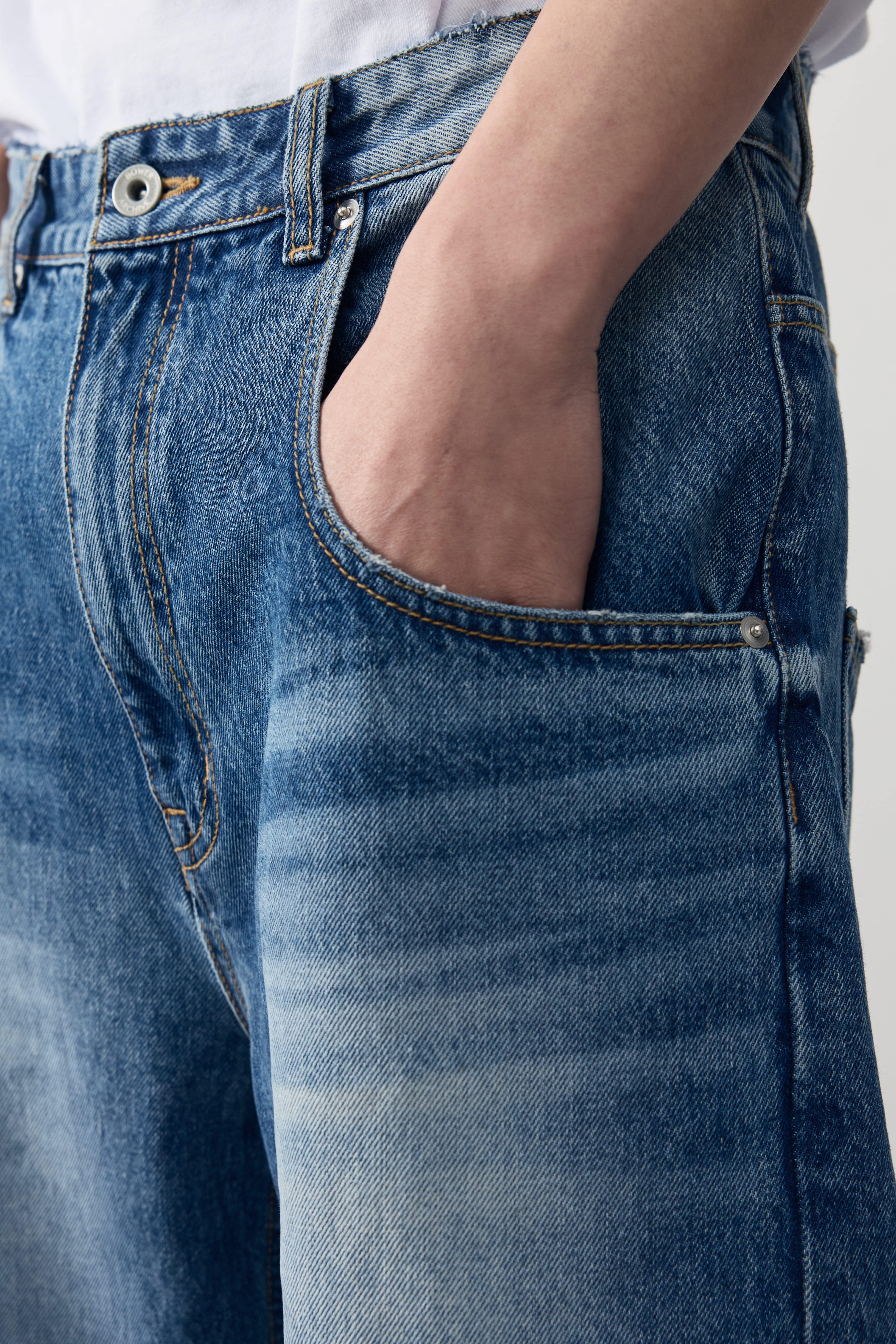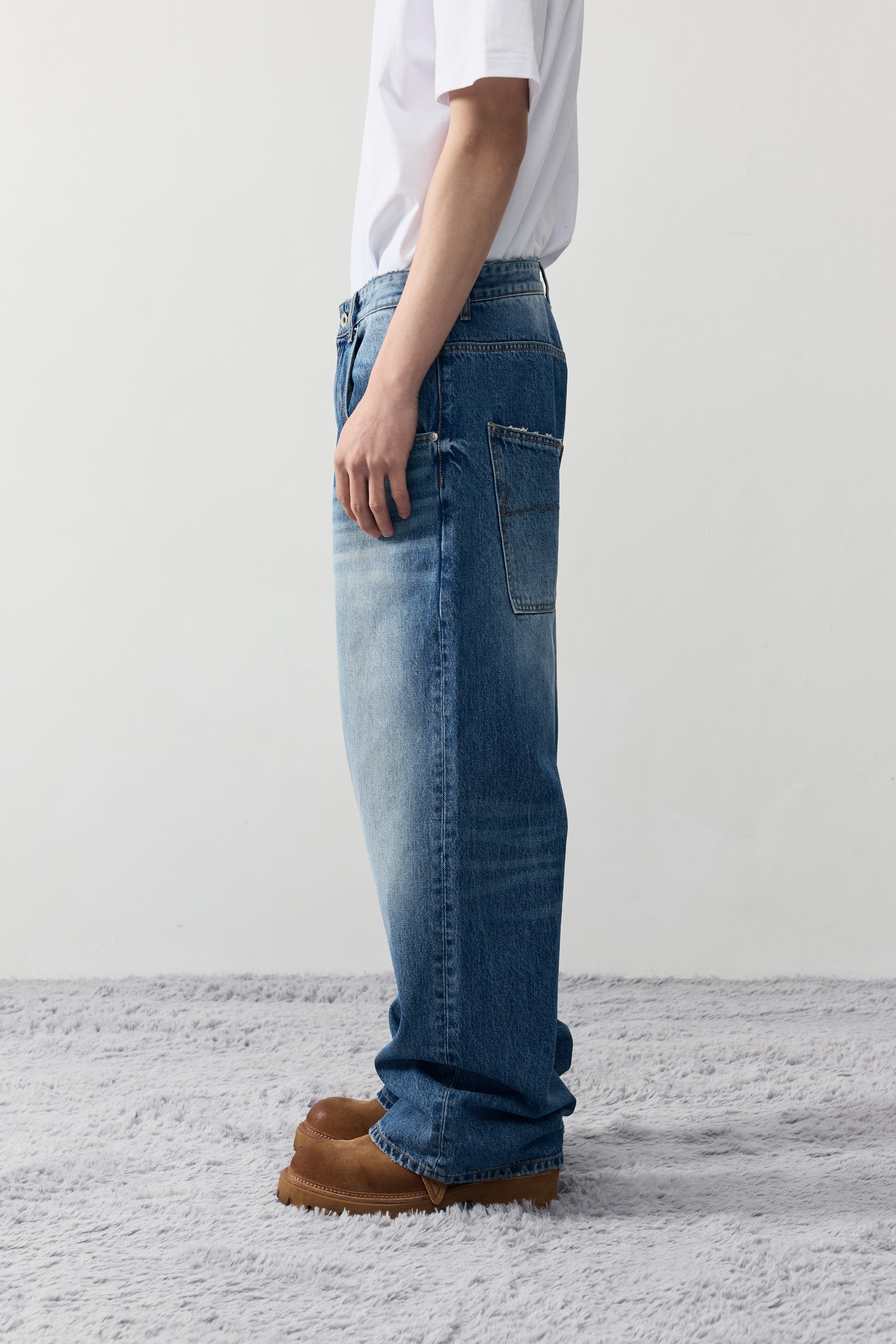 DAMAGED DOWN POCKET LOOSE DENIM medium blue