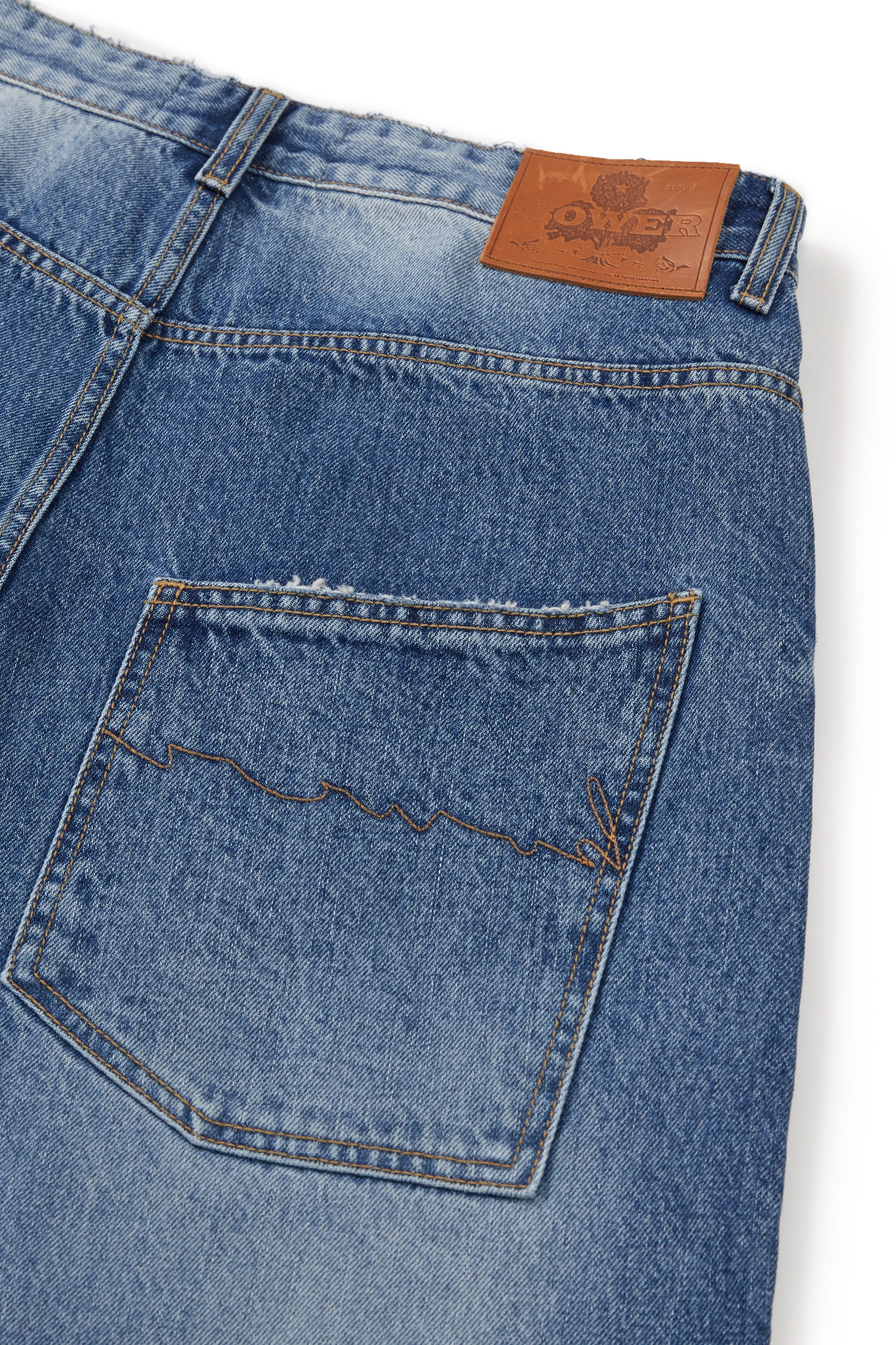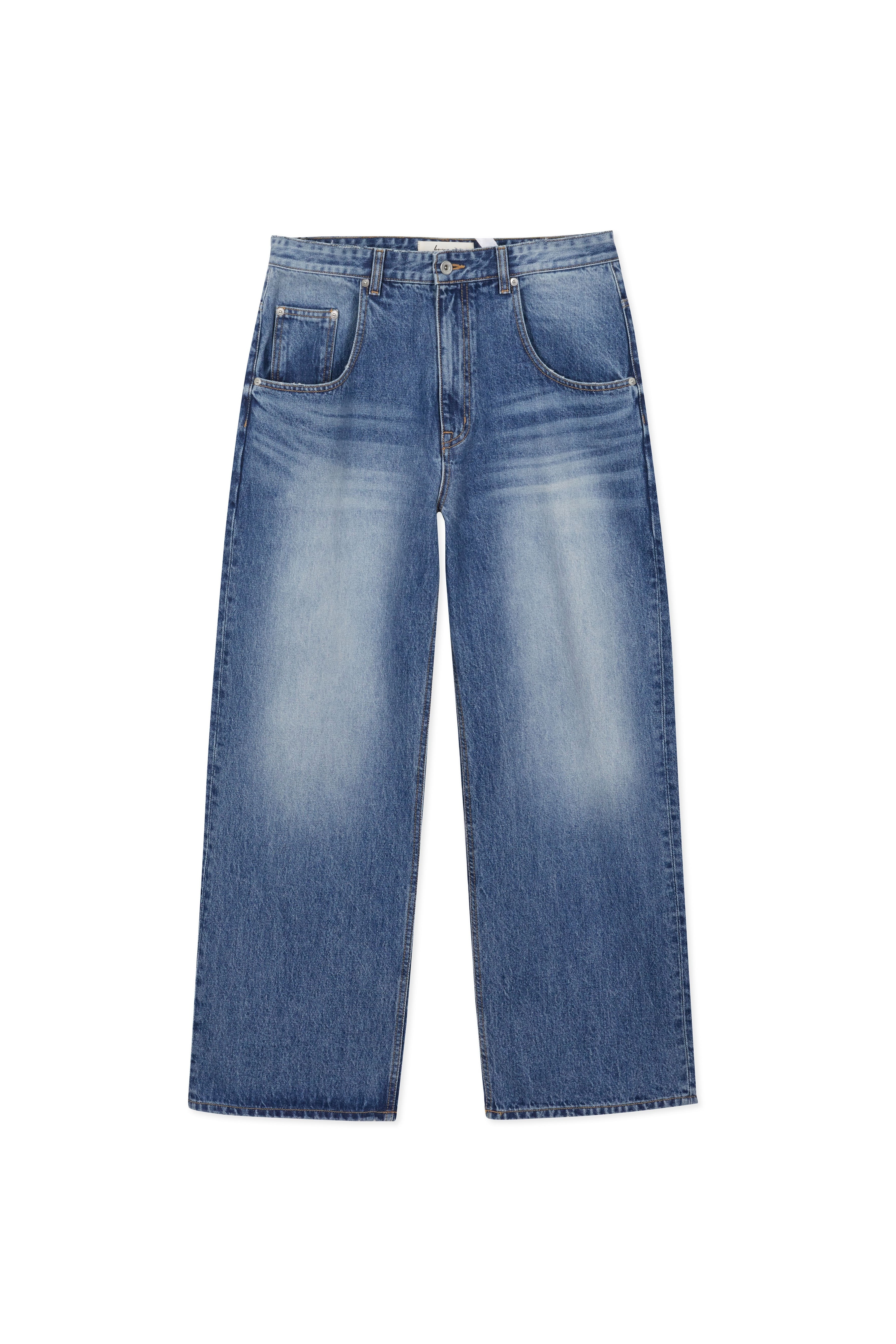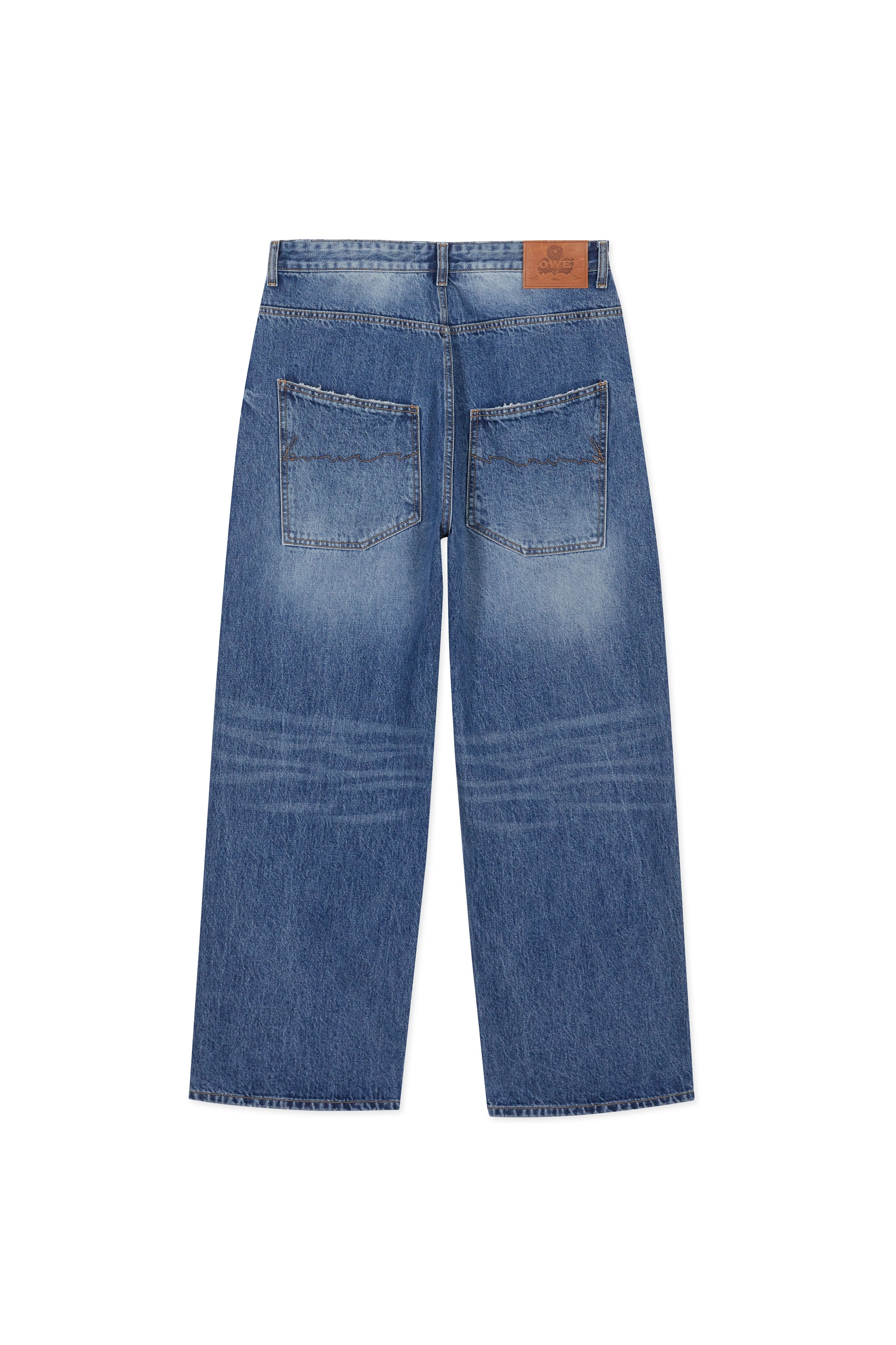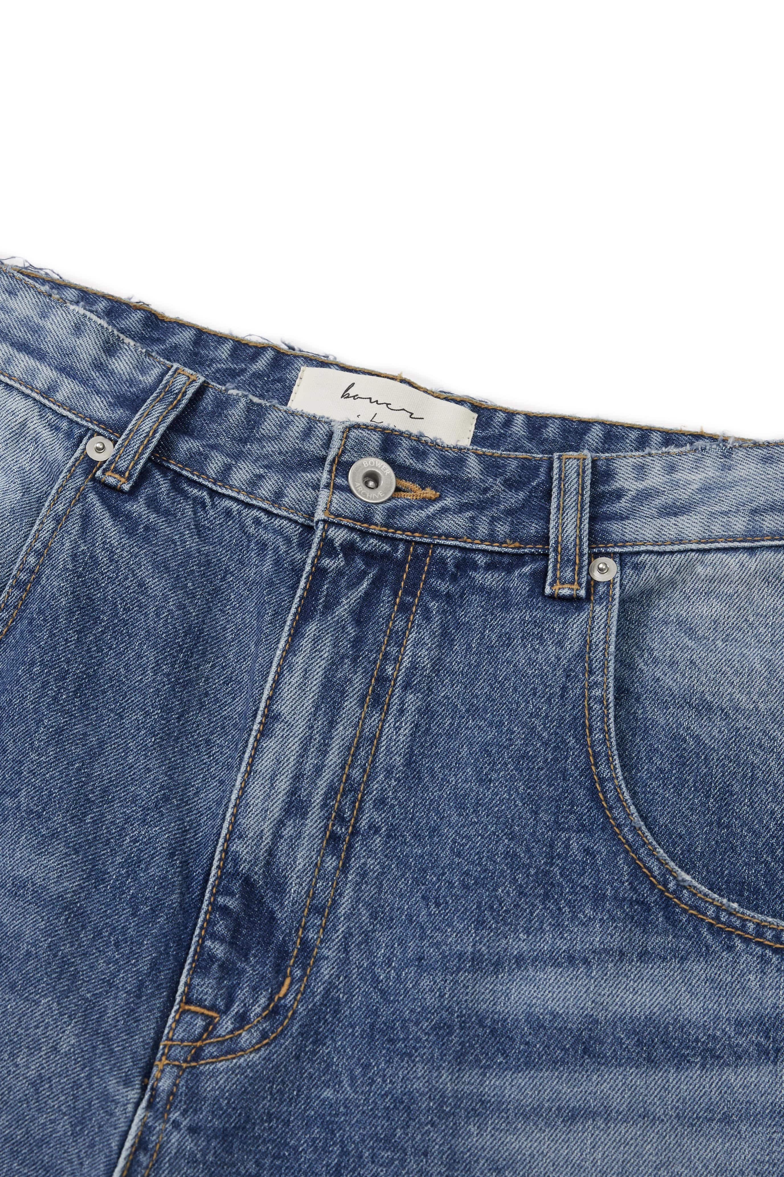 DAMAGED DOWN POCKET LOOSE DENIM medium blue