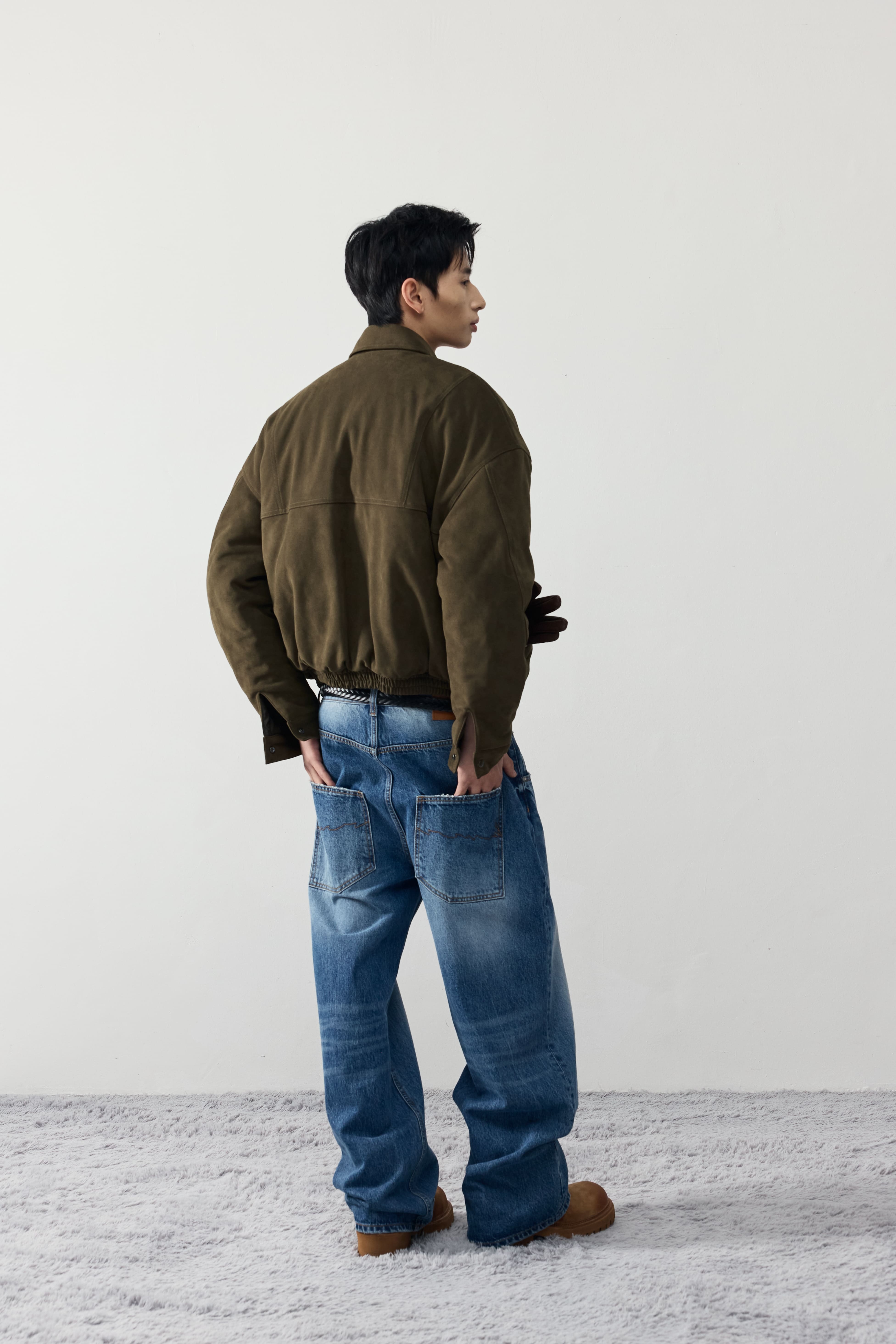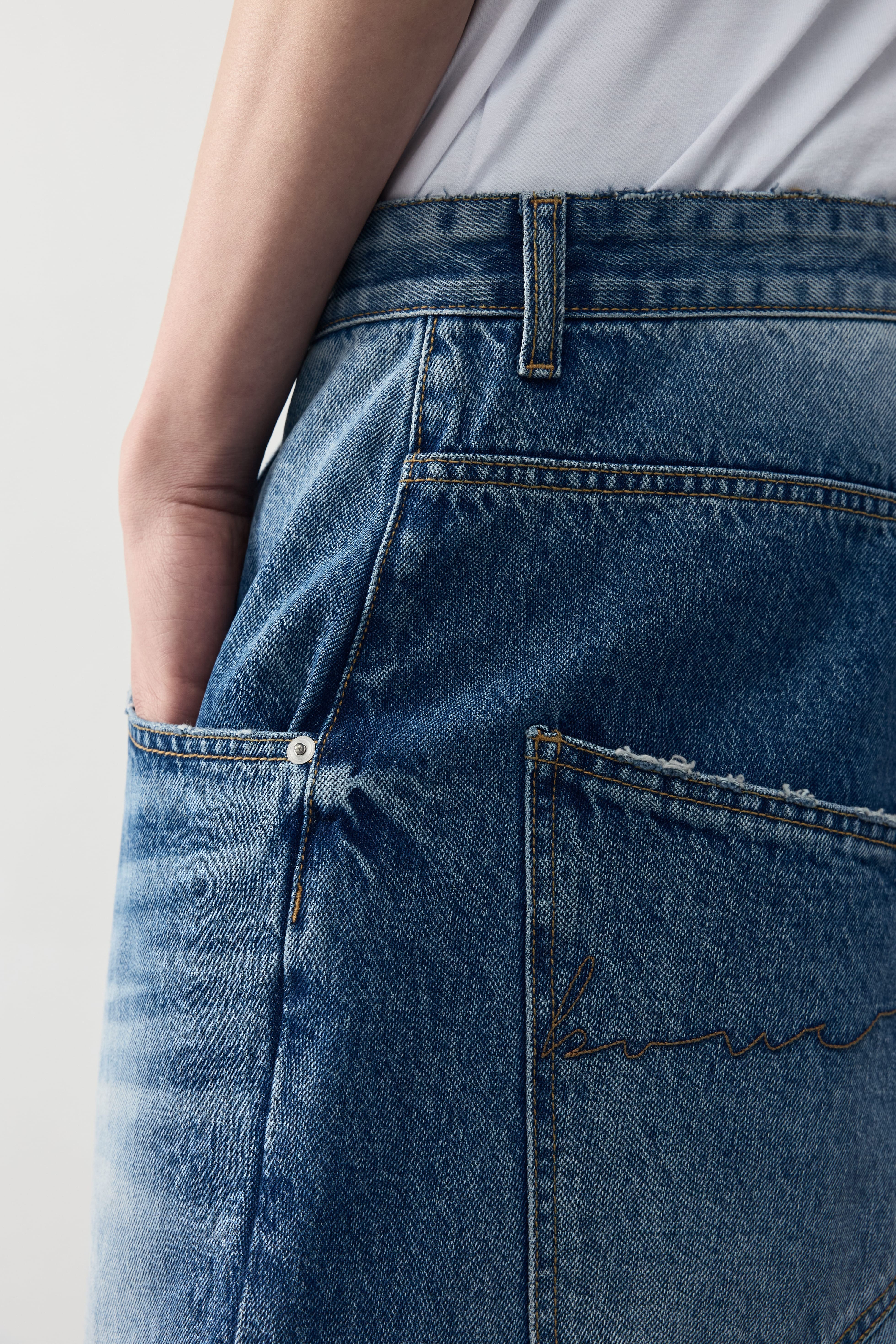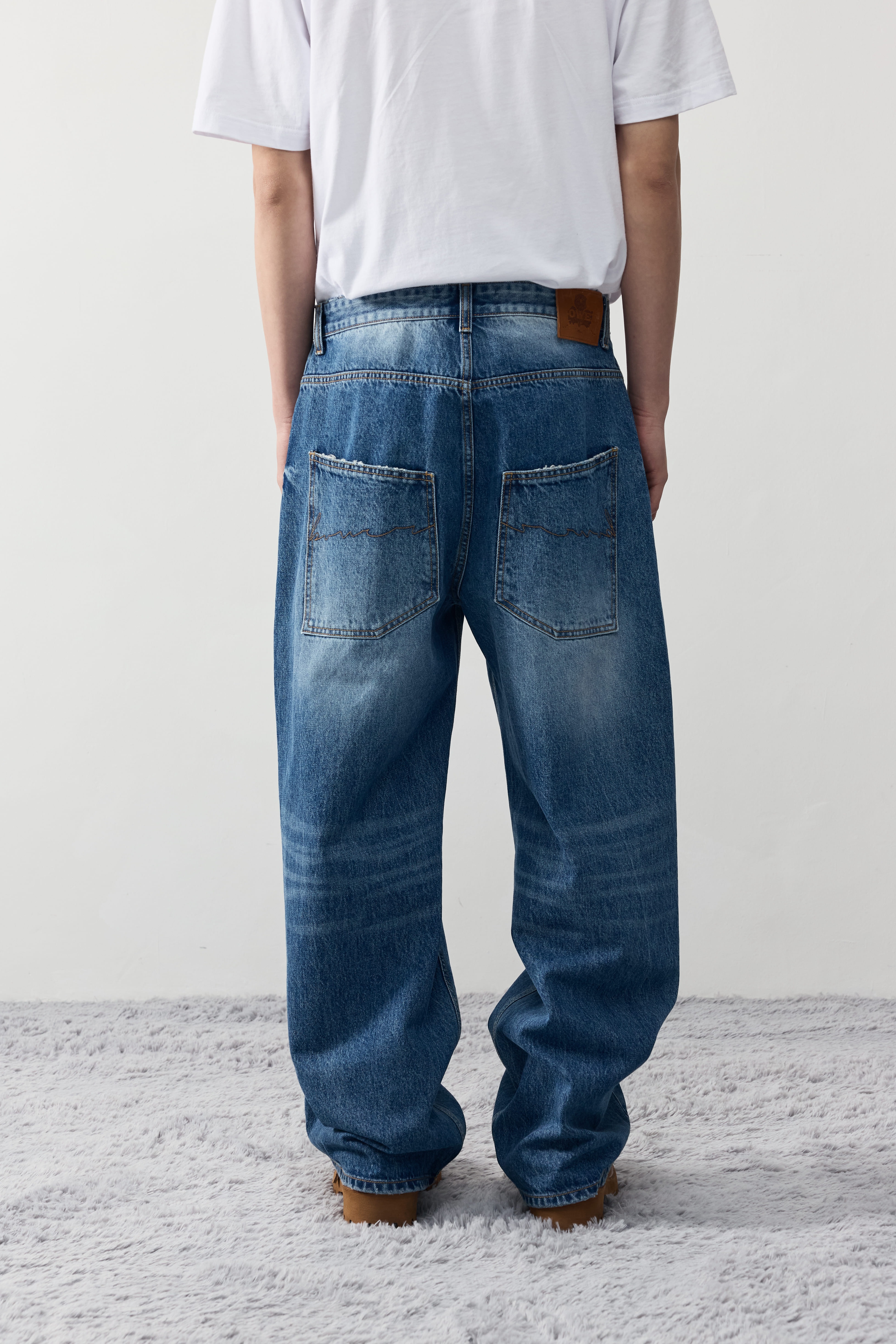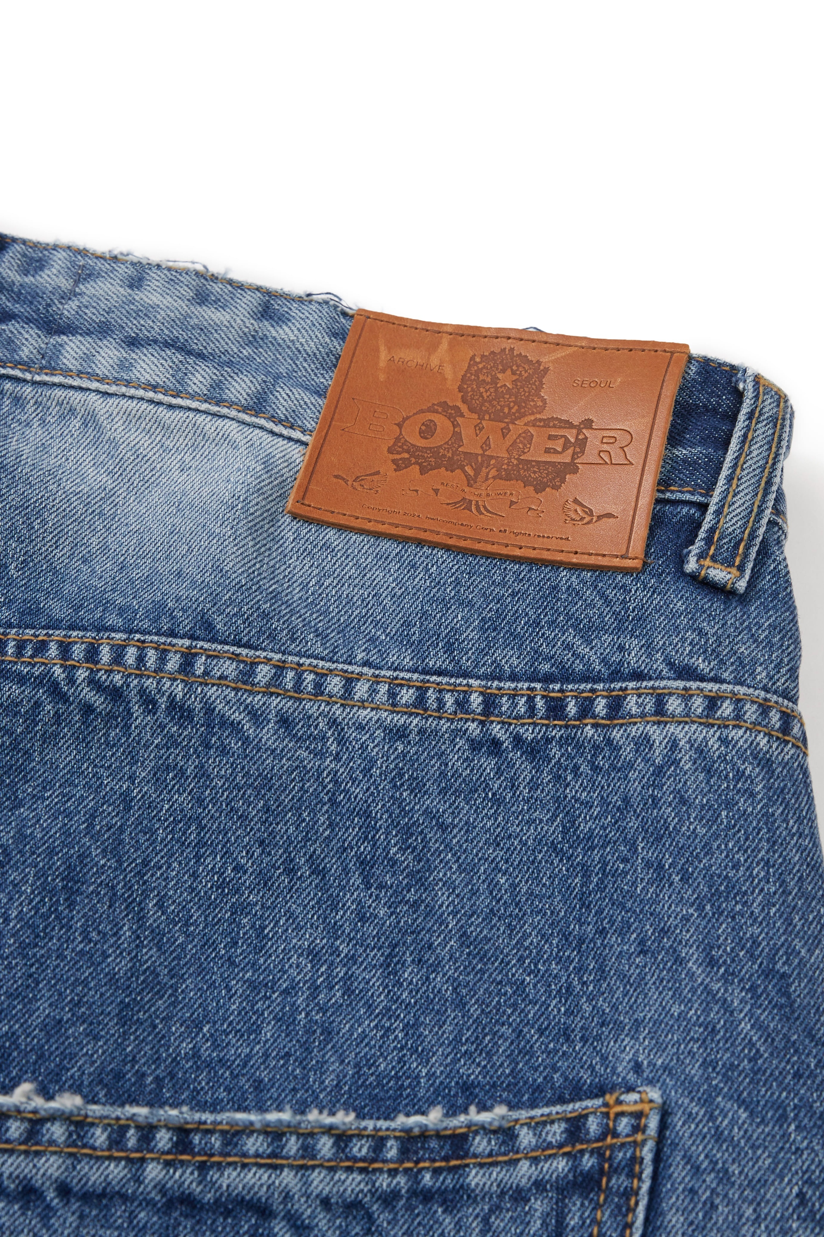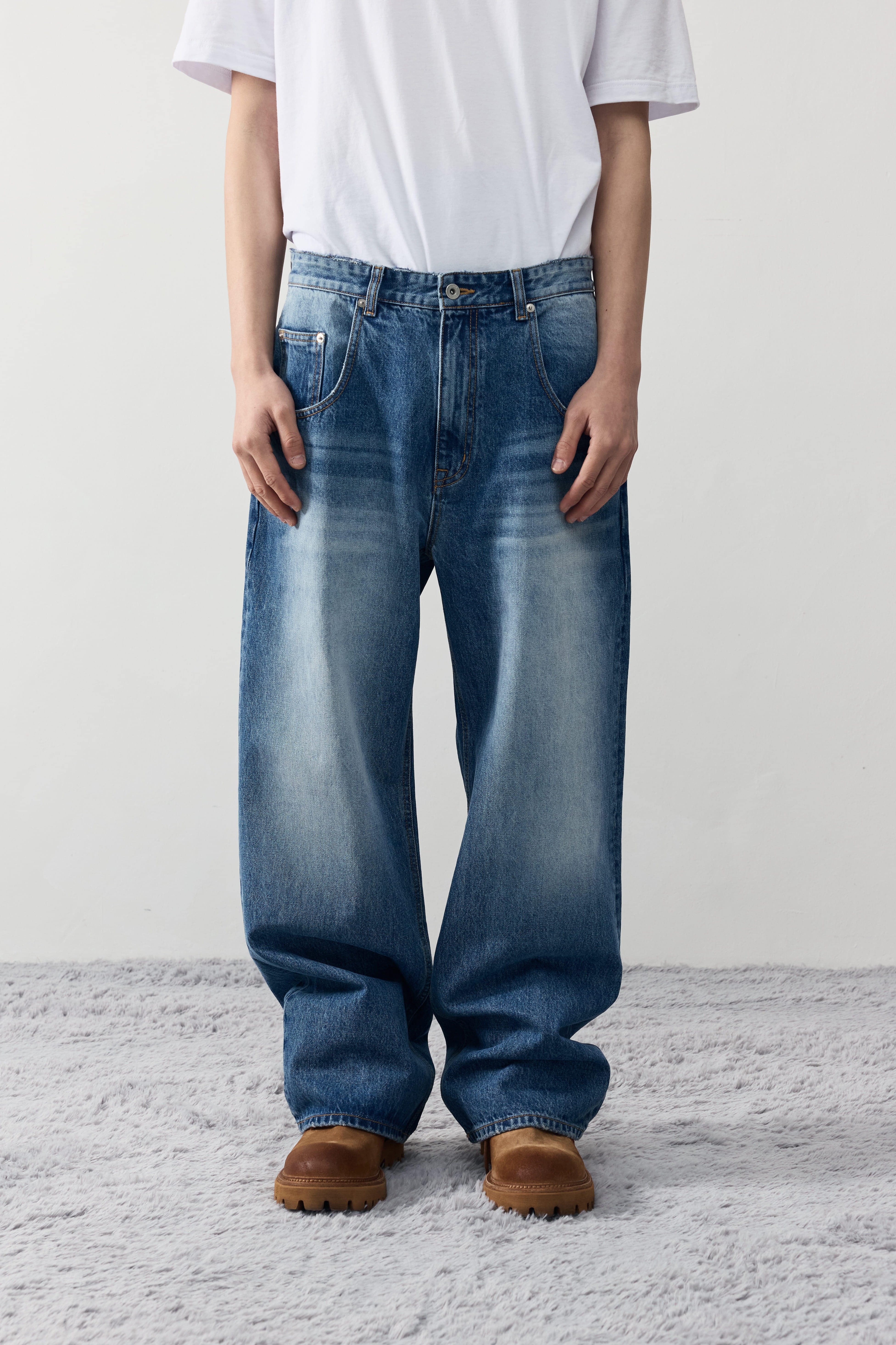 DAMAGED DOWN POCKET LOOSE DENIM medium blue