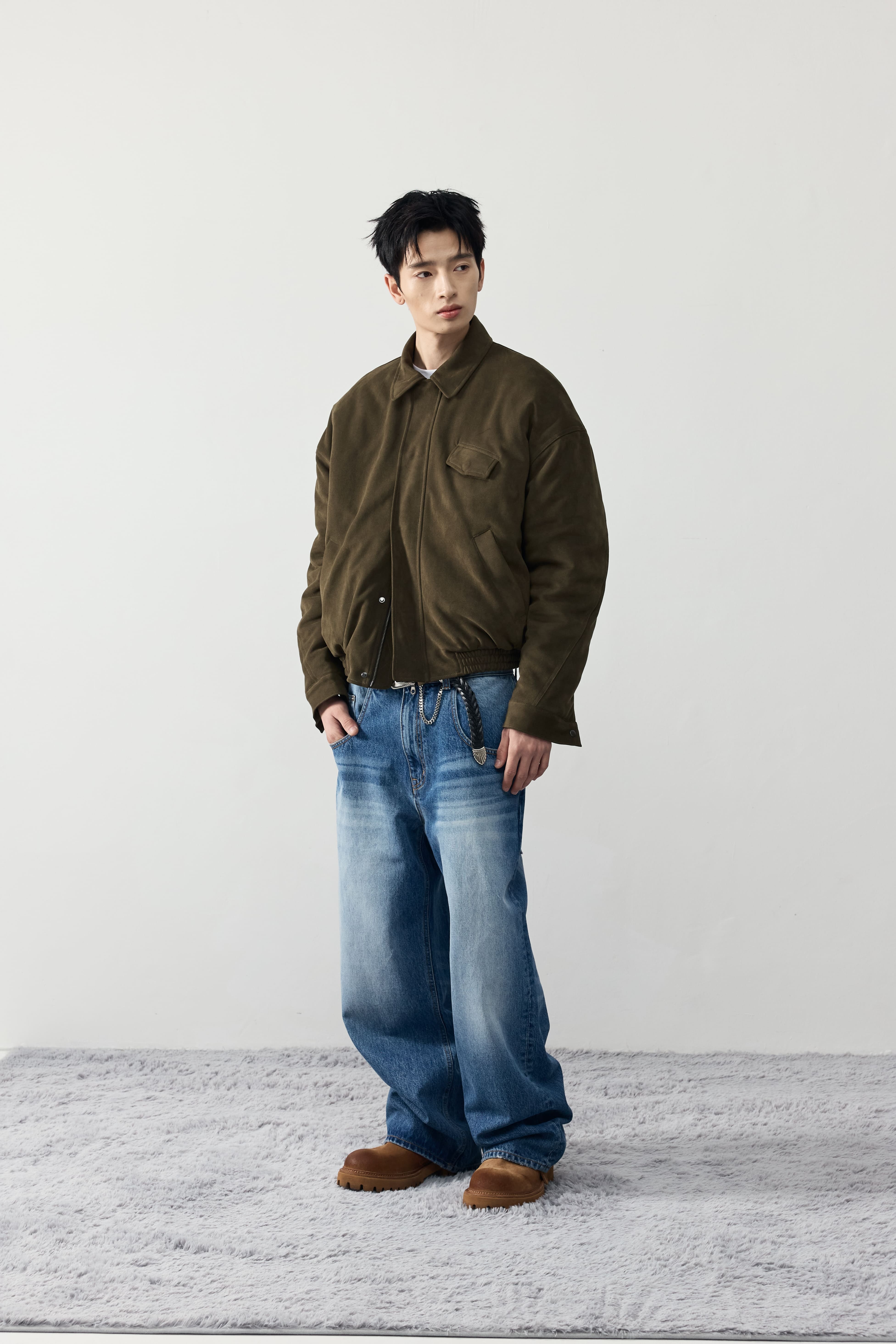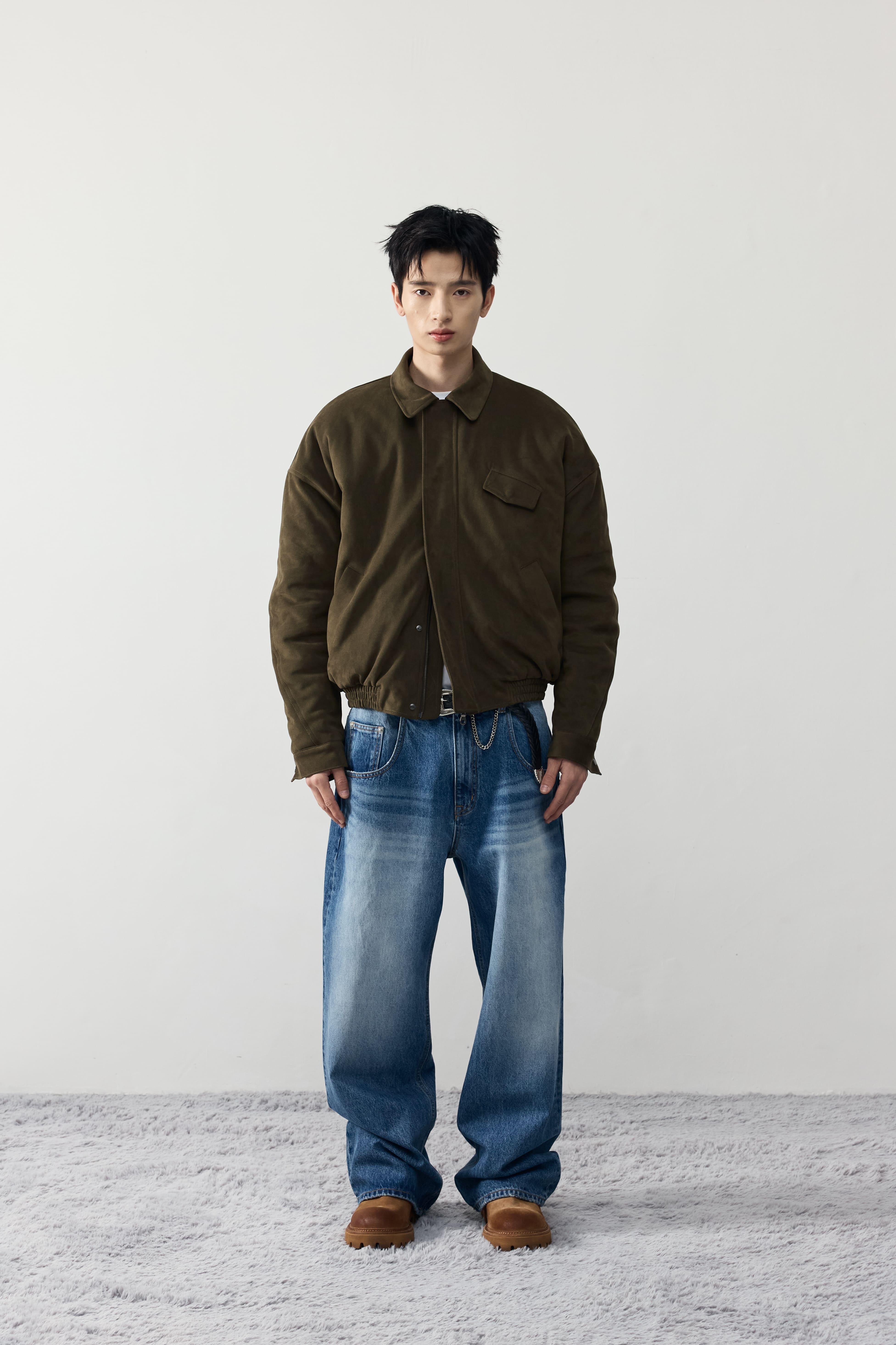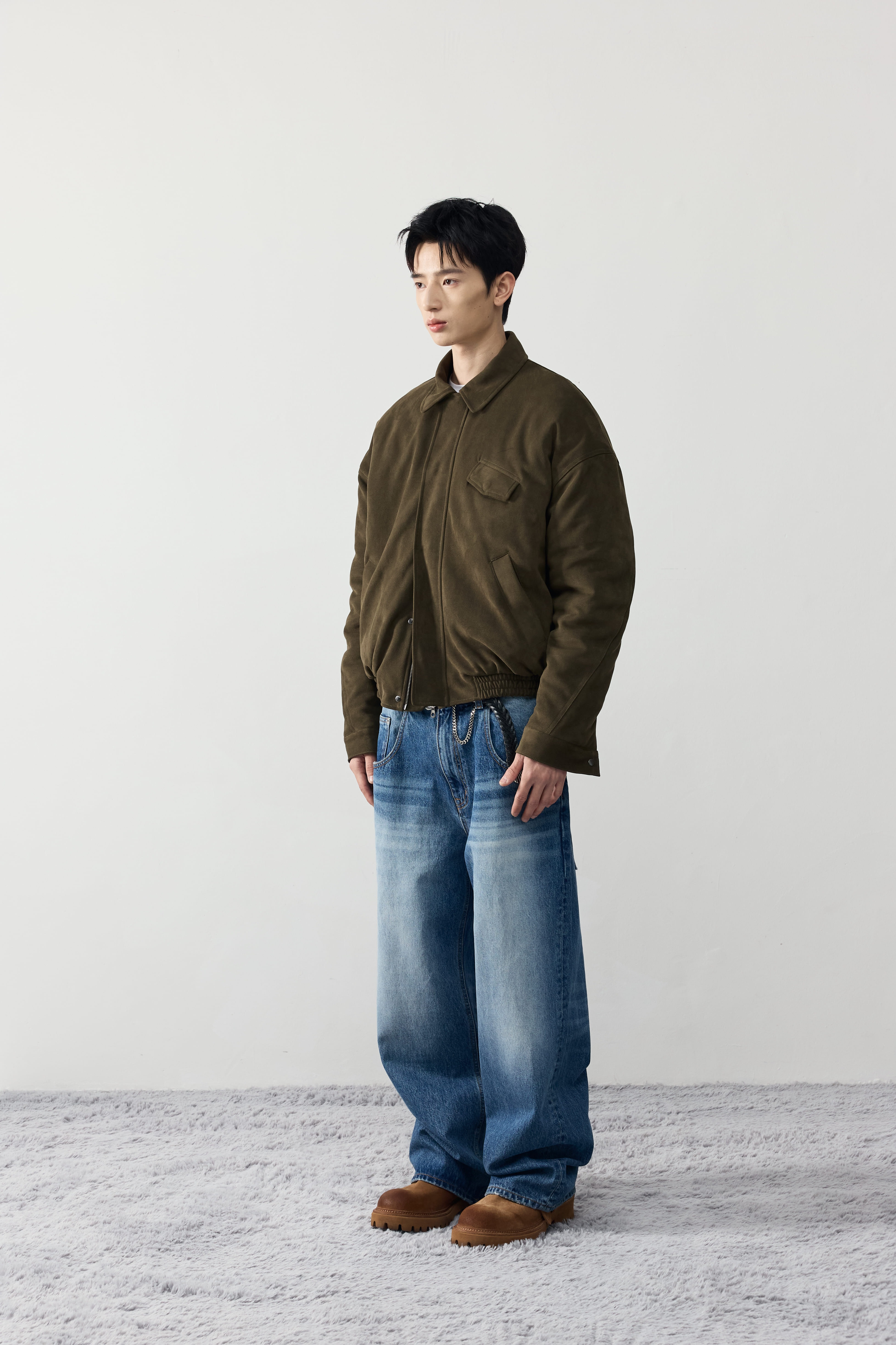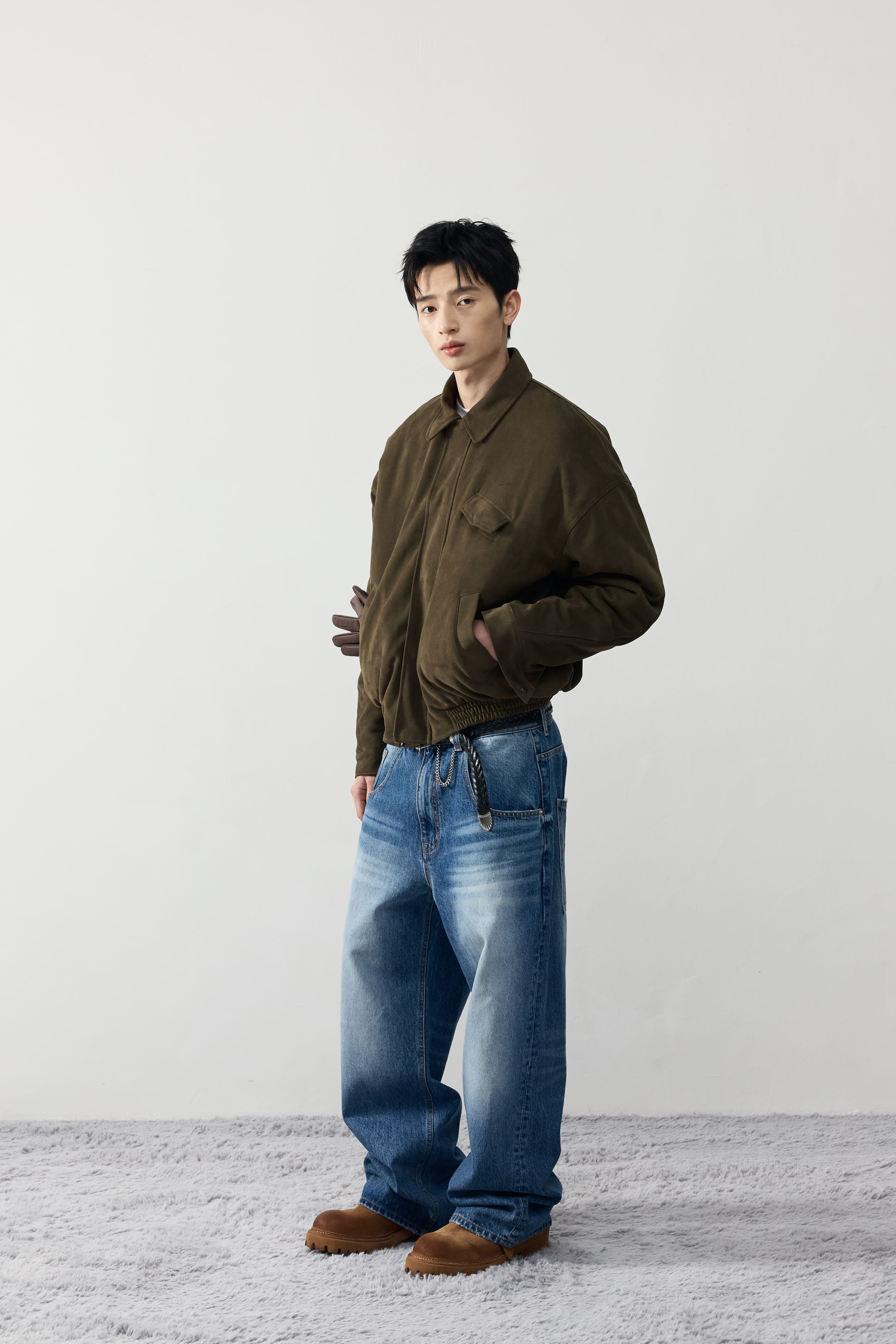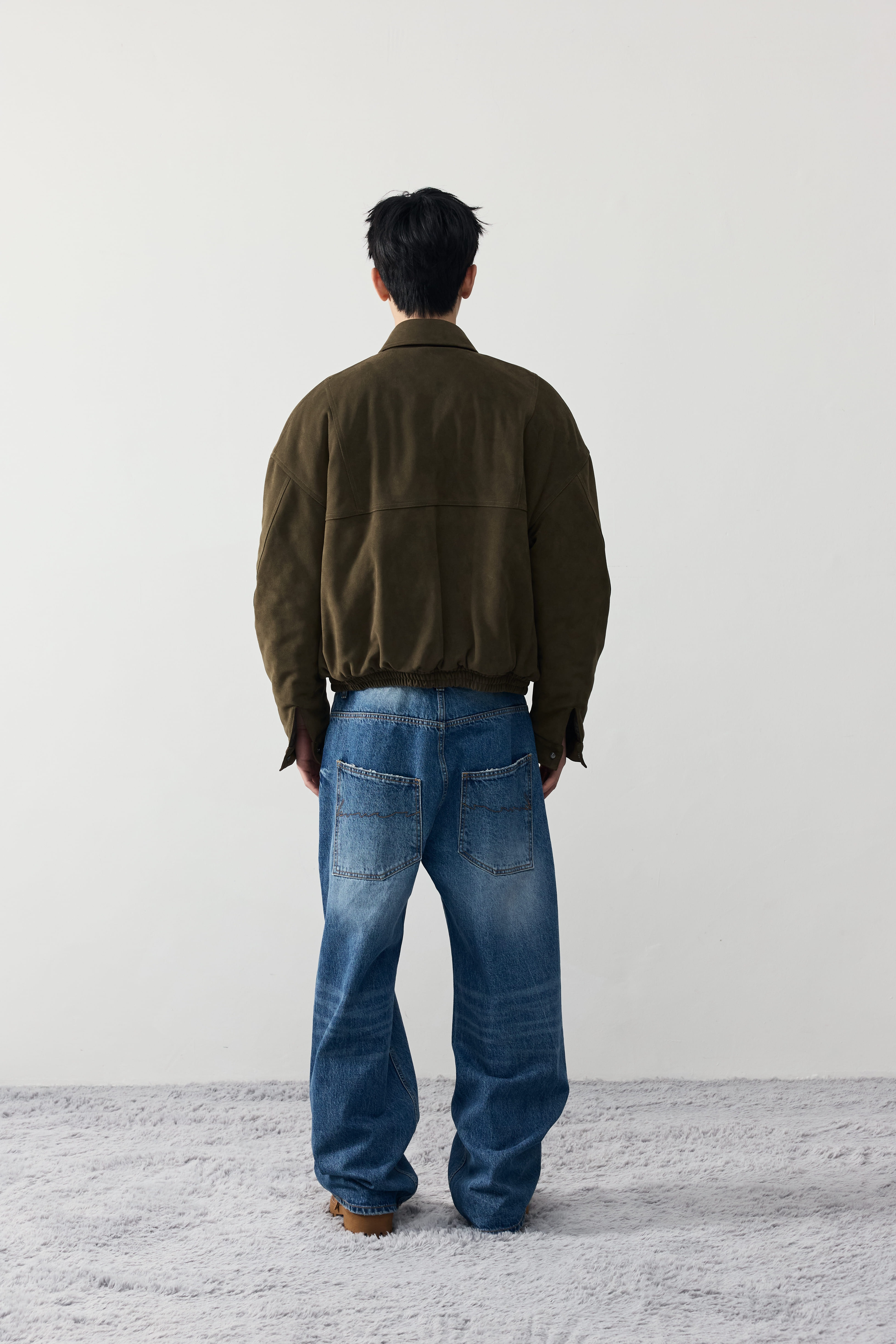 DAMAGED DOWN POCKET LOOSE DENIM medium blue