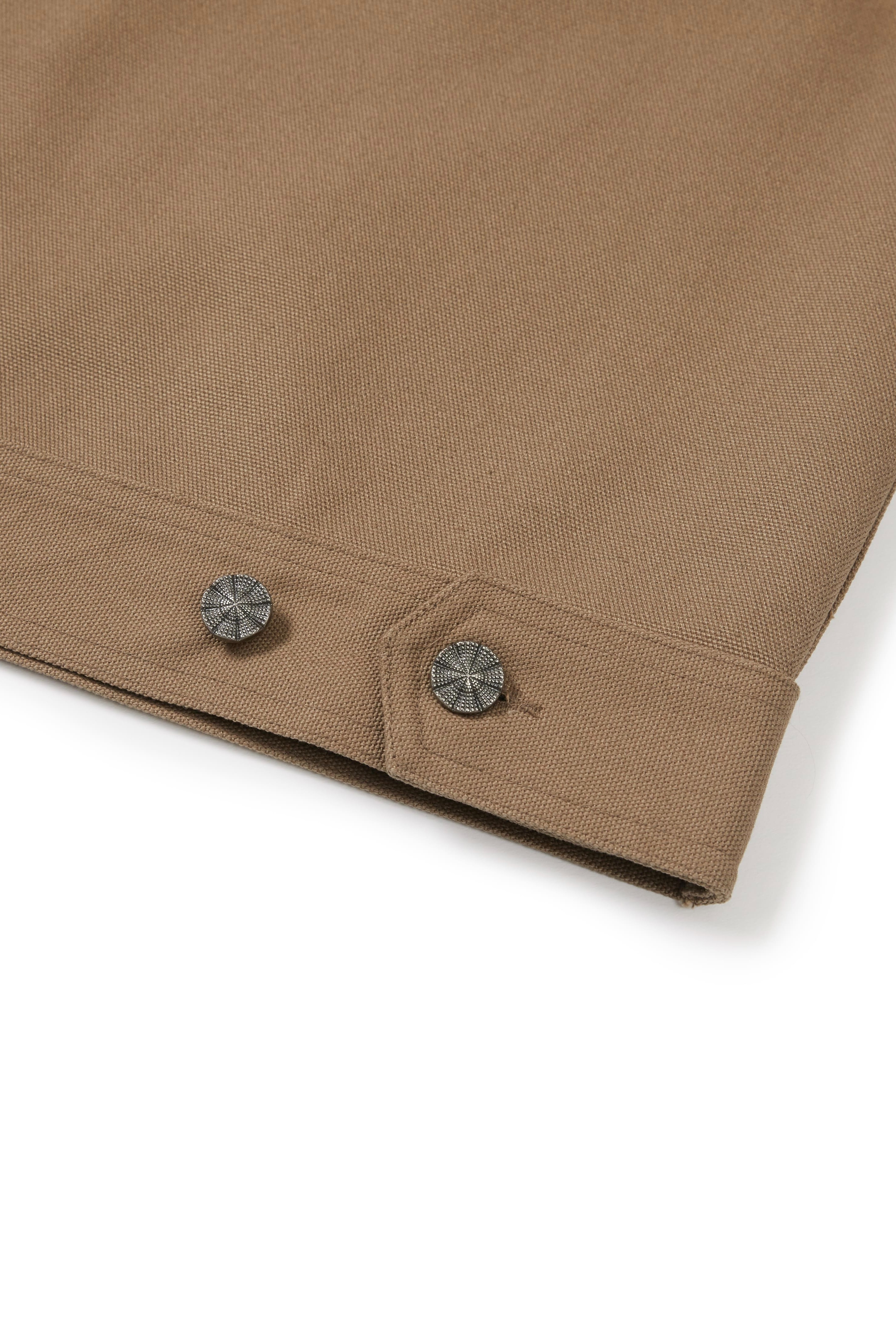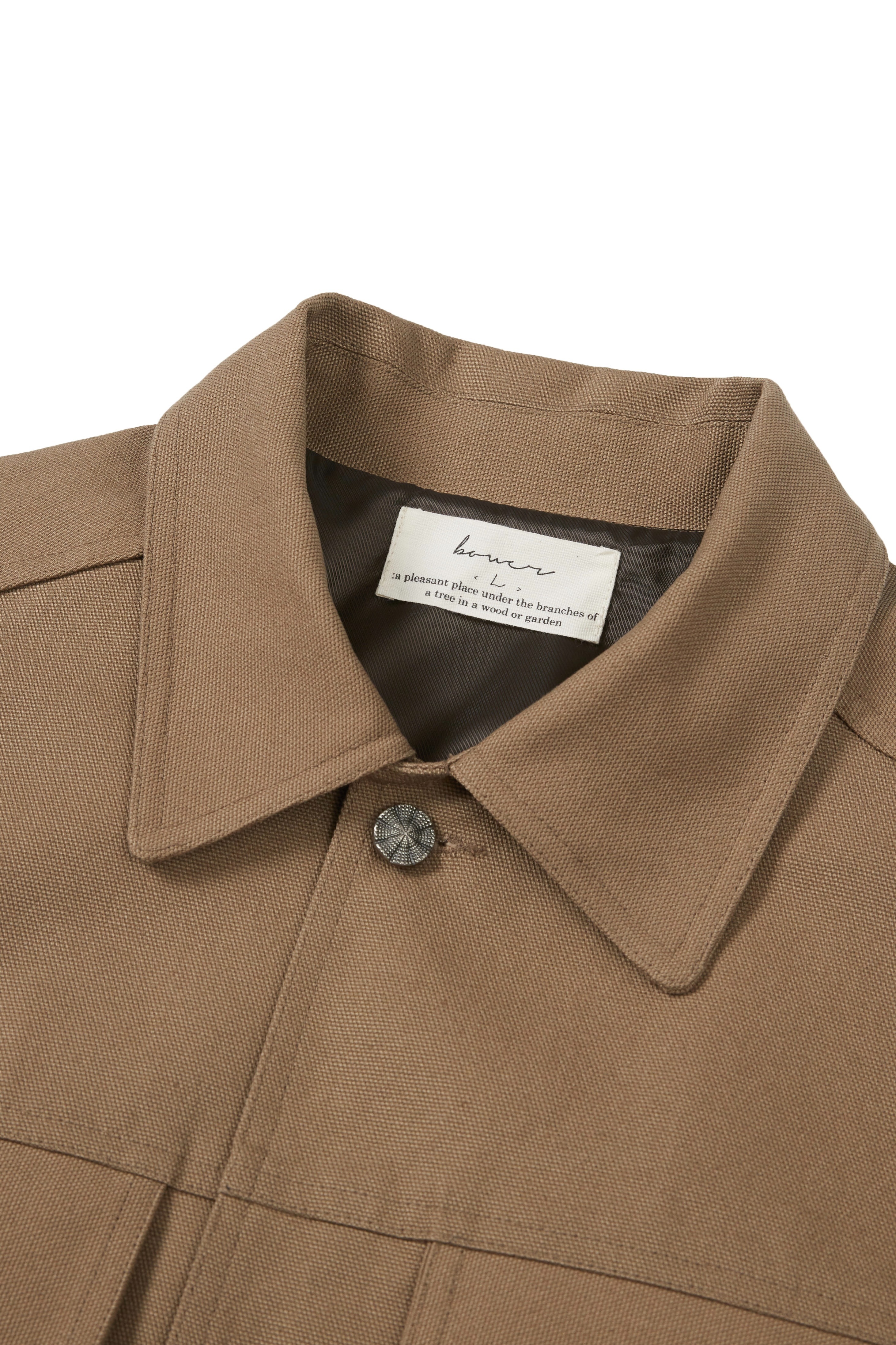 베이지 브라운 컬러의 오버핏 워크 자켓입니다.