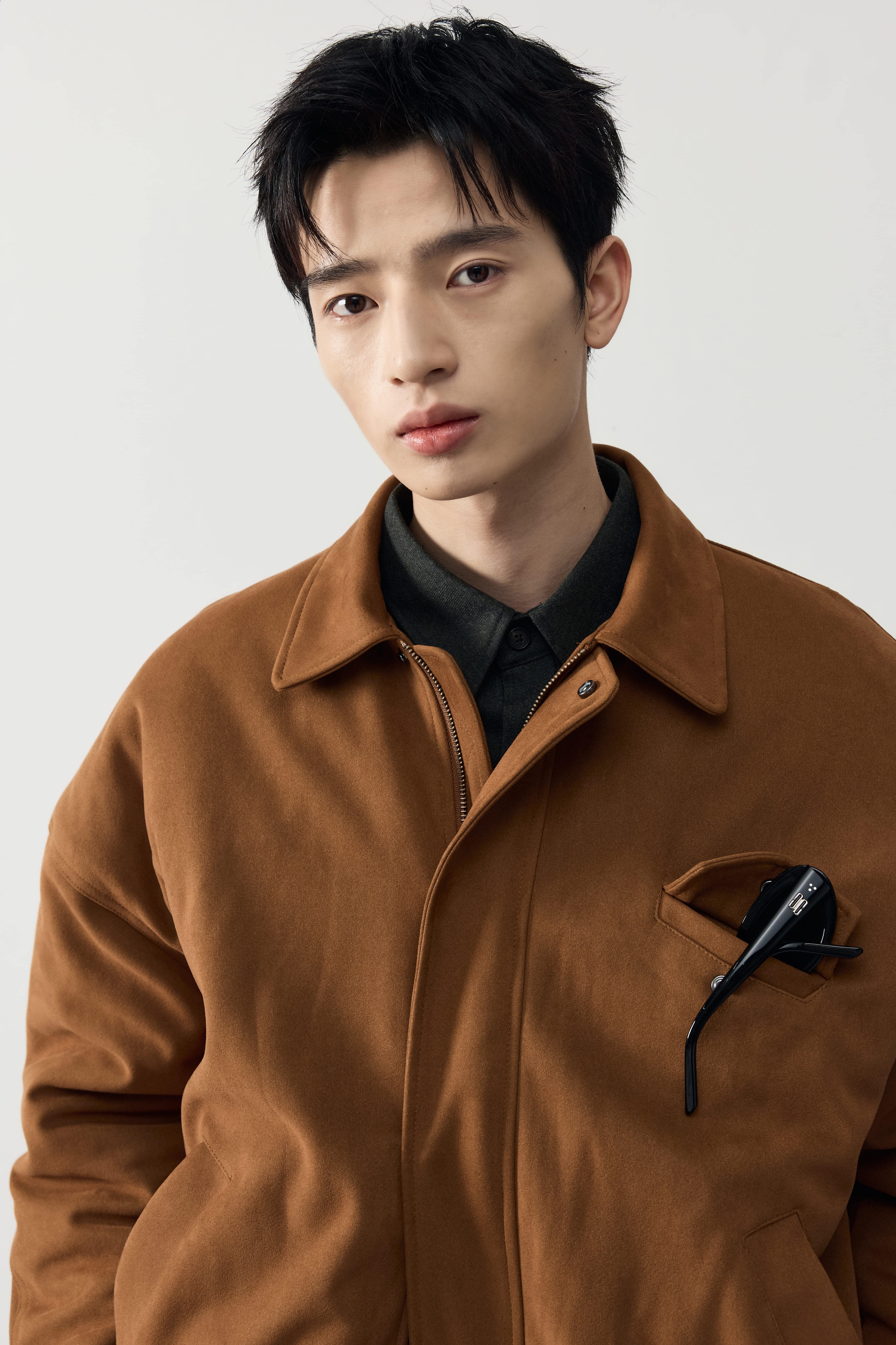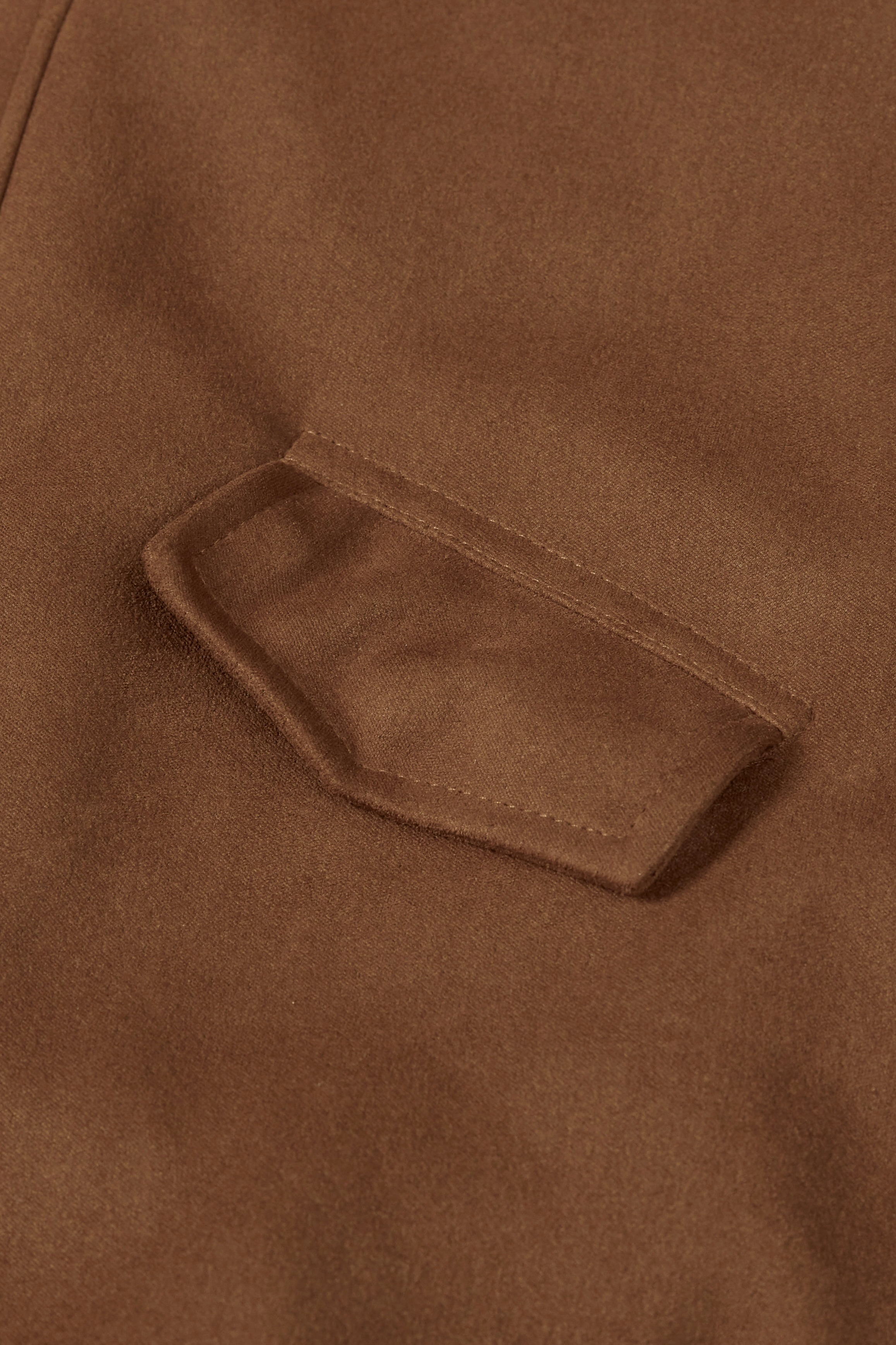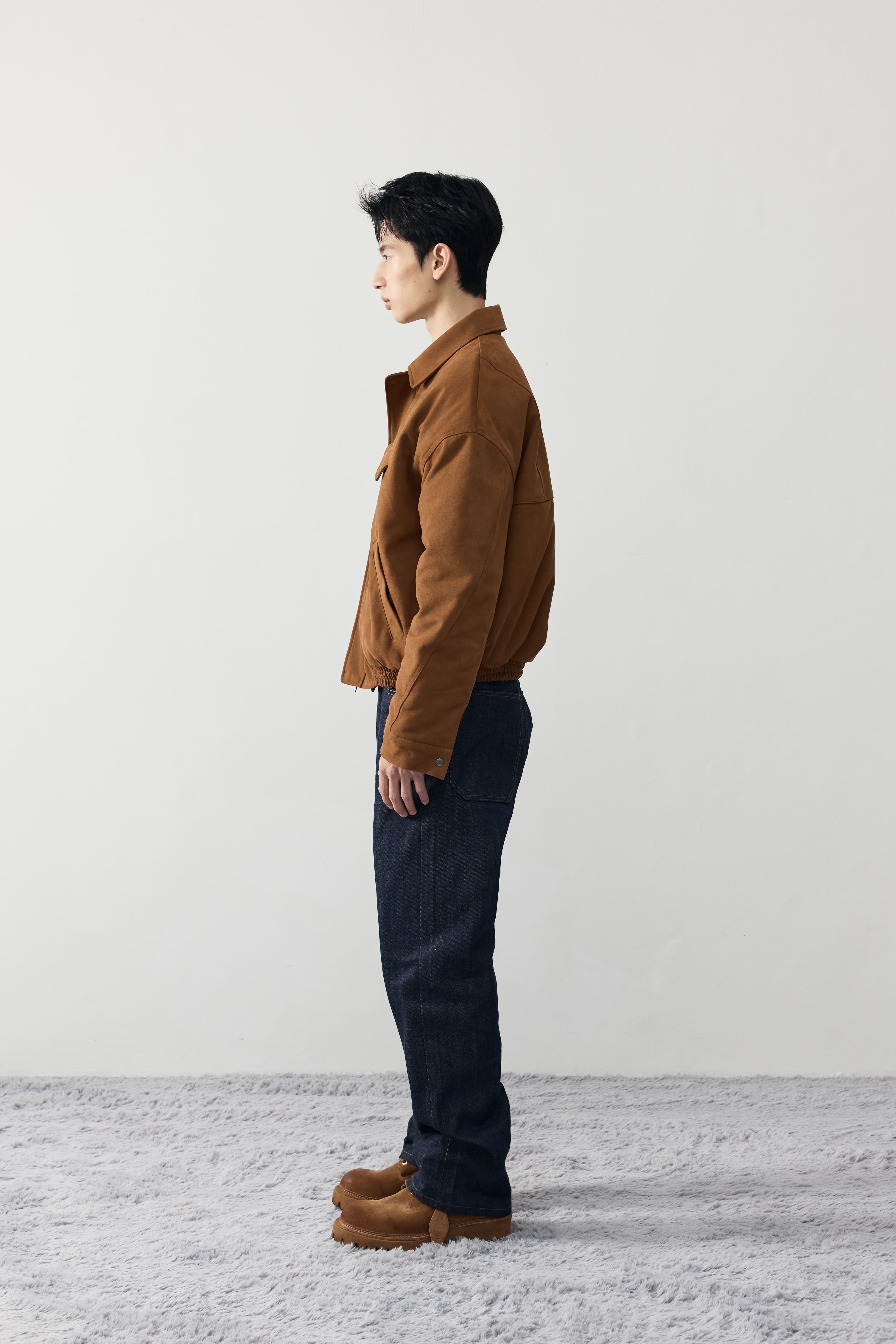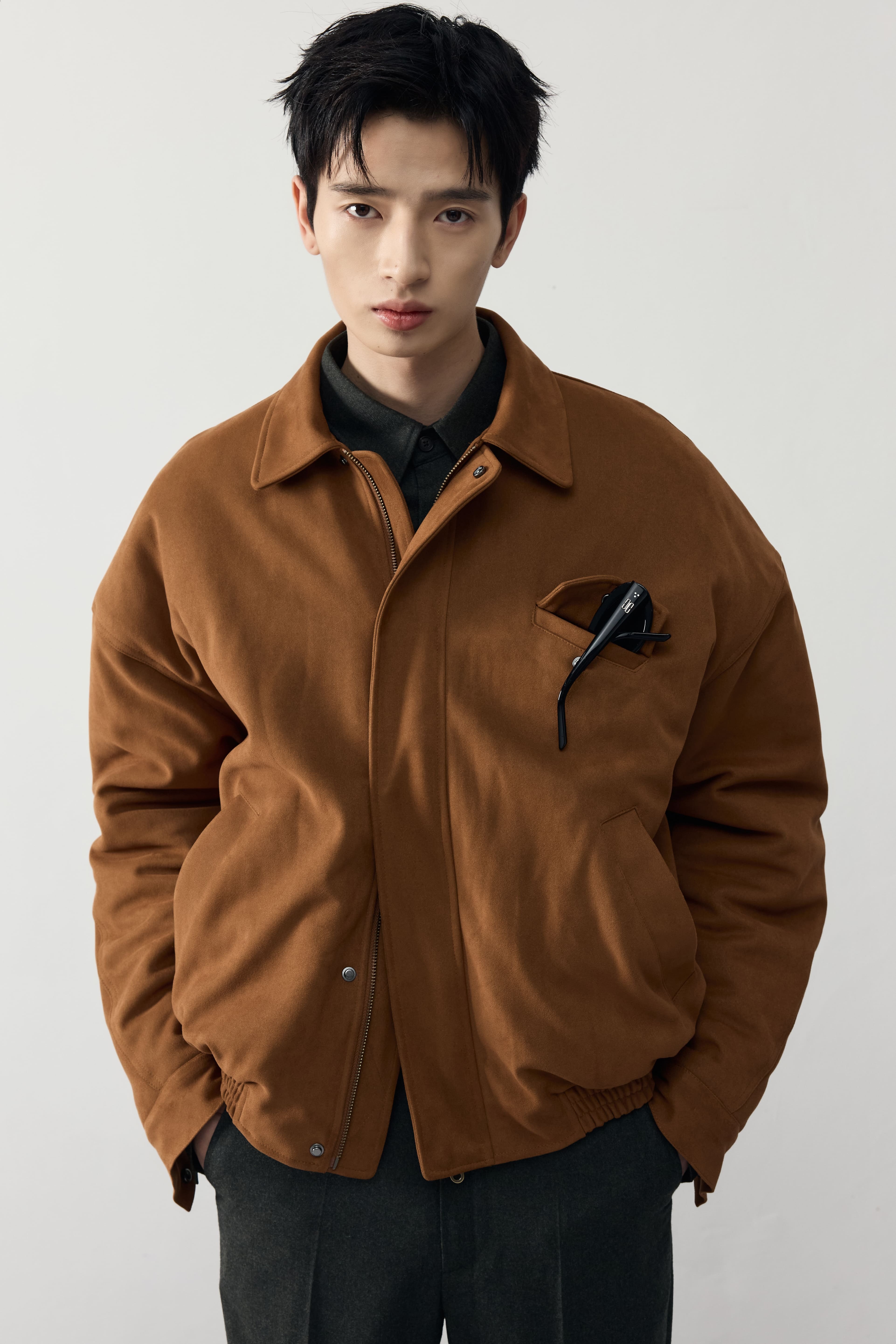 부드러운 비건 스웨이드 소재로 제작된 봄버 자켓입니다