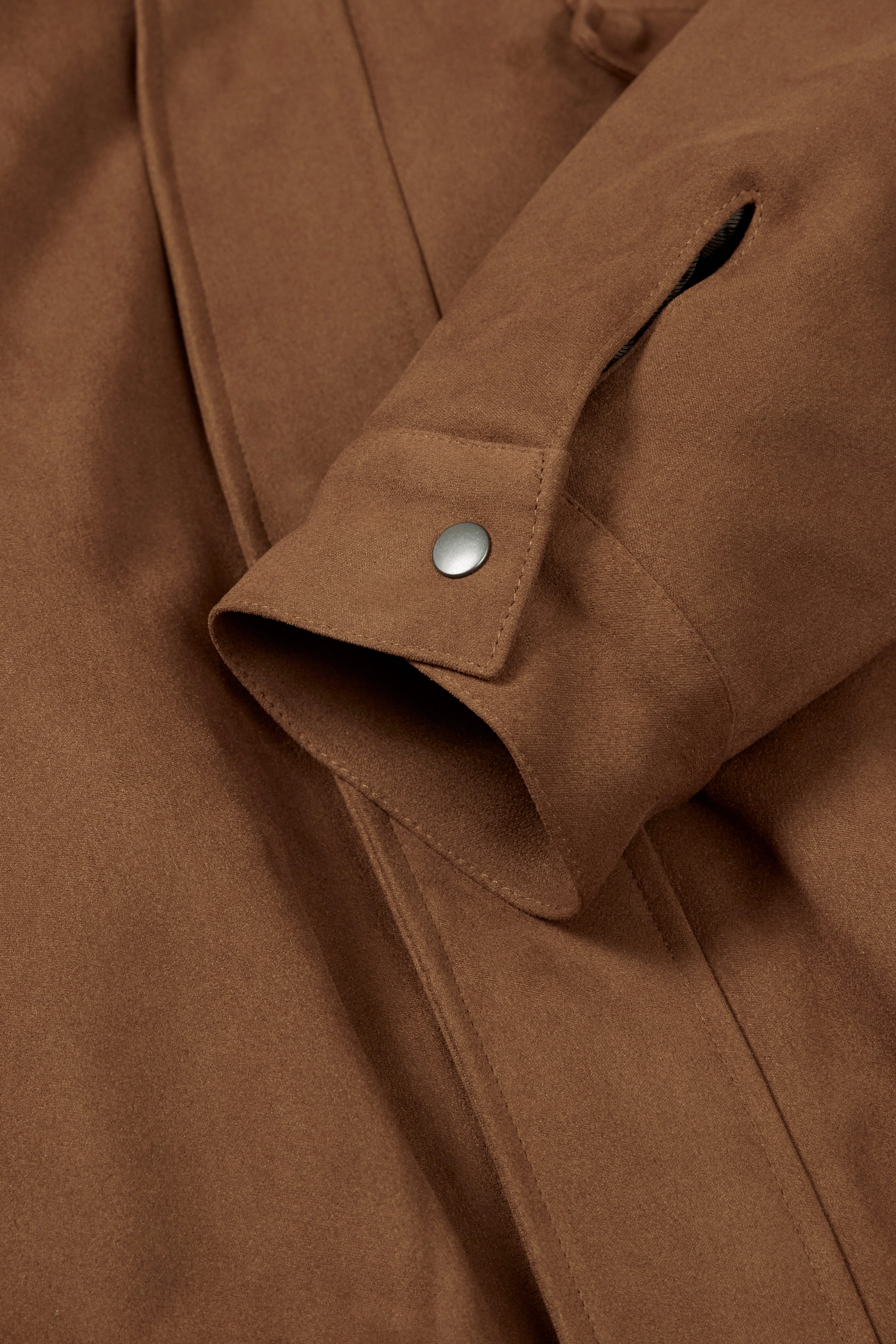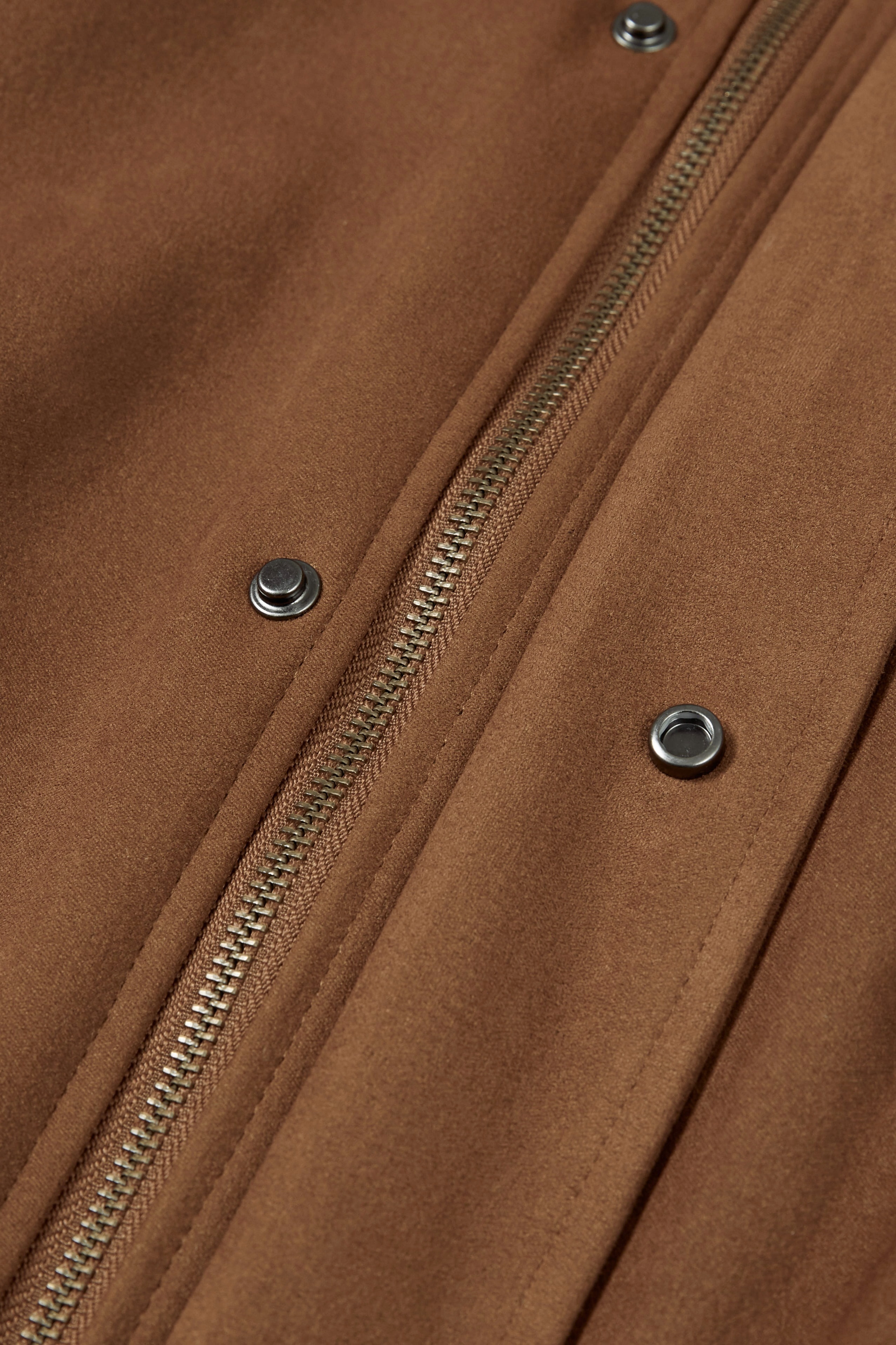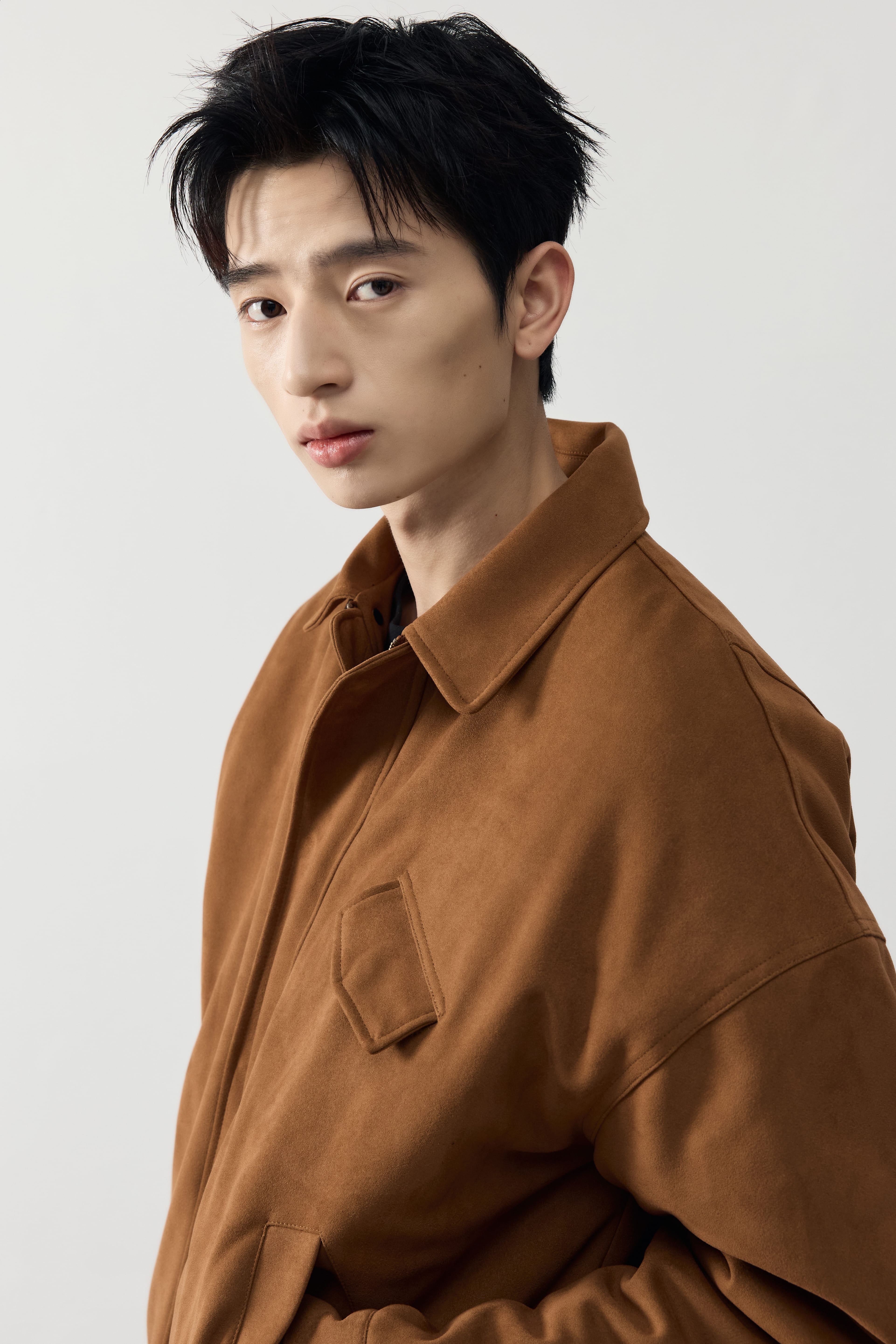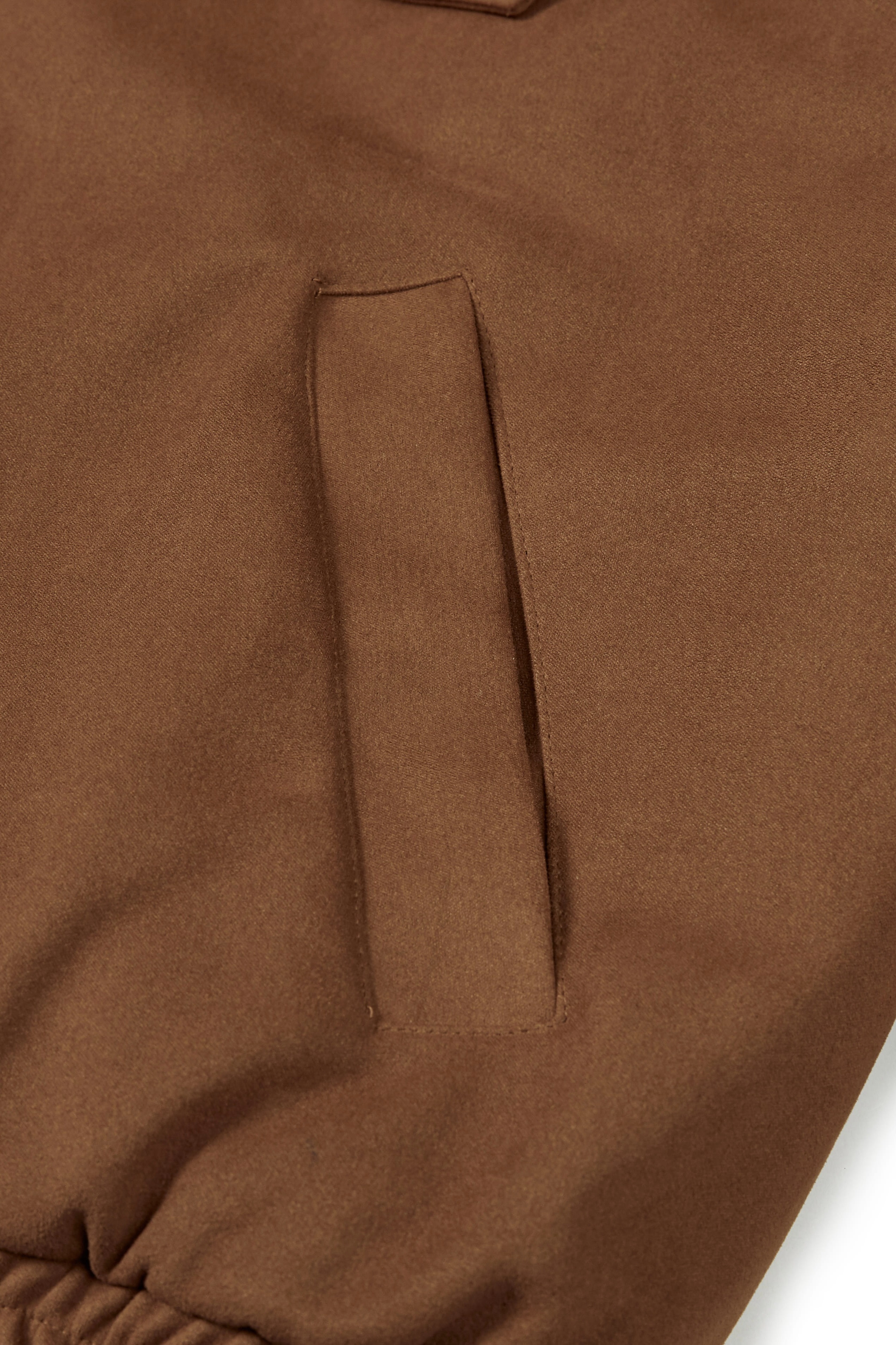 부드러운 비건 스웨이드 소재로 제작된 봄버 자켓입니다