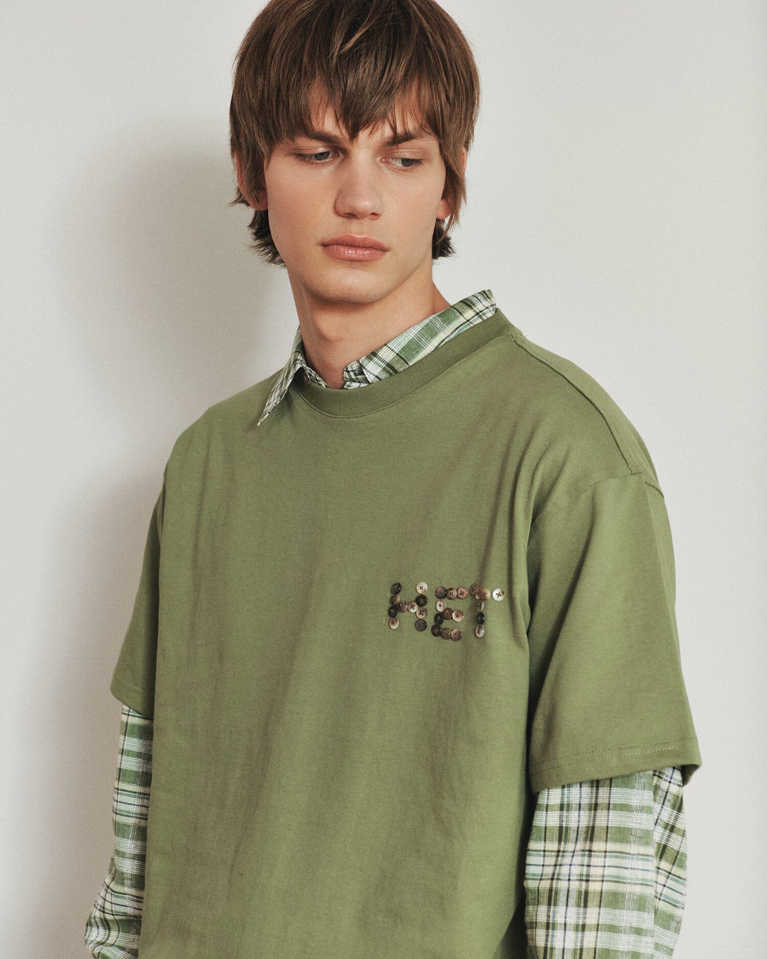 TURN PEARL BUTTON LOGO T-SHIRT (OLIVE)