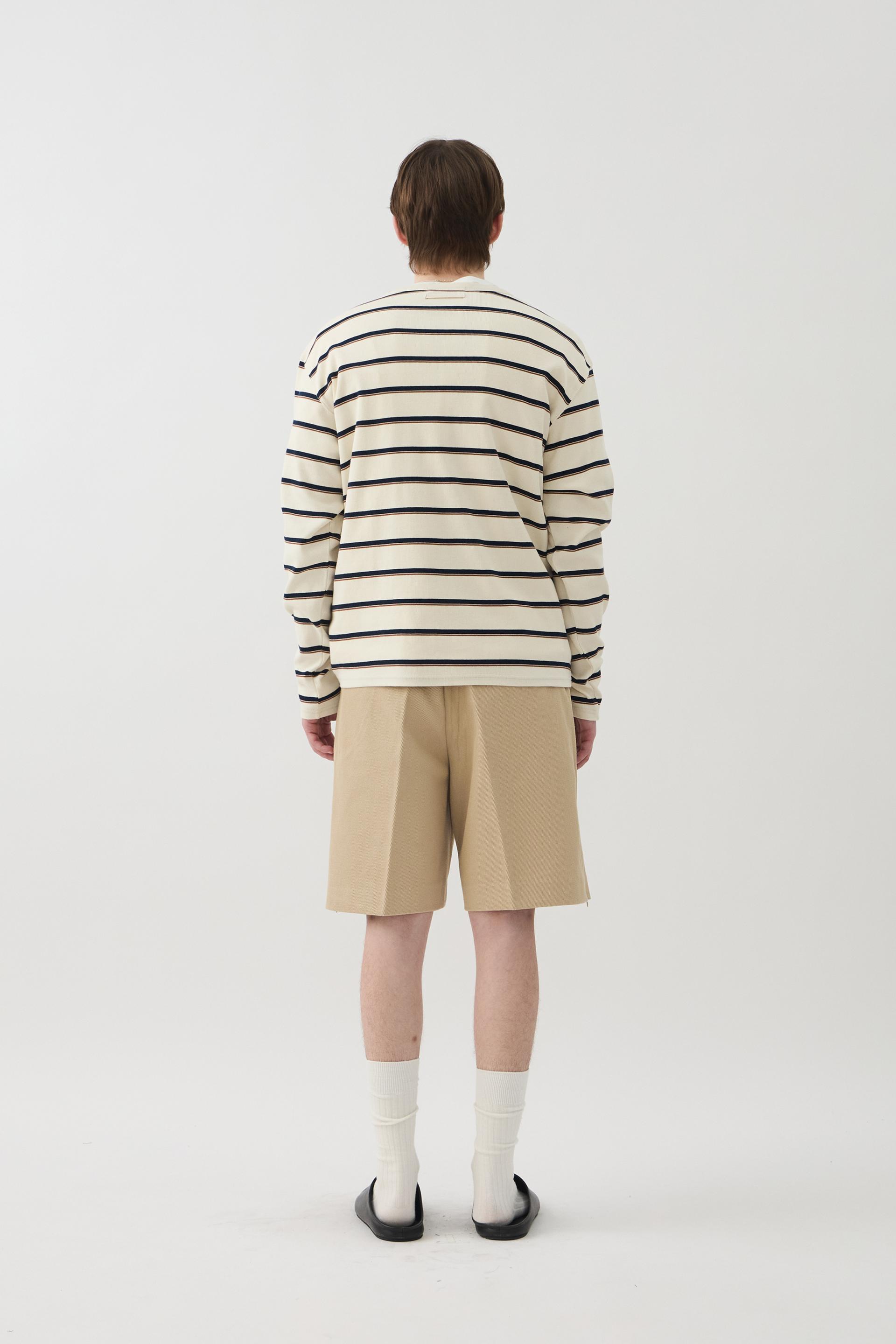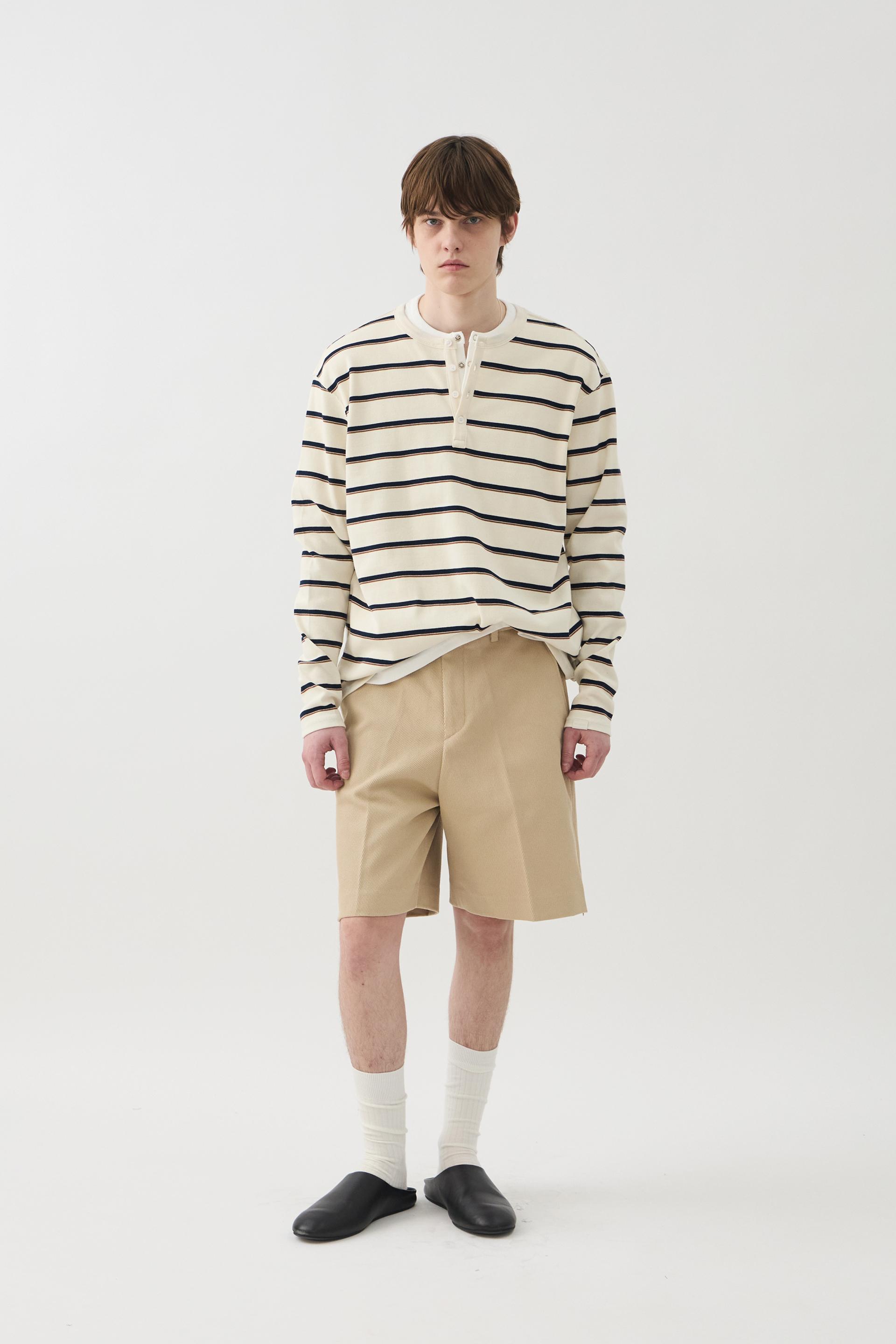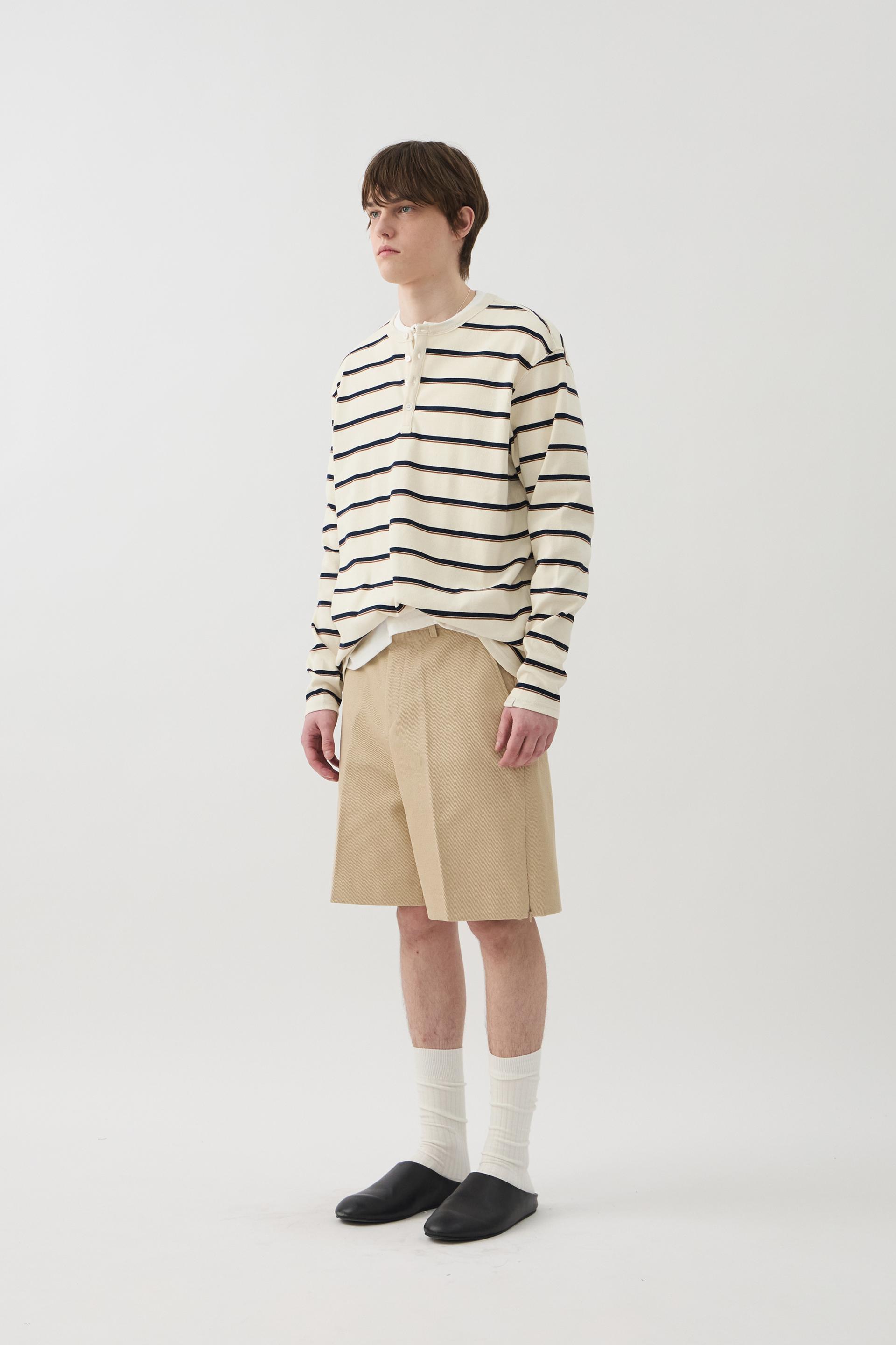STRIPED COTTON HENLEY NECK TOP - NATURAL IVORY