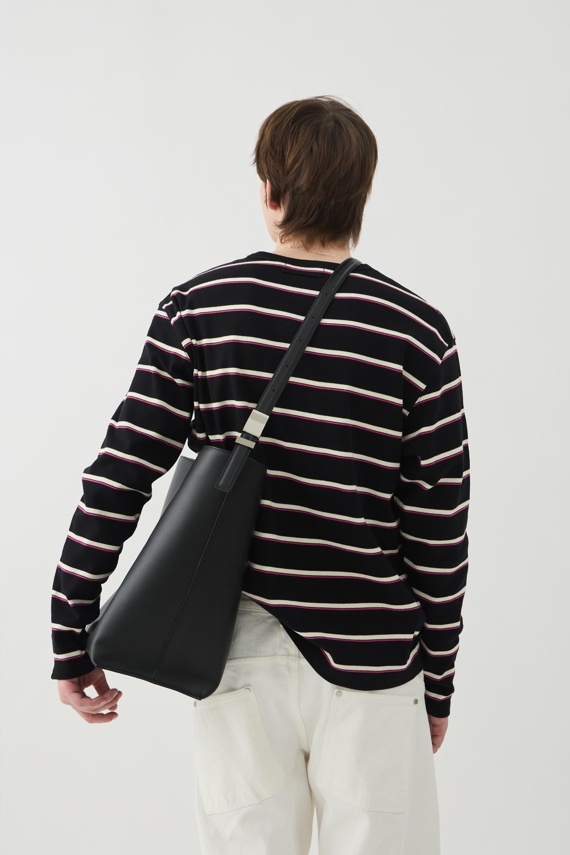 STRIPED COTTON HENLEY NECK TOP - BLACK