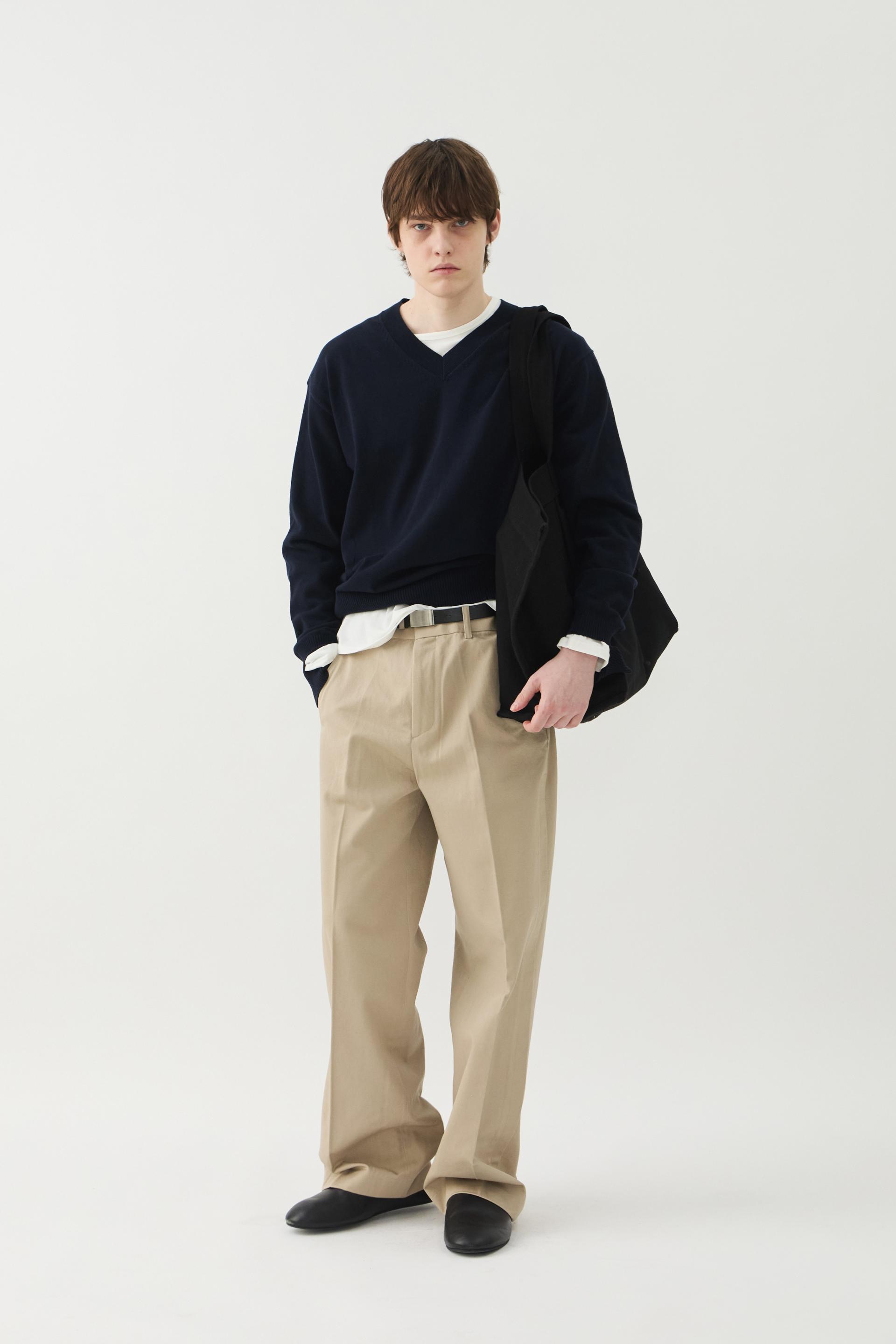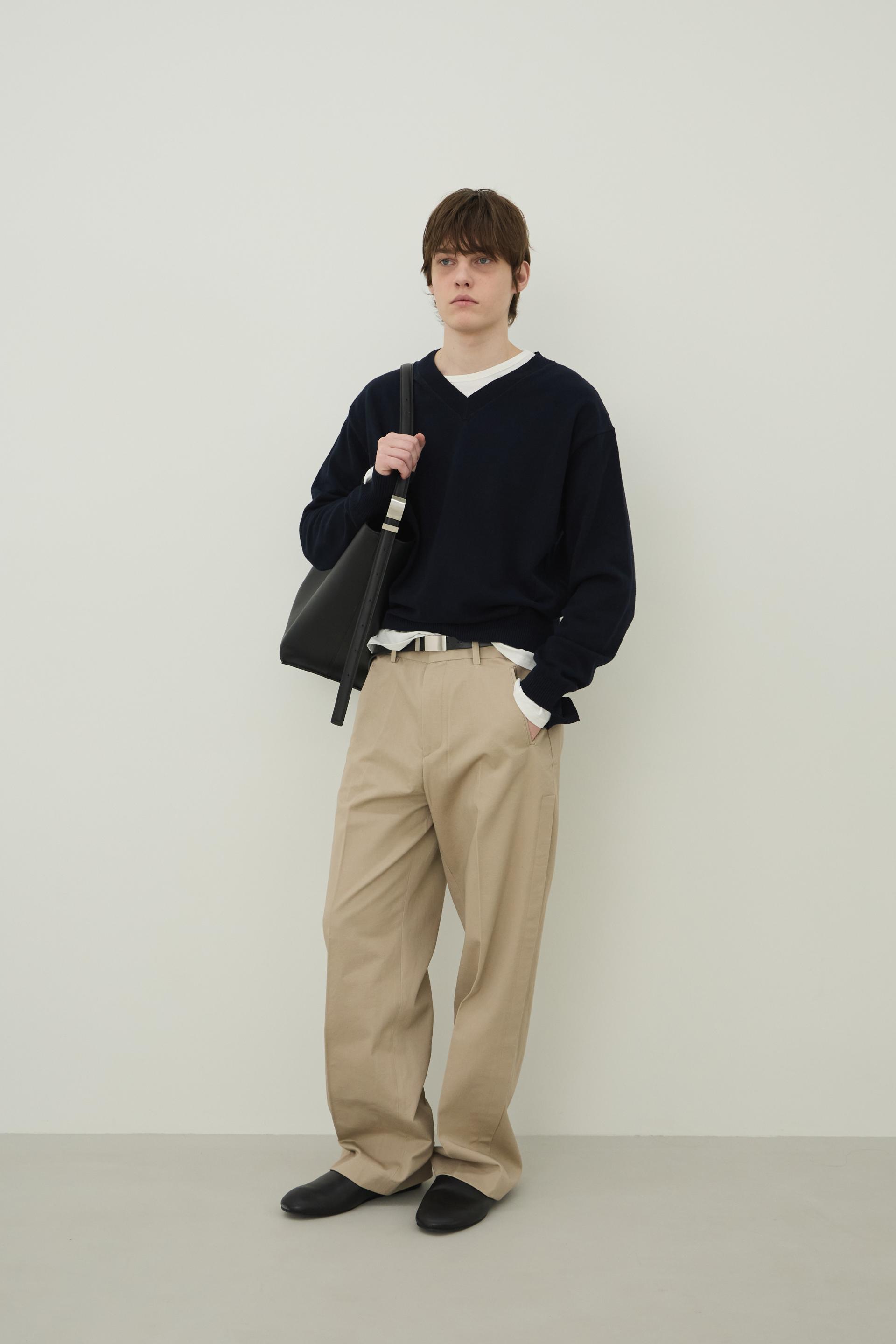 -크롭 세미오버사이즈 실루엣의 브이넥 스웨터