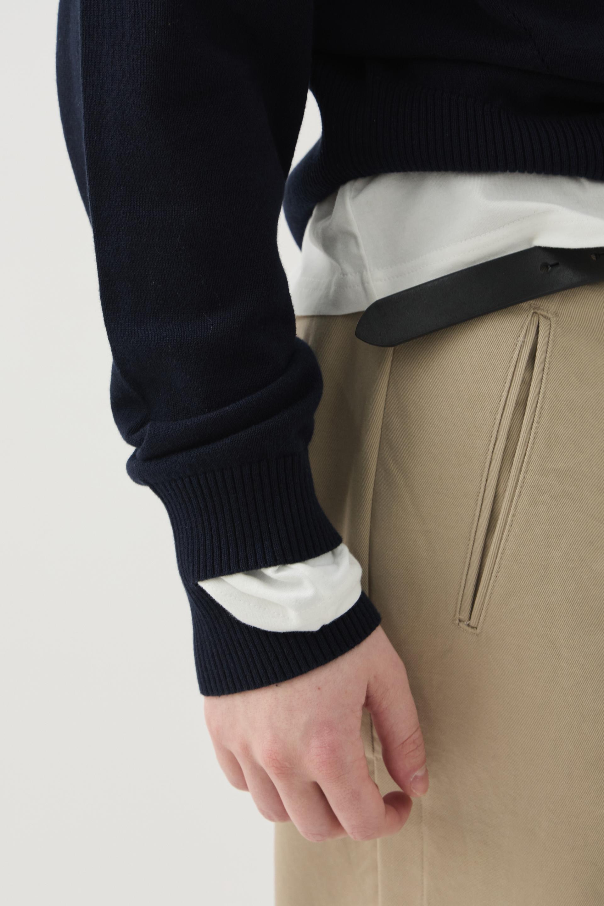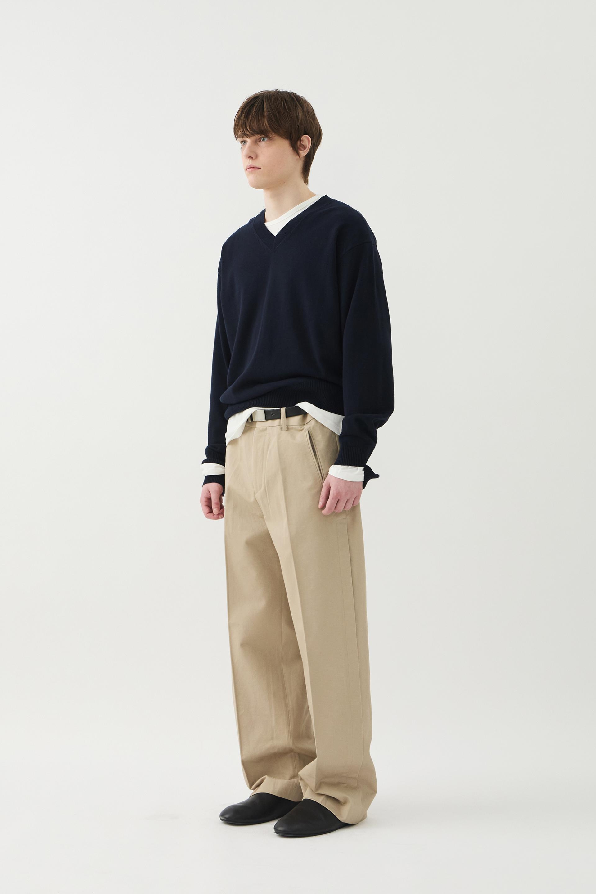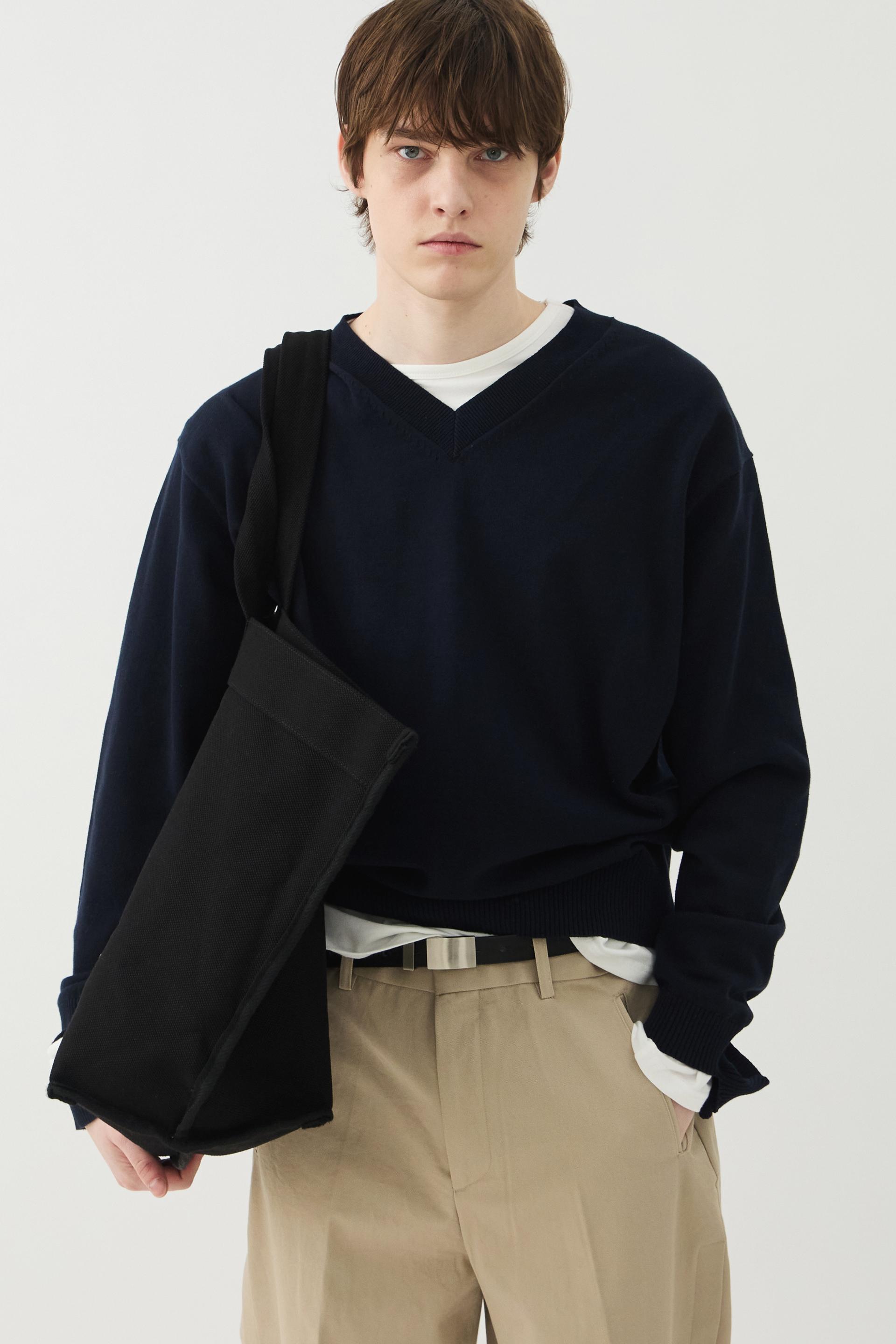 SLEEVE-CUT FINE COTTON V NECK SWEATER - DARK NAVY