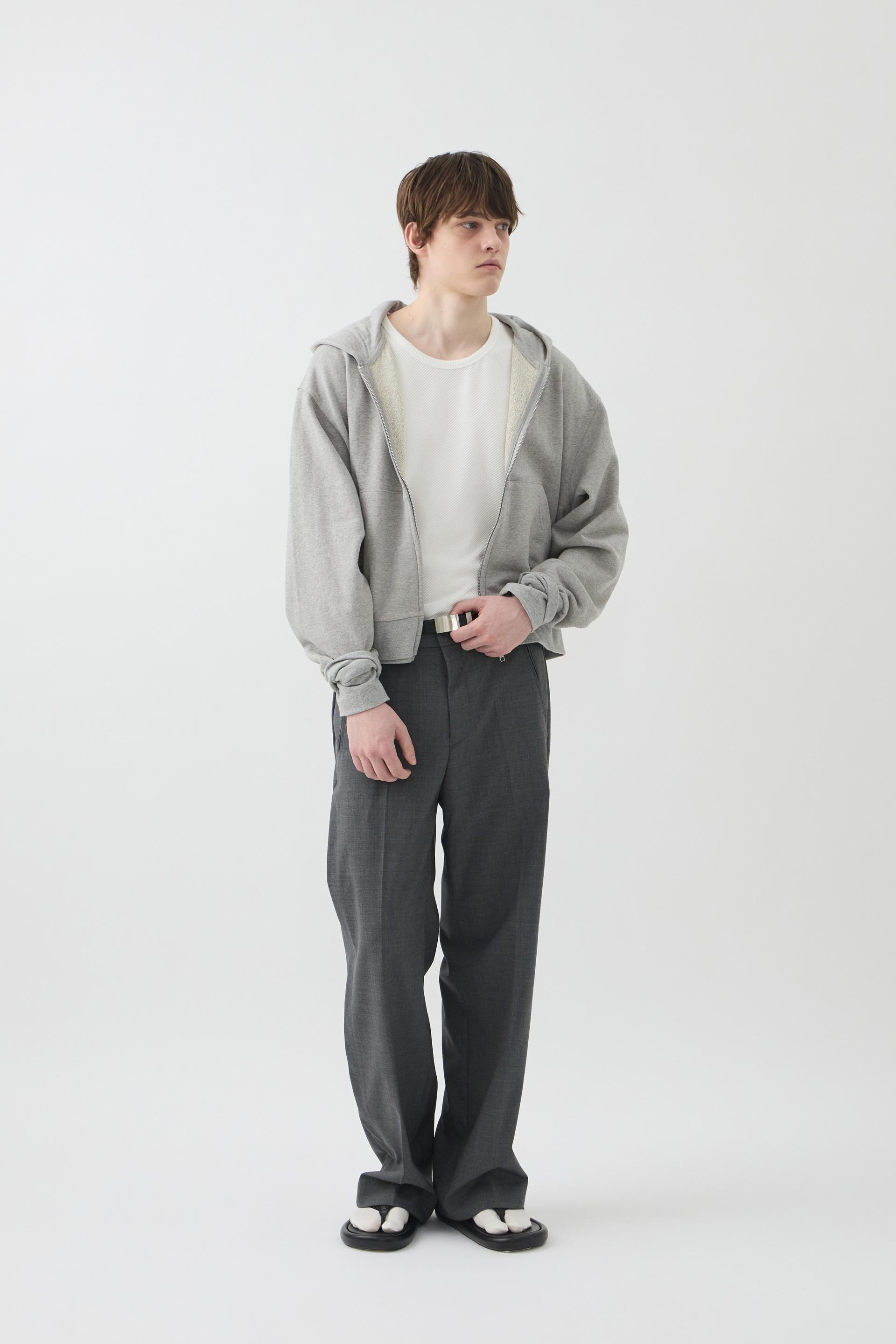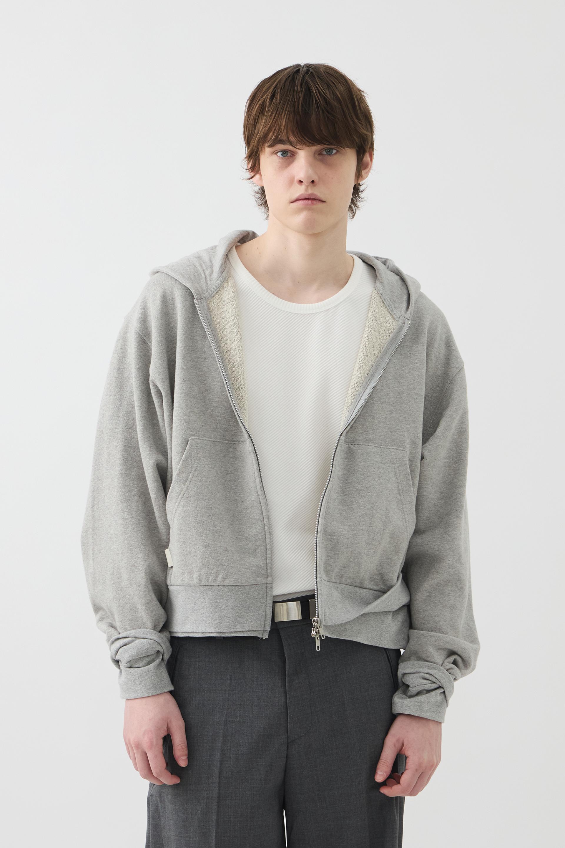 DOUBLE-RIB CROP HOODIE JACKET - MELANGE GREY