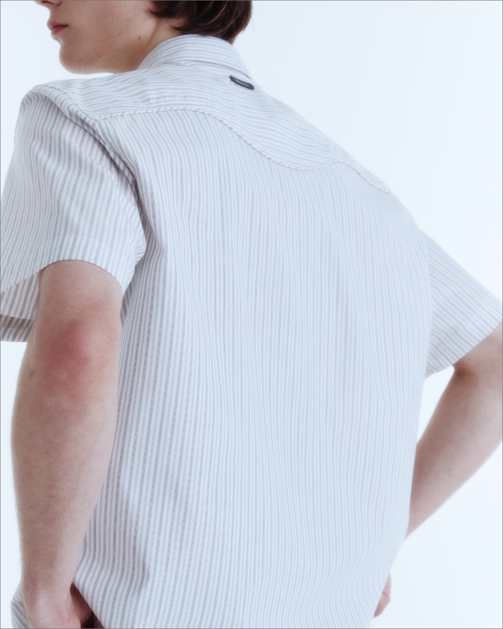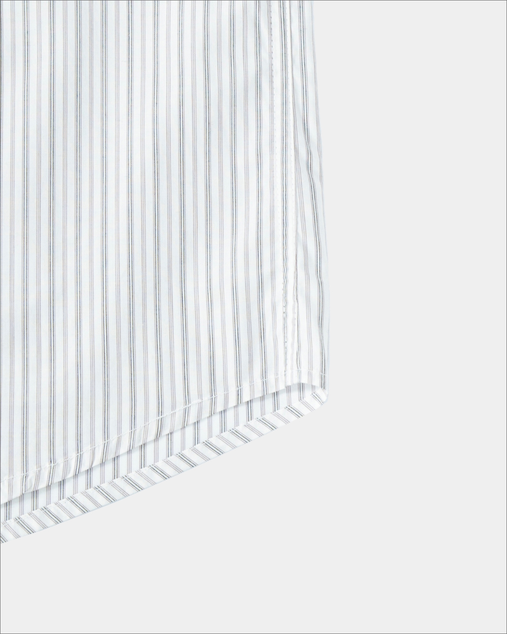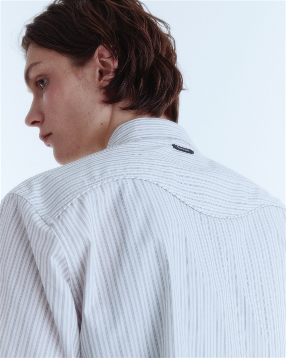 고밀도 코튼 소재의 클래식한 무드의 스트라이프 패턴이 매력적인 셔츠 제품 입니다.