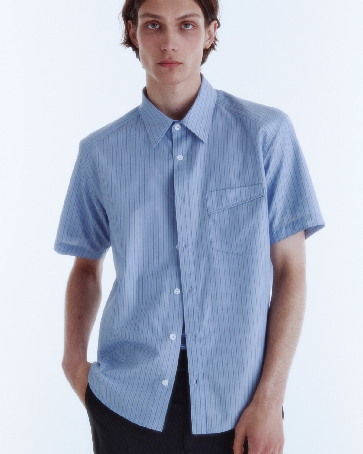 고밀도 코튼 소재의 클래식한 무드의 스트라이프 패턴이 매력적인 셔츠 제품 입니다.