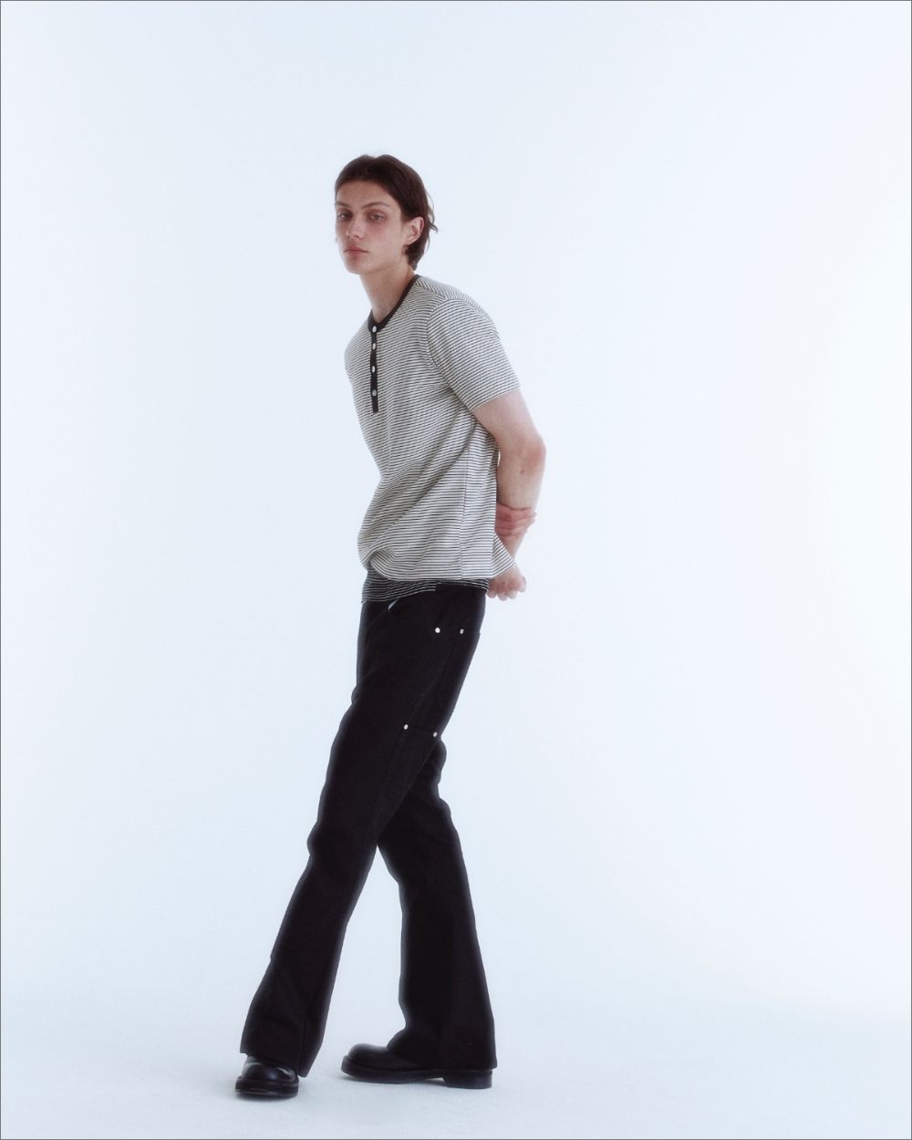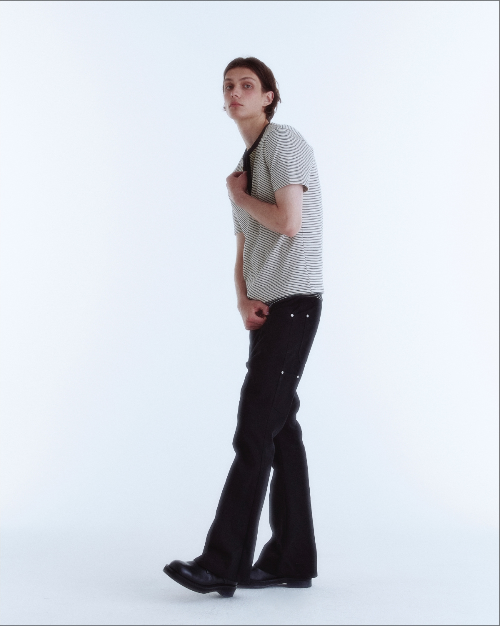 슬림한 실루엣의 제품으로 코튼과 스판 혼방으로 편안하고 활동성 있게 착용이 가능합니다.
