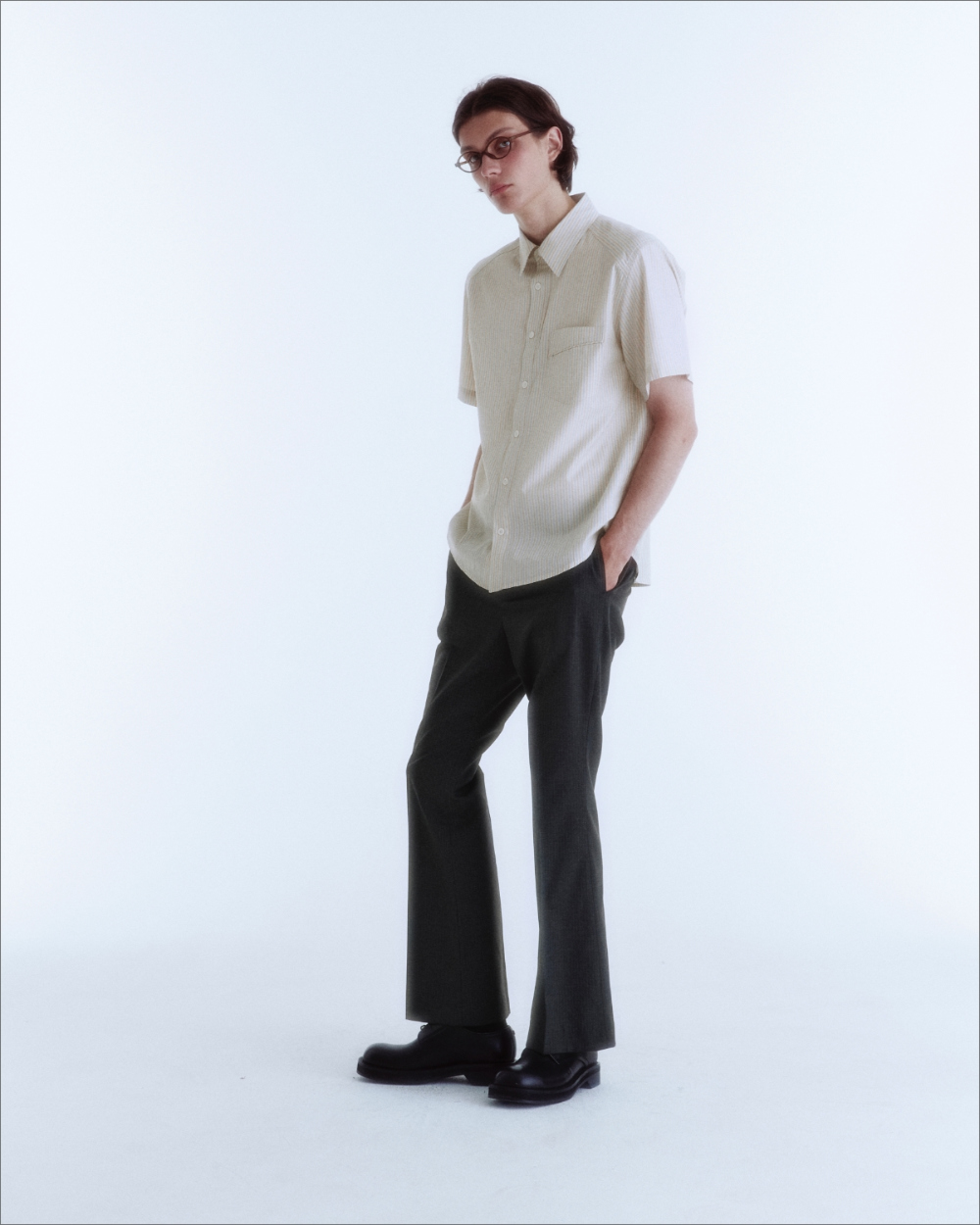 소재 특유의 흐르는듯한 소 재감으로 착용시 매끄러운 플레어 실루엣을 표현합니다.