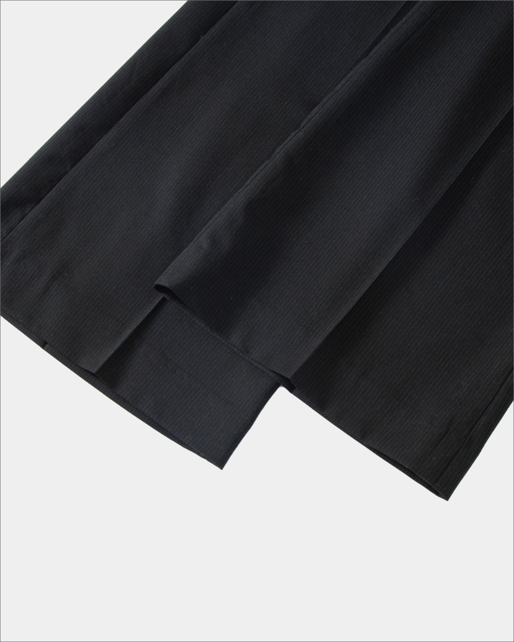 울과 캐시미어 혼방의 유연한 소재감이 우아한 핀 스트라이프 패턴의 플레어 팬츠입니다.