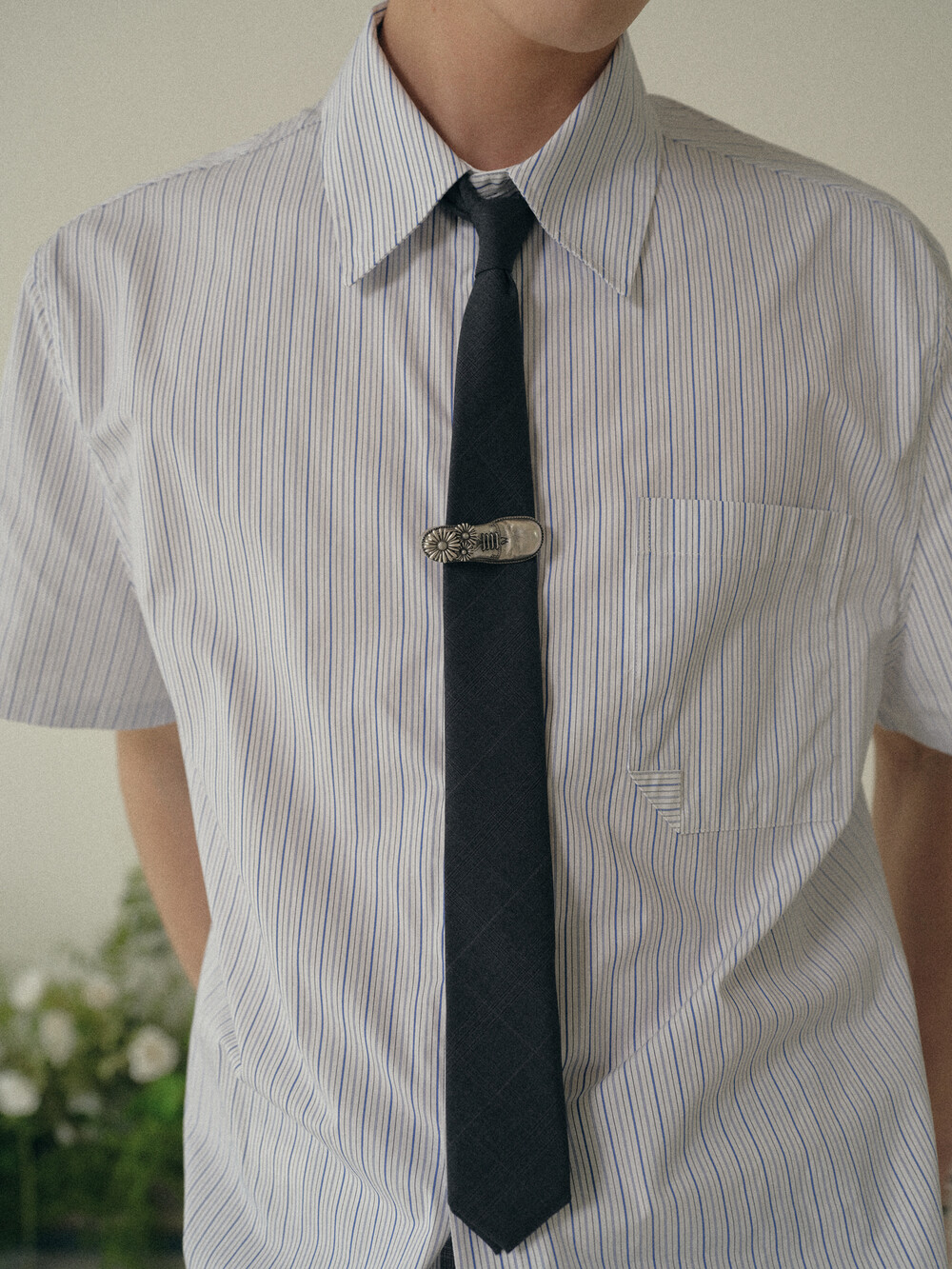 - 여러 사이즈의 넥타이 샘플링을 통해 웨이비니스의 시그니처 라인 셔츠들과 가장 호환성이 좋다고 판단되는 대검 50mm, 소검 38mm로 제작