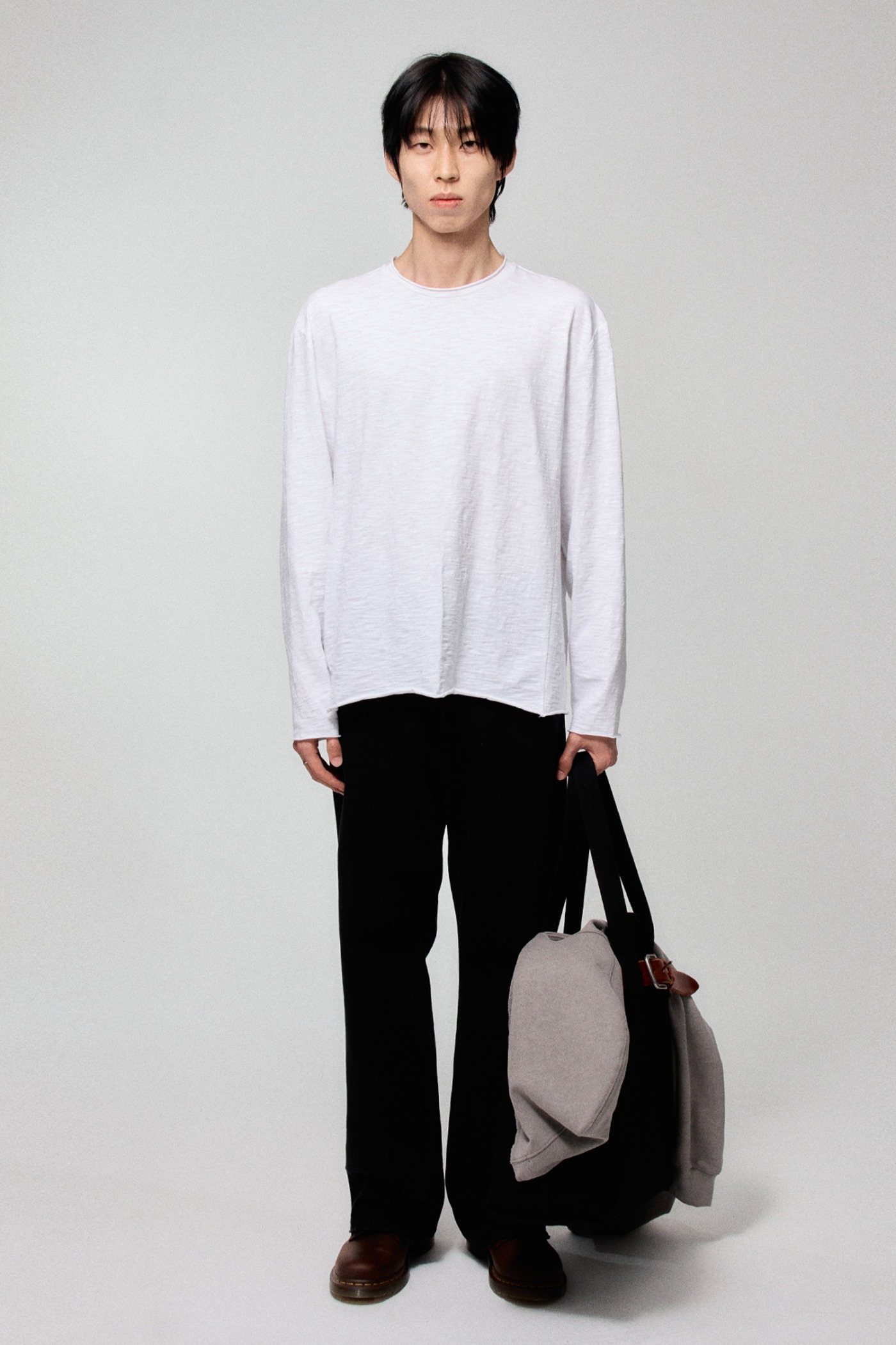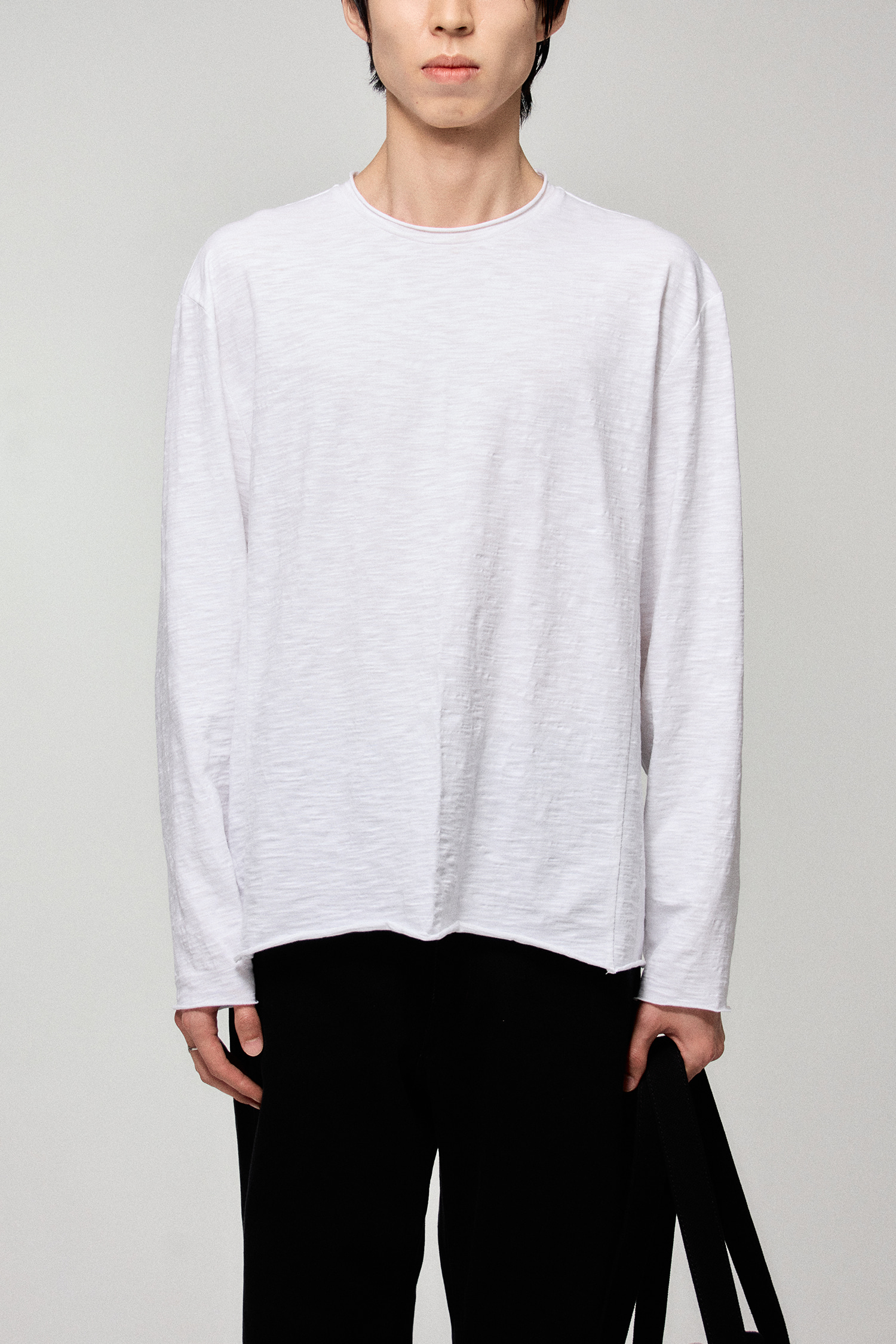[SENTES] 프레이드 슬러브 롱 슬리브 티셔츠 화이트