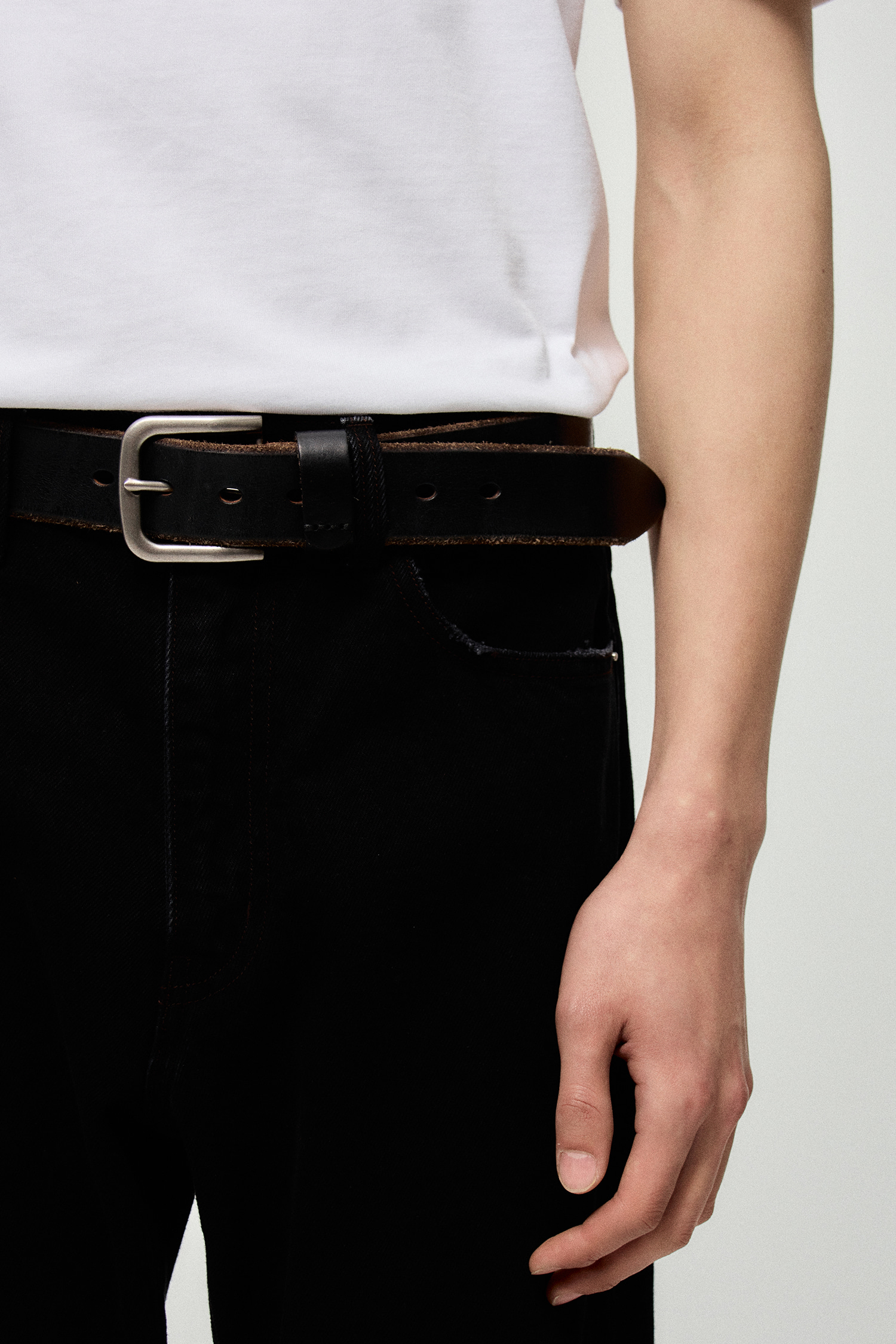 베지터블 풀 그레인 레더를 빈티지 가공하여 제작된 벨트로, 자연스럽고 거친 매력을 강조한 아이템입니다.