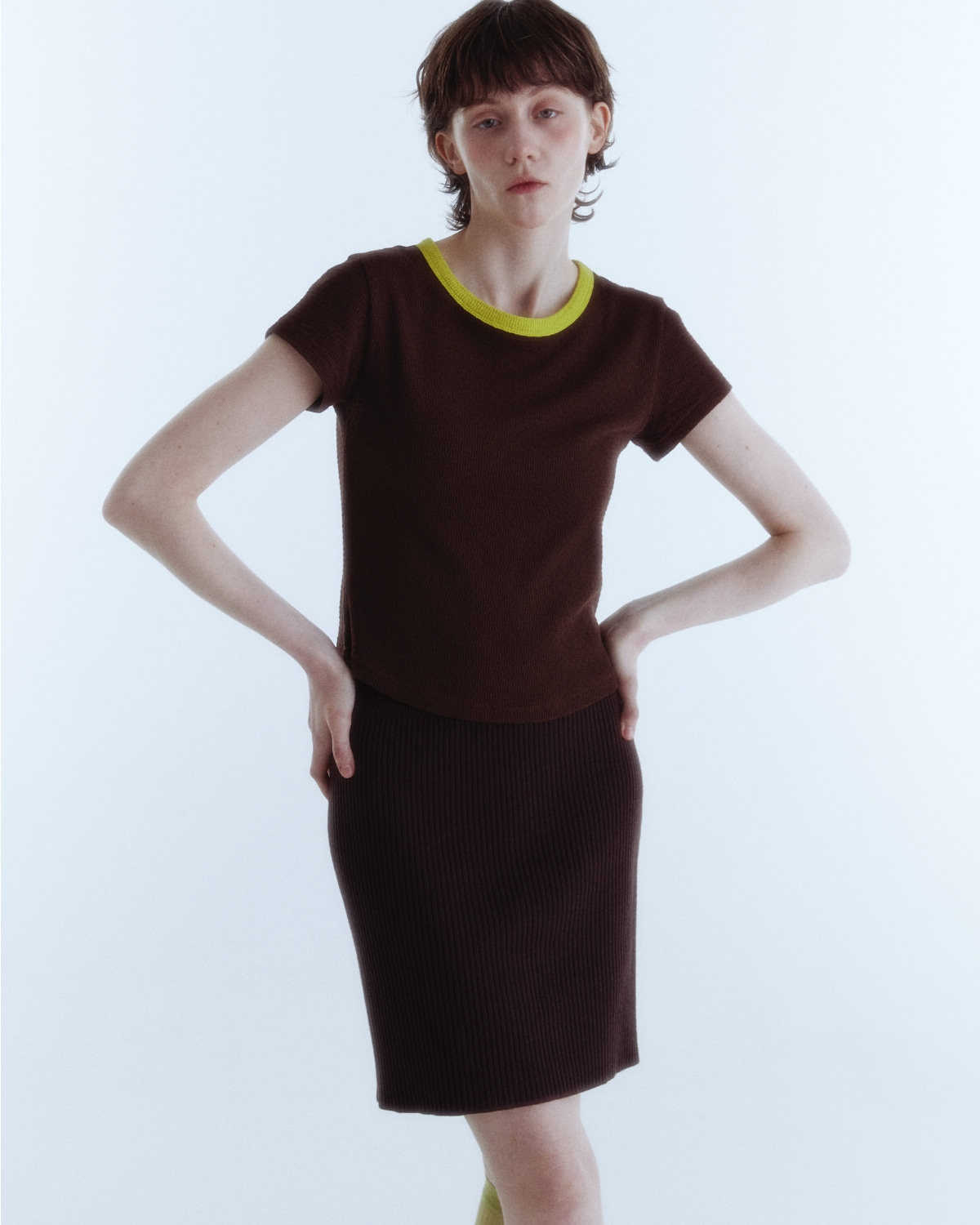 Round Ribbon Line T-Shirt_Brown Lime_W