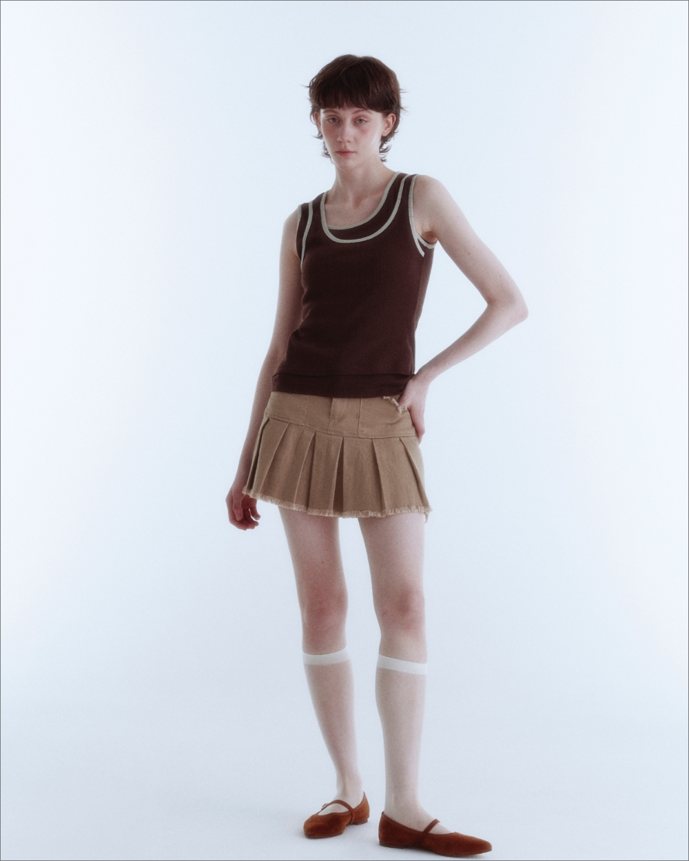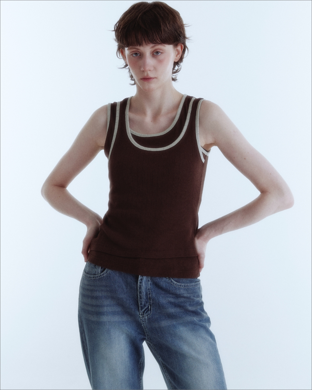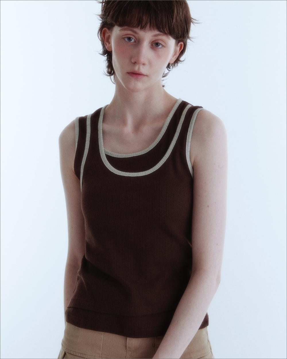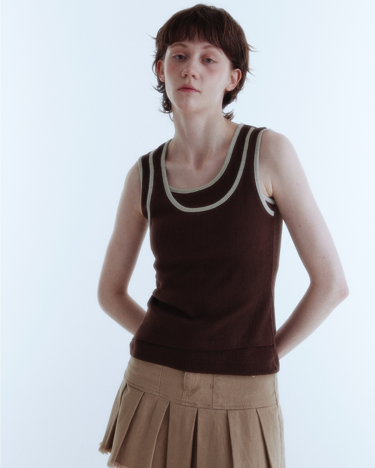 Double Layered Sleeveless Top_Brown_W