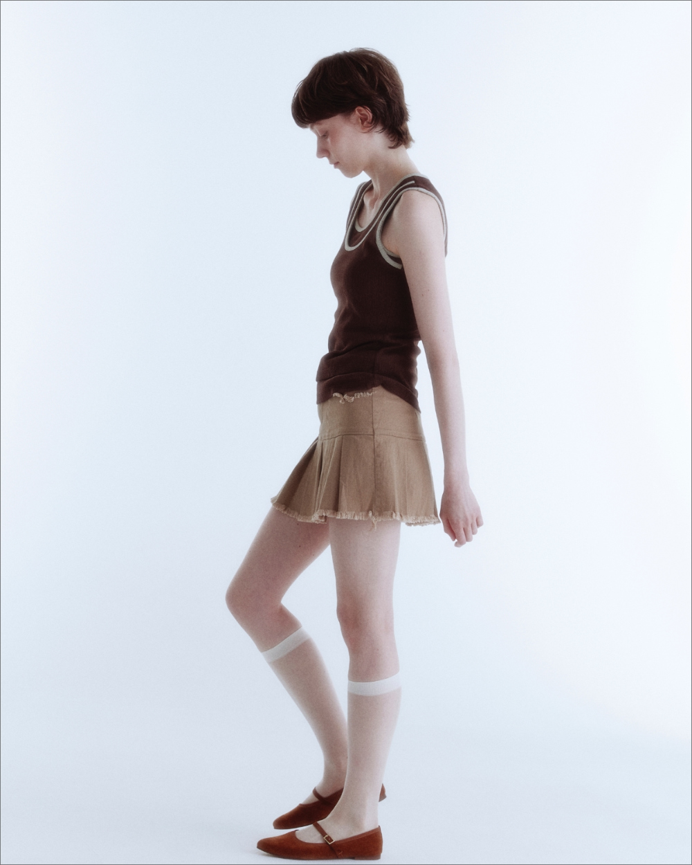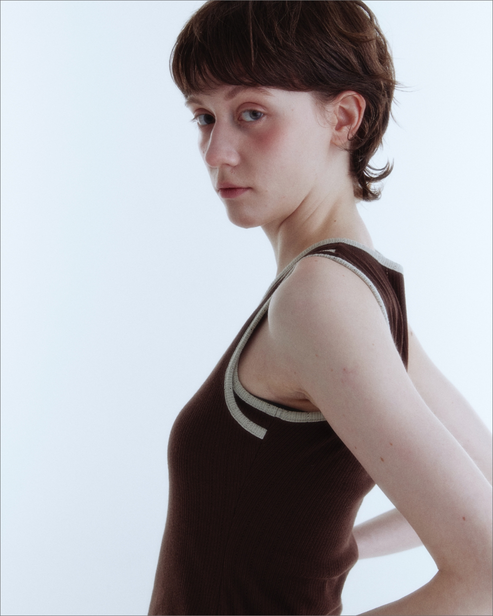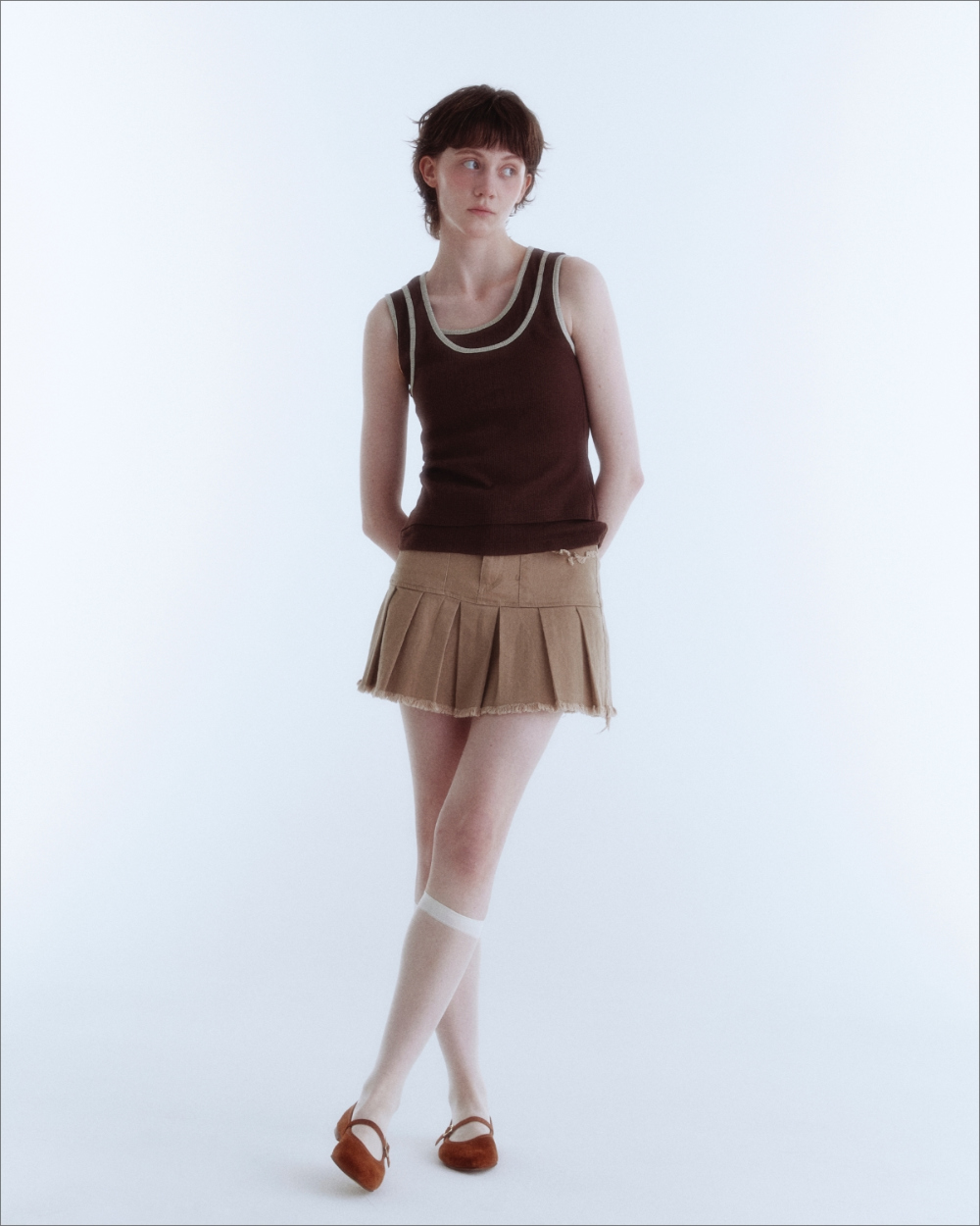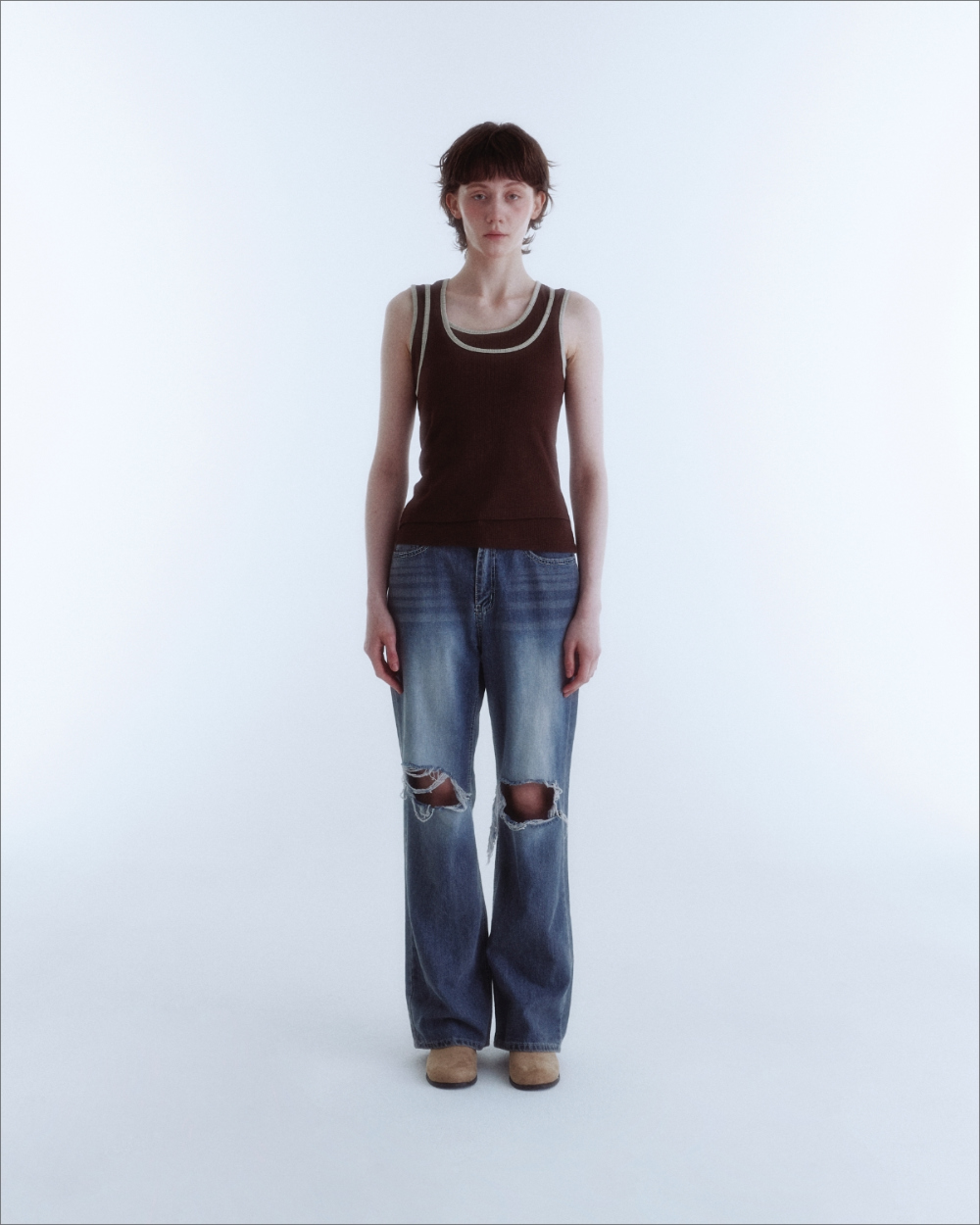 Double Layered Sleeveless Top_Brown_W