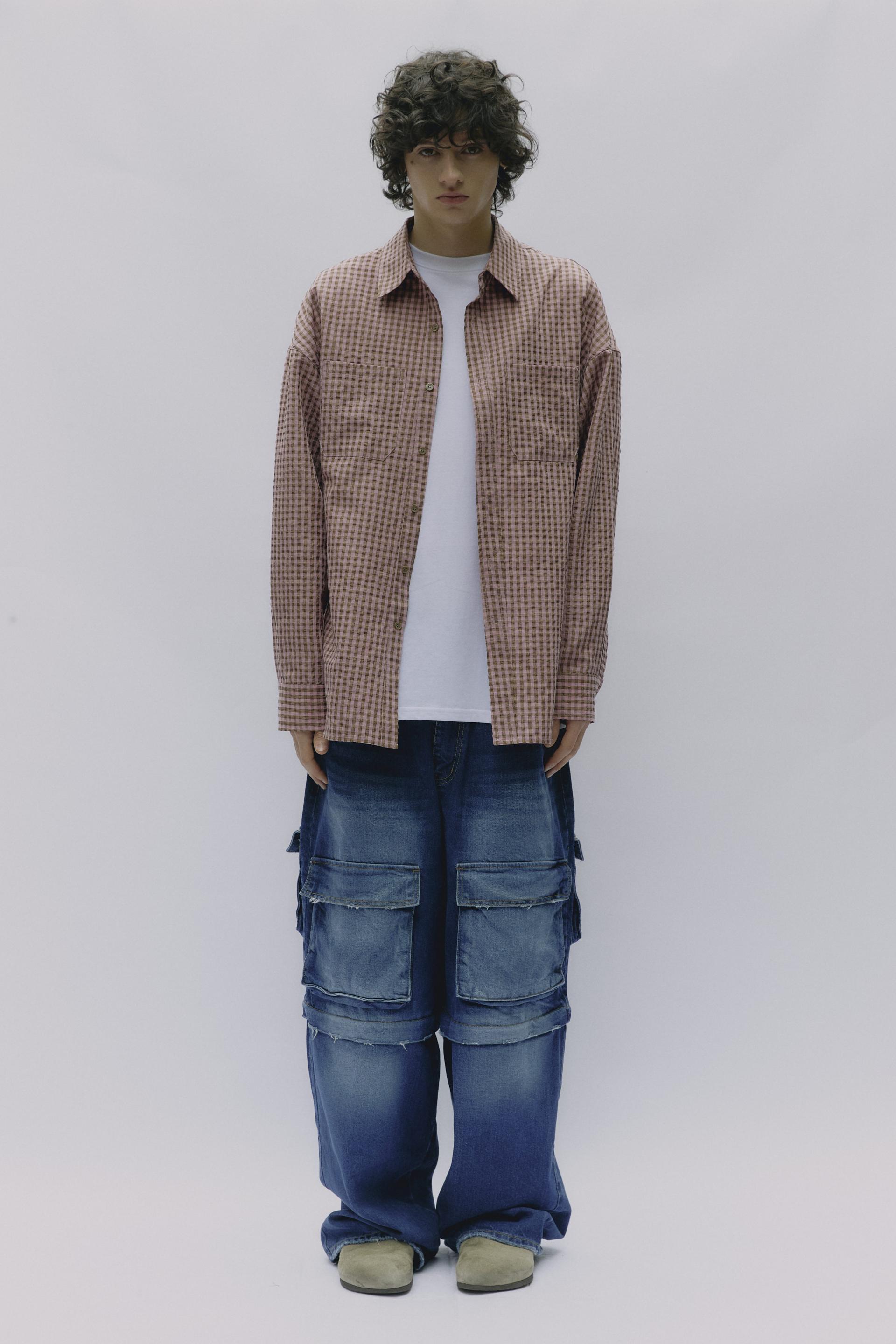 자연스러운 구김이 멋스럽고, 캐주얼한 체크와 양쪽 더블 포켓,