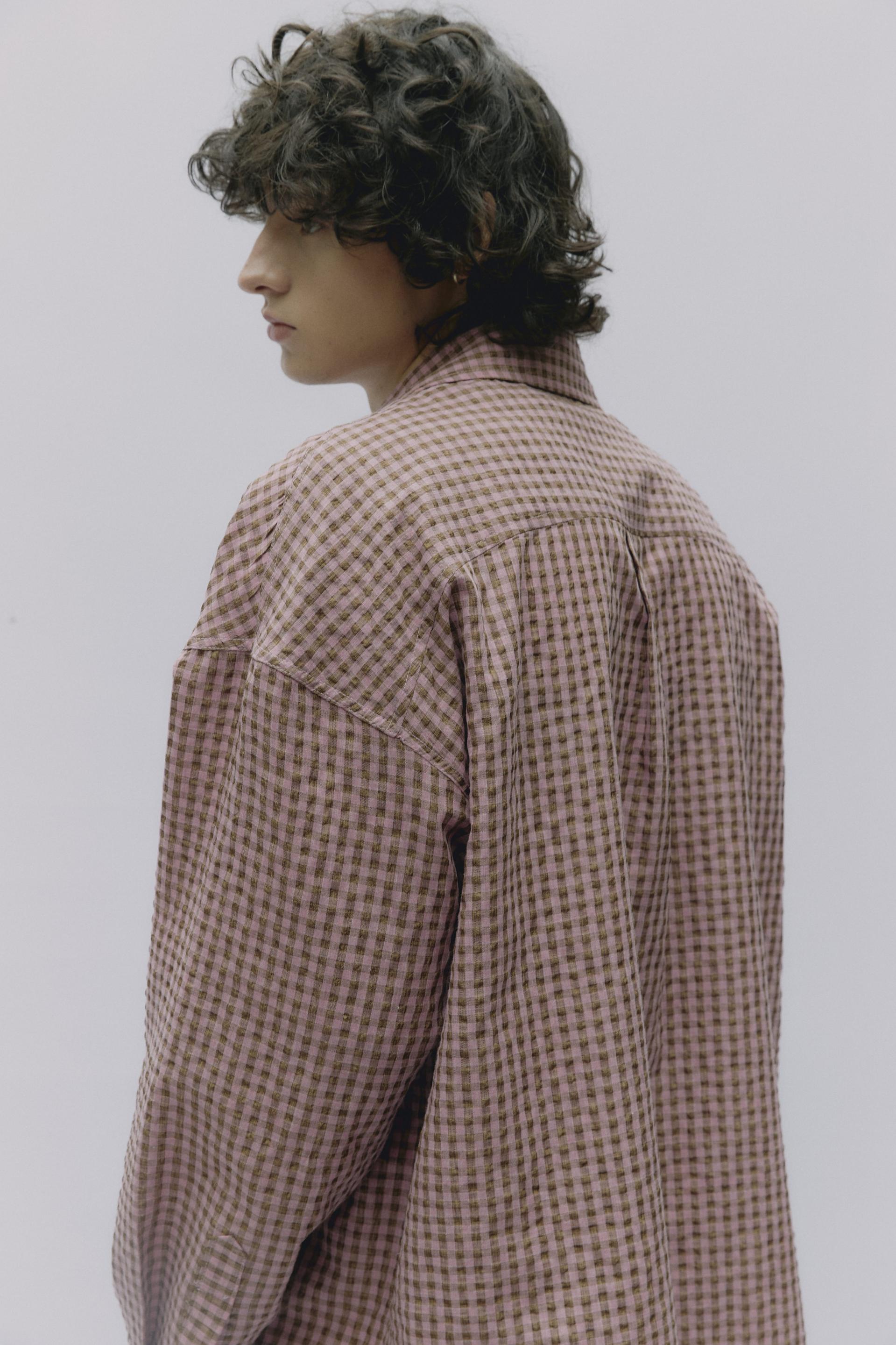 리플 조직감의 입체적인 텍스처가 특징인 박스 셔츠로,