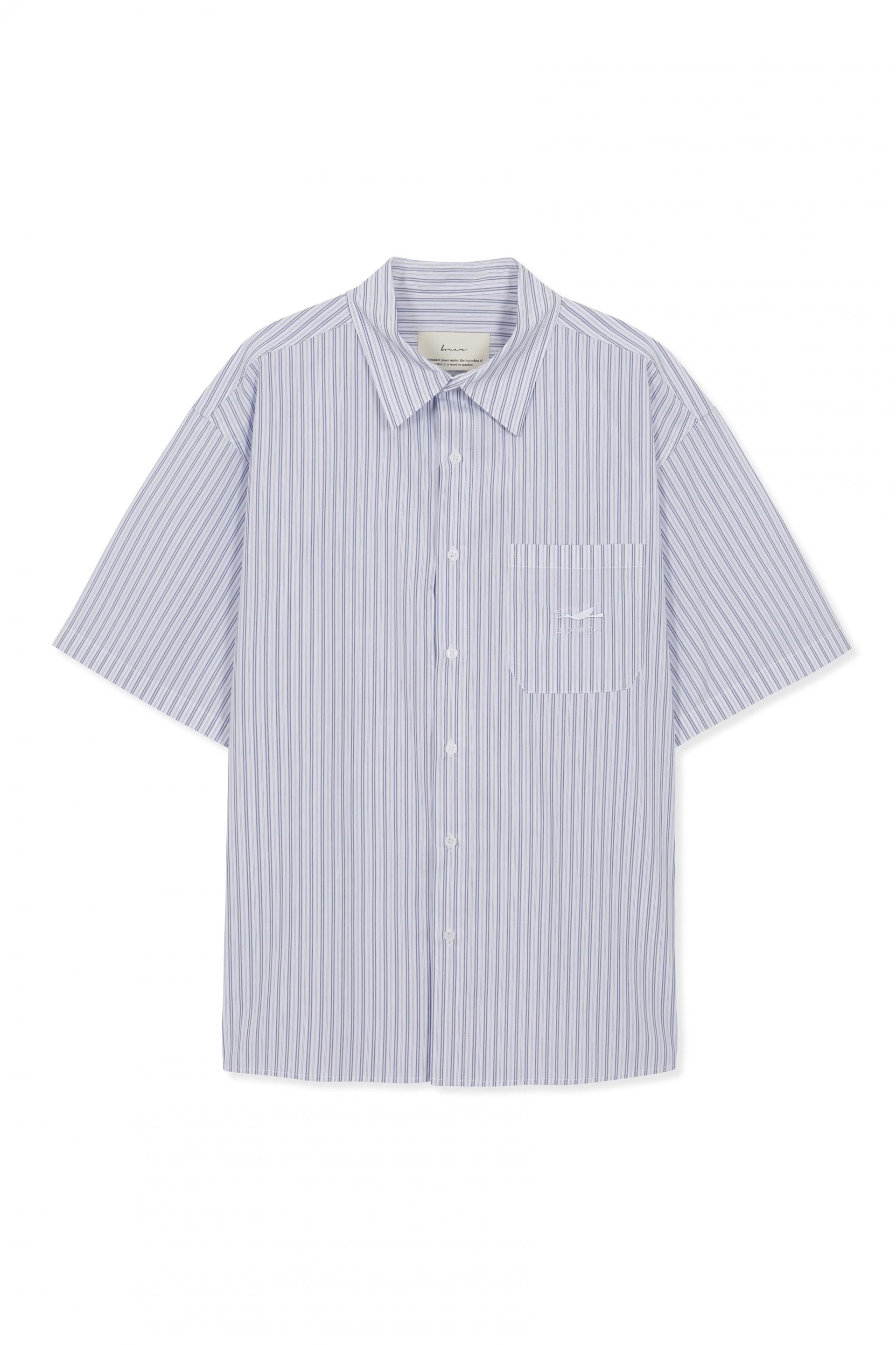 BOWER SILENT STRIPE EMBROIDERED HALF SHIRT frost white