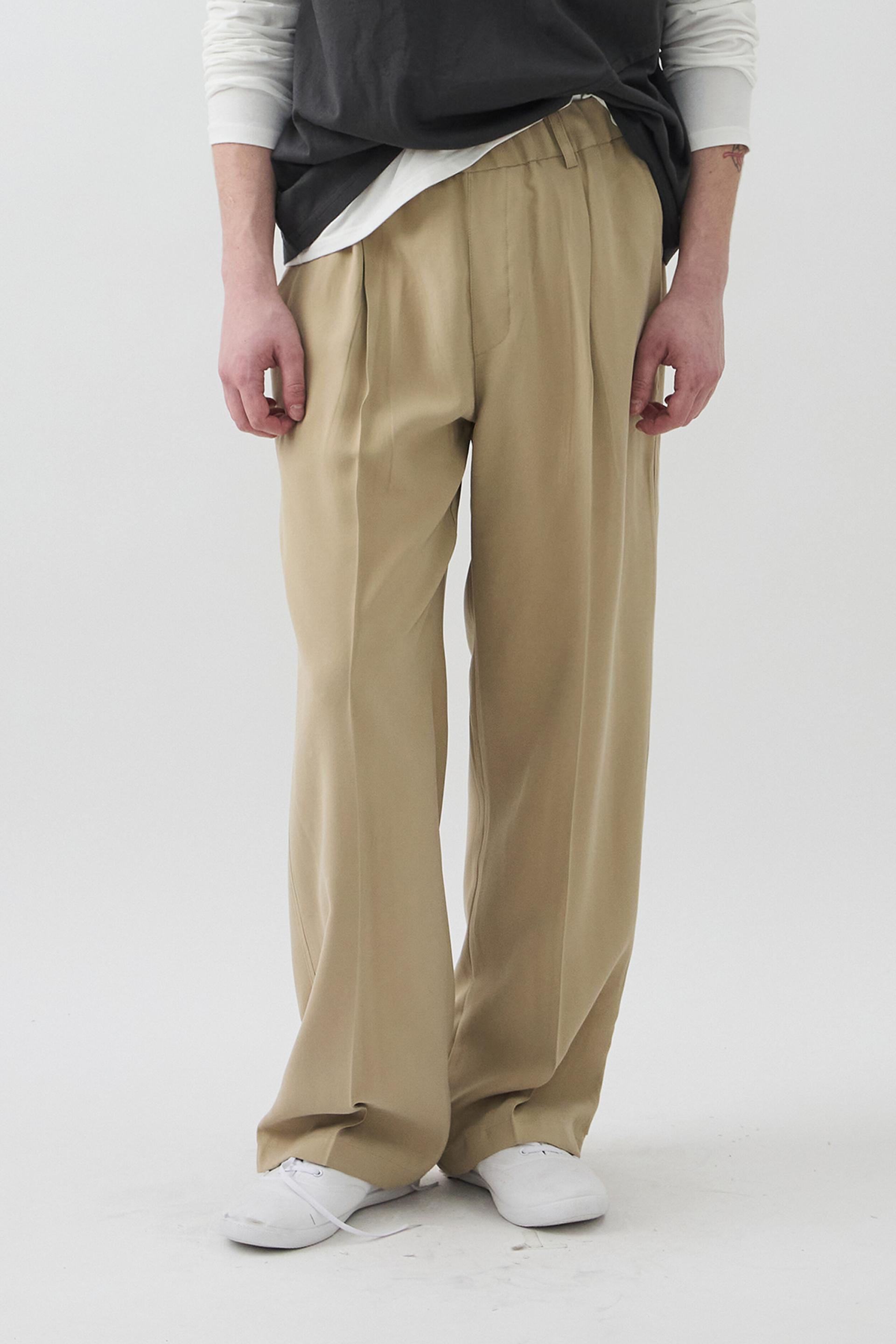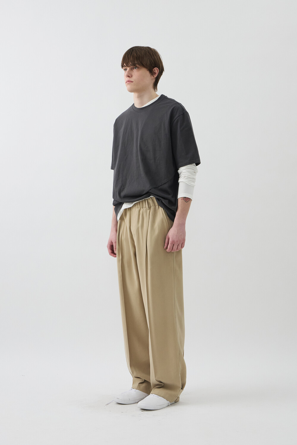 -드레이프성이 있는 소재로 제작된 와이드실루엣 밴딩 트라우져