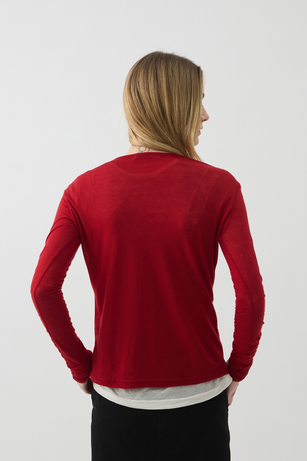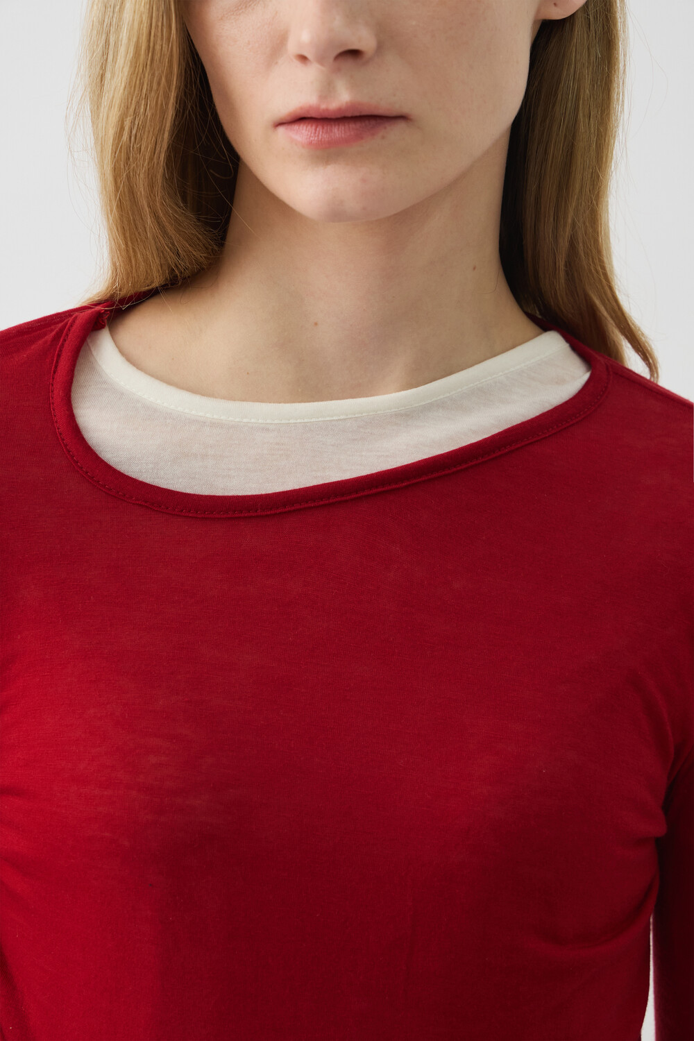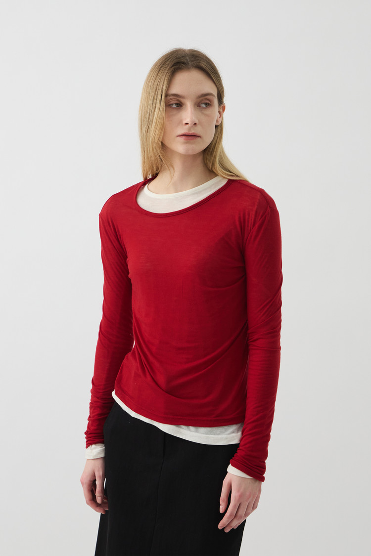 UNBALANCED NECK SHORT TOP - RED (W)