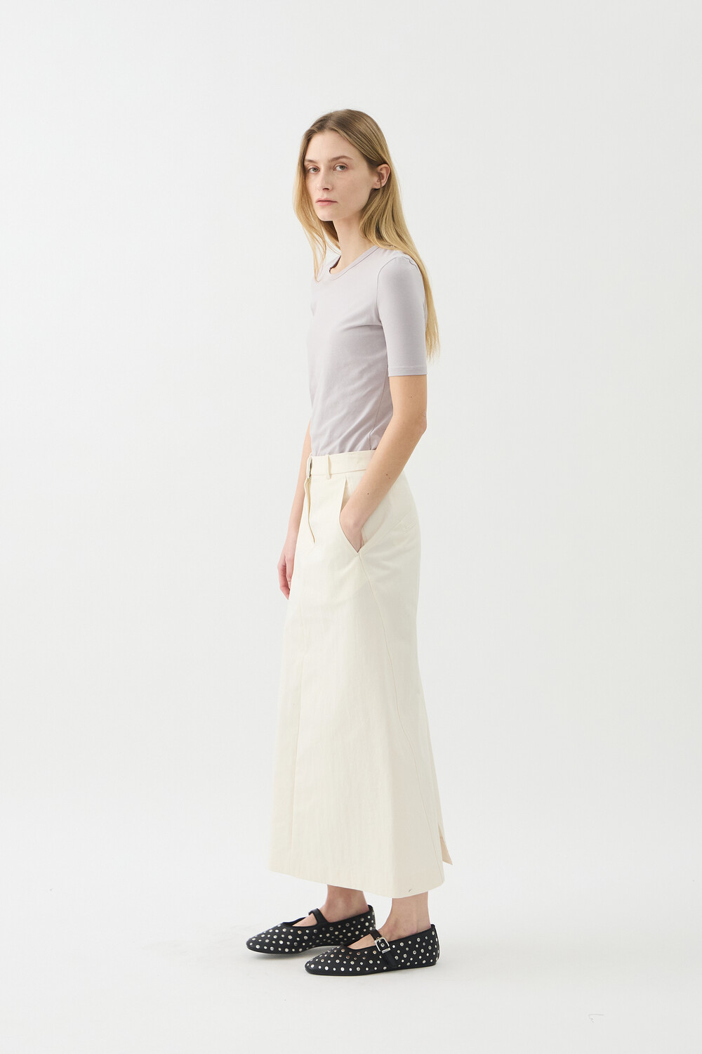 UNBALANCED NECK FITTED SHORT TOP - LIGHT GREY (W)