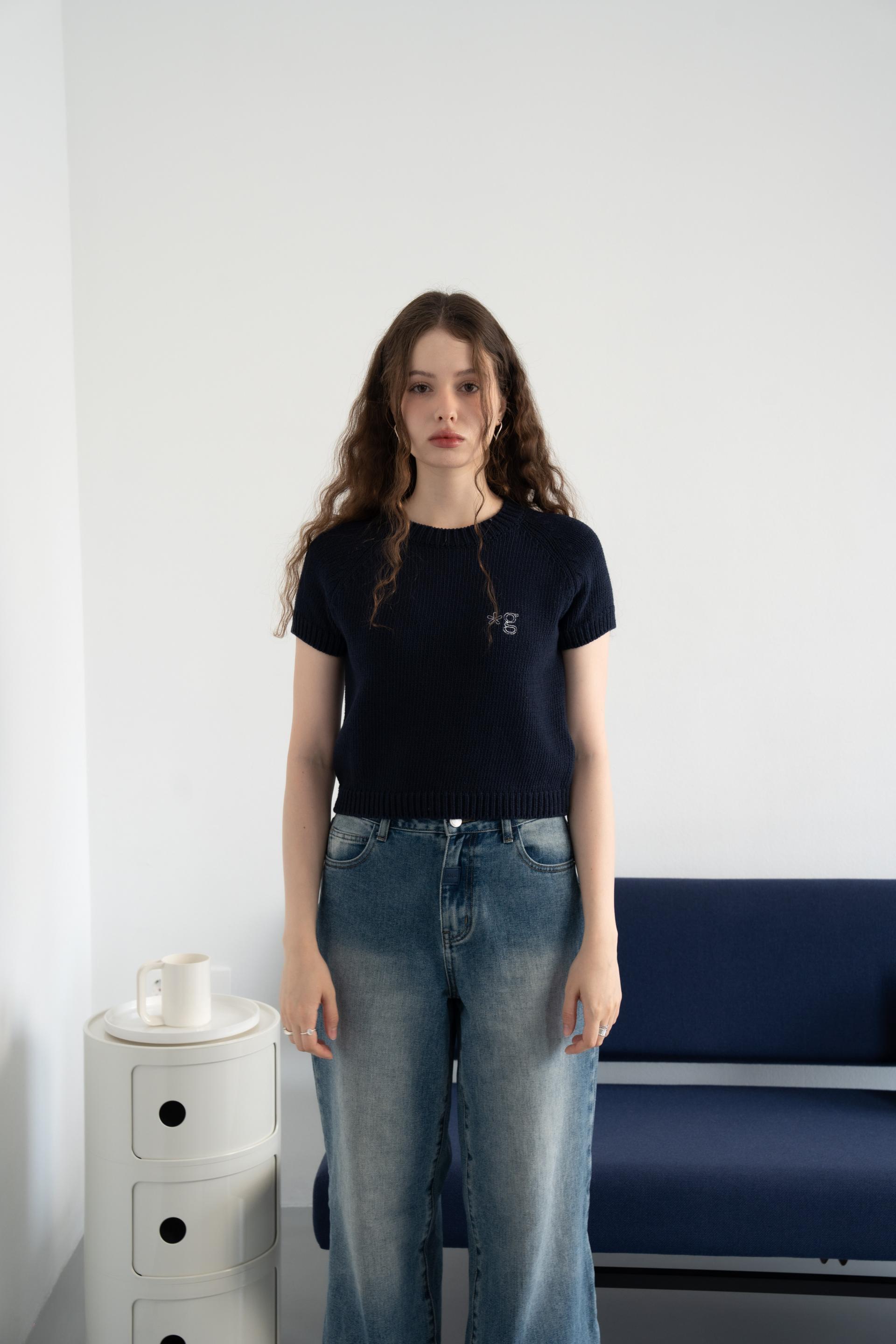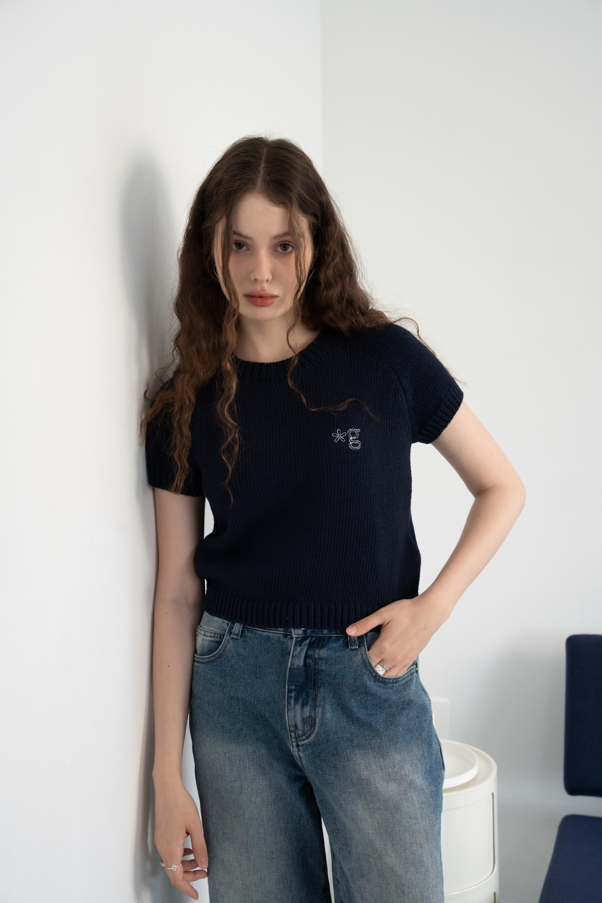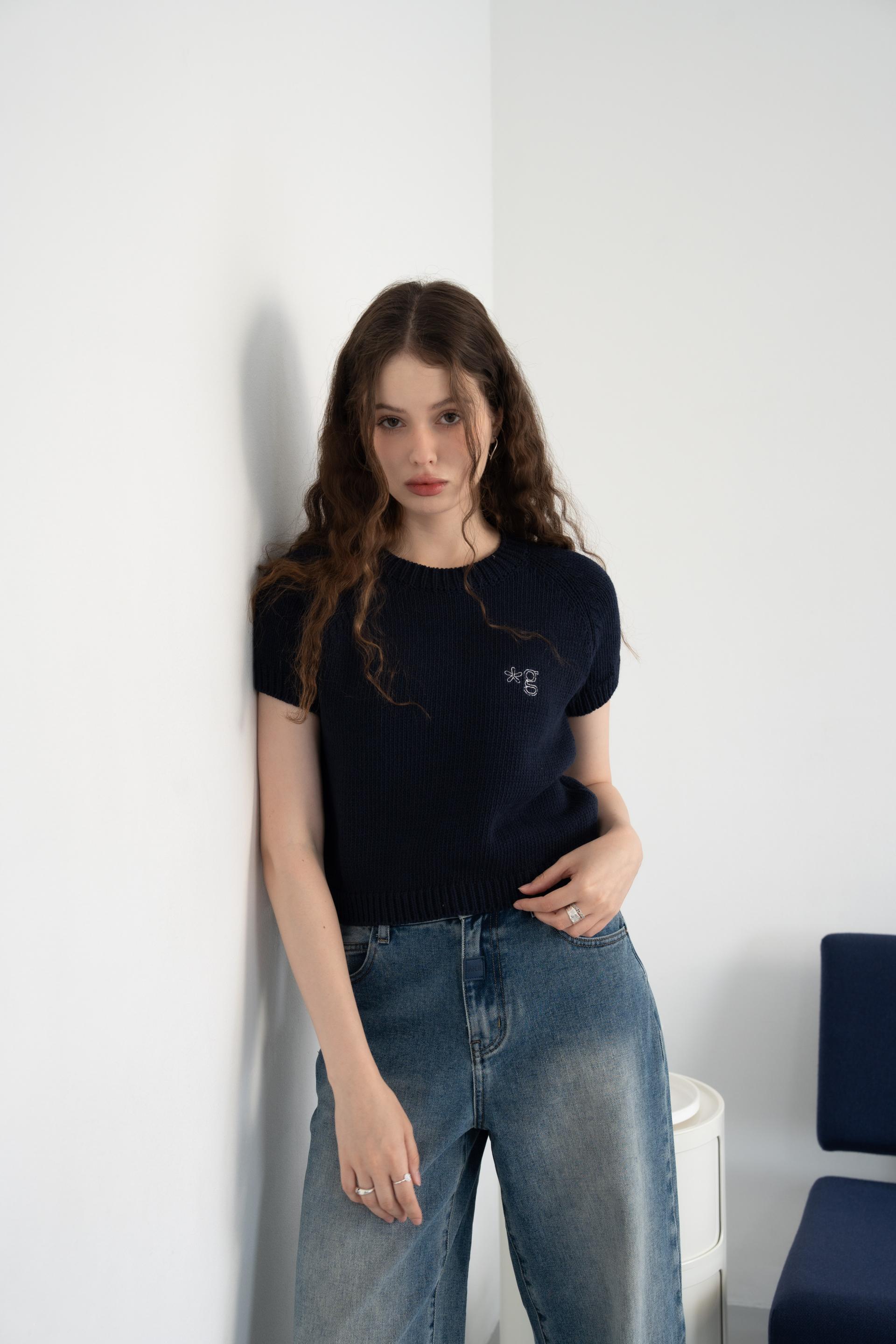 PLUMP SHORT-SLEEVE KNIT SWEATER (INK NAVY)