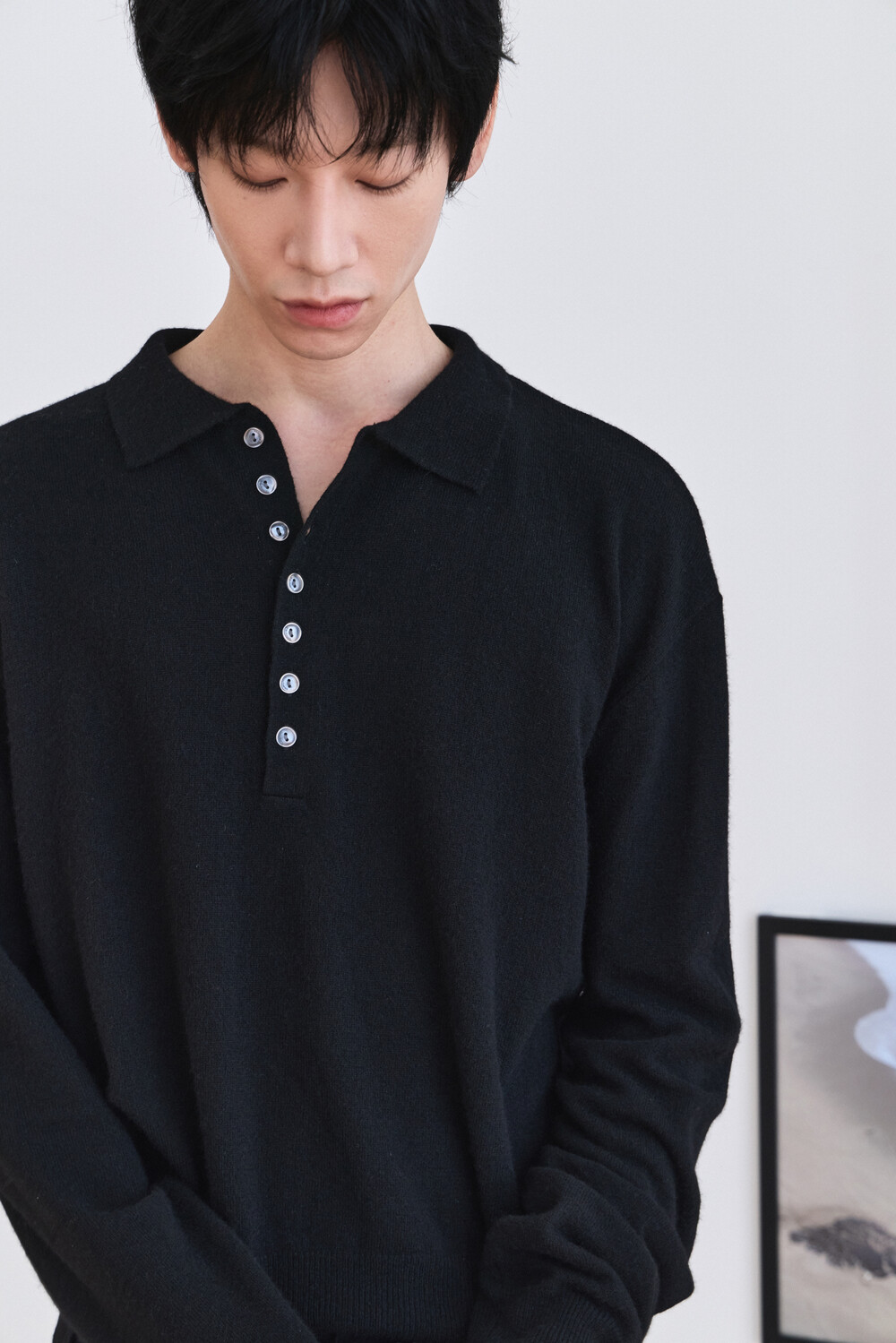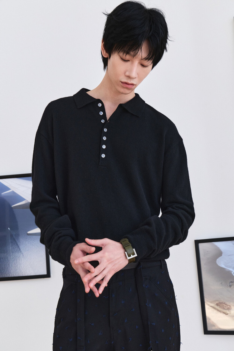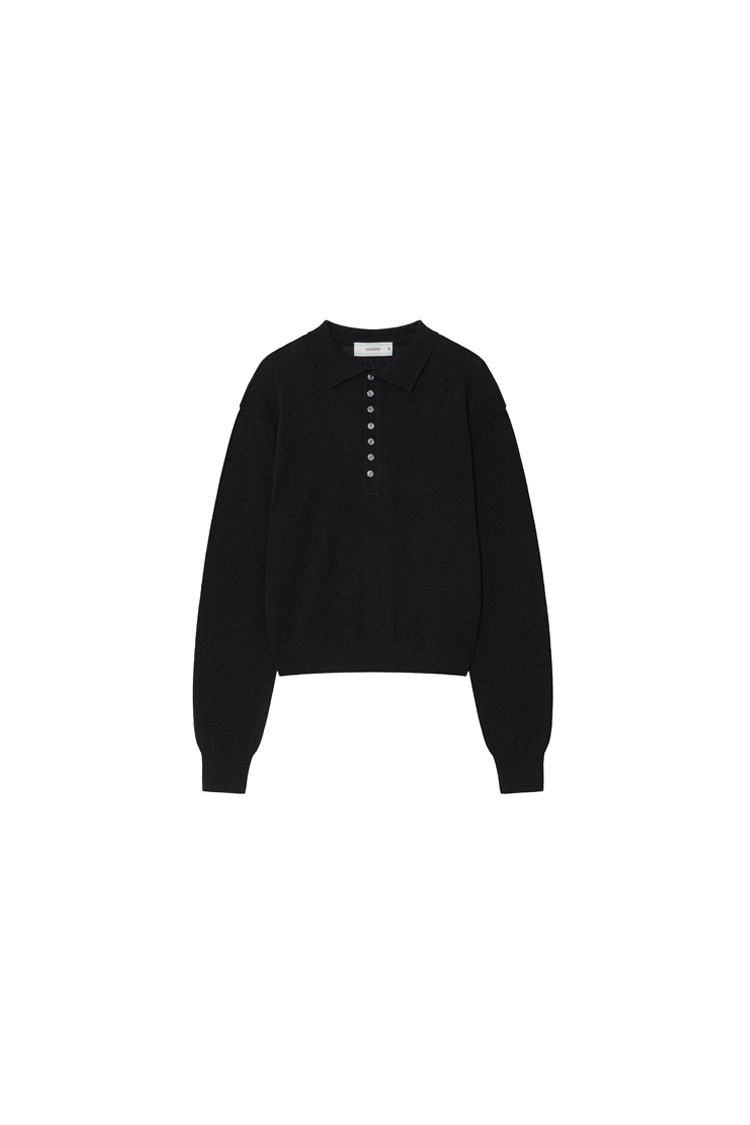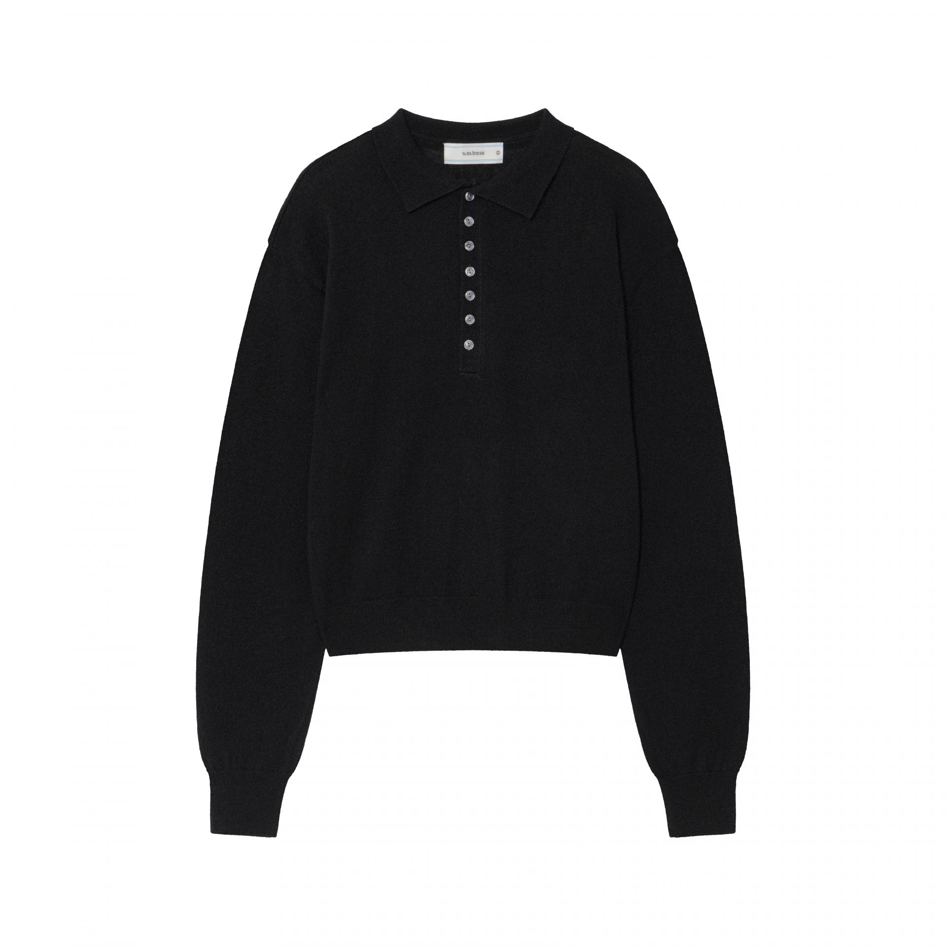 [WAVINESS] Linear Bloom Collar Knit Black