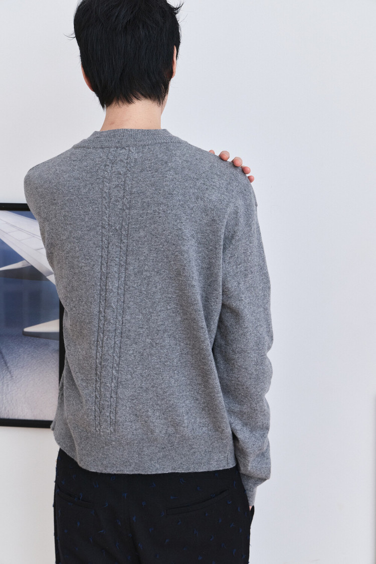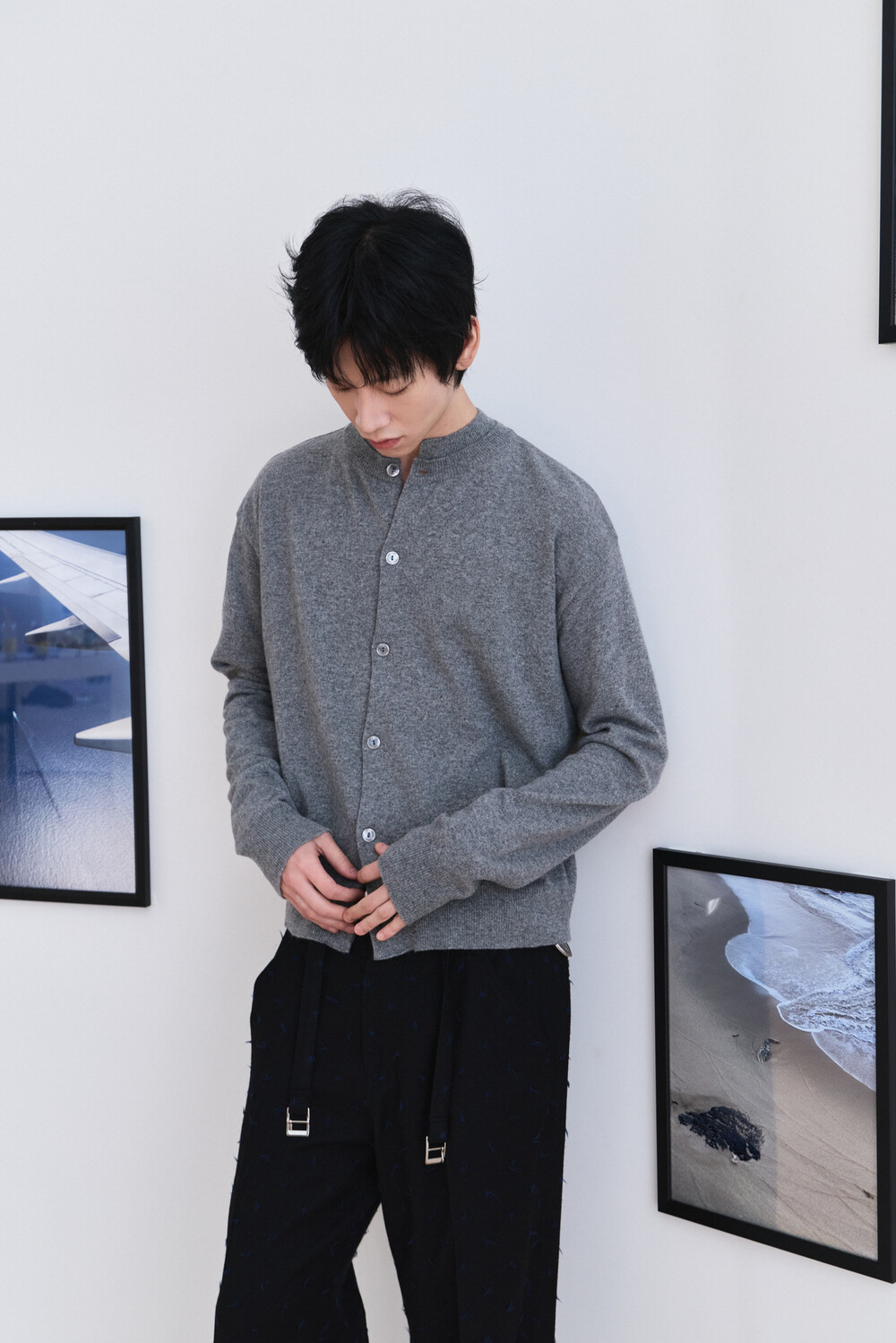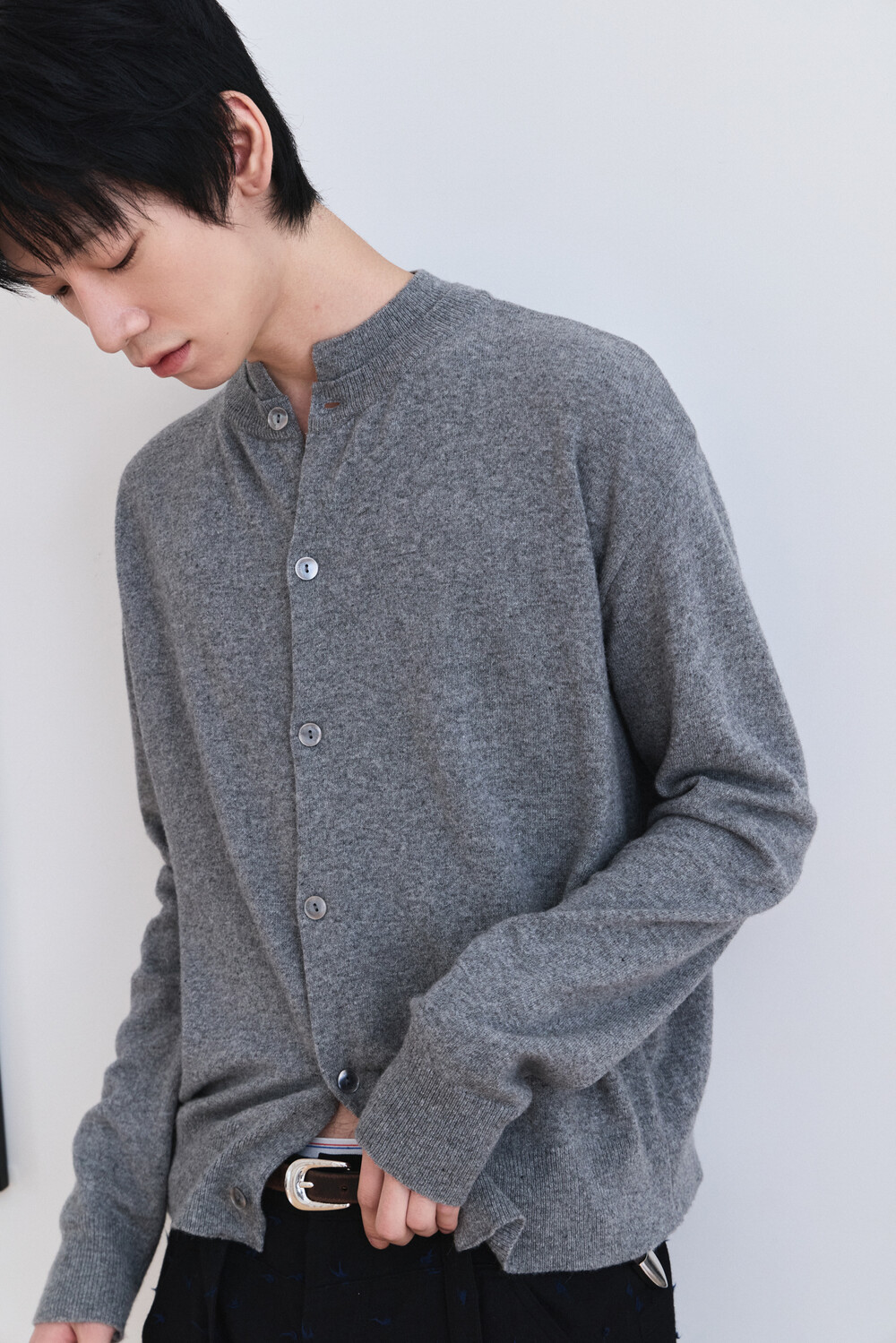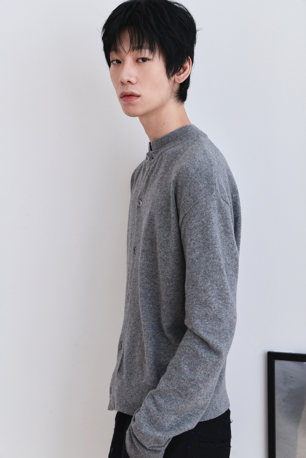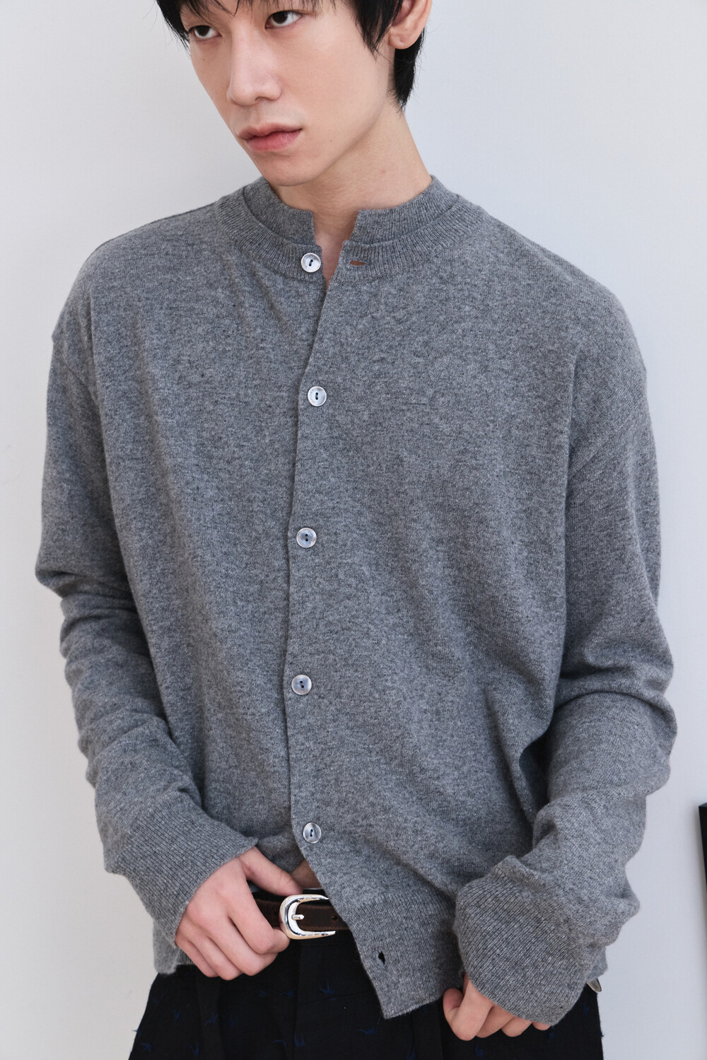 [WAVINESS] Double Frame Round Neck Cardigan Grey