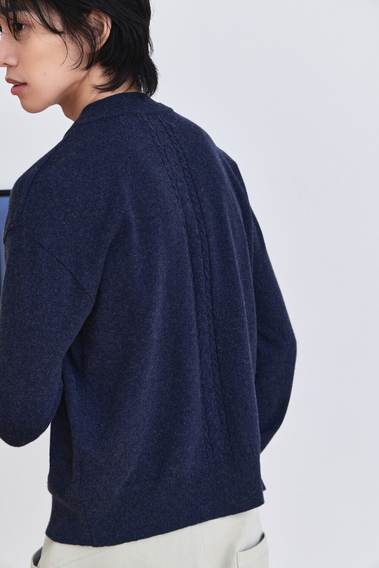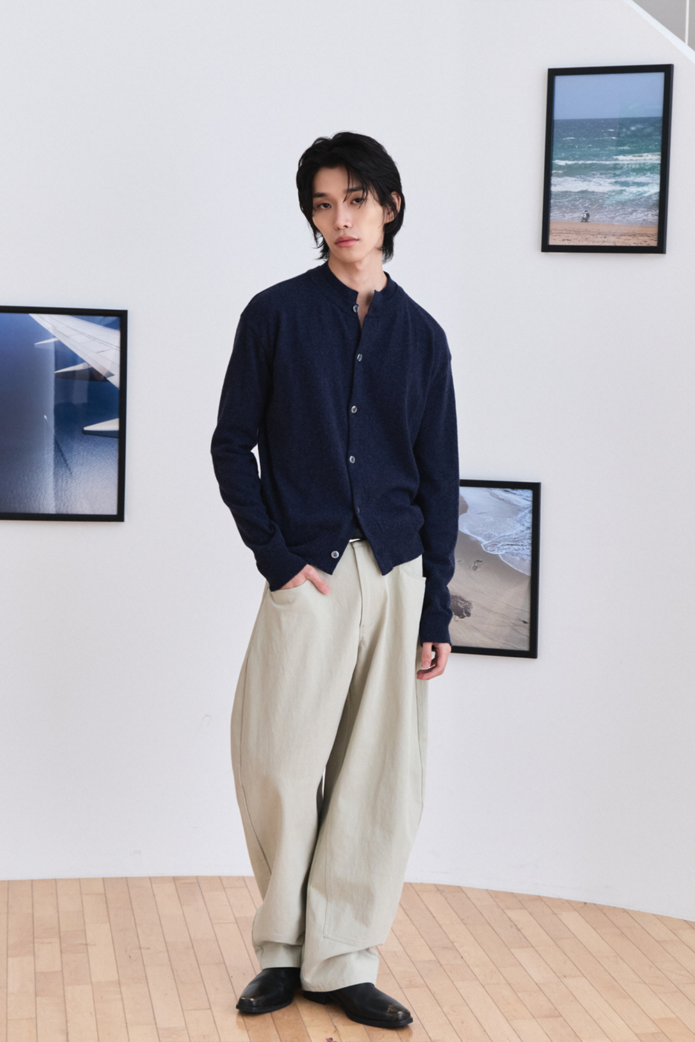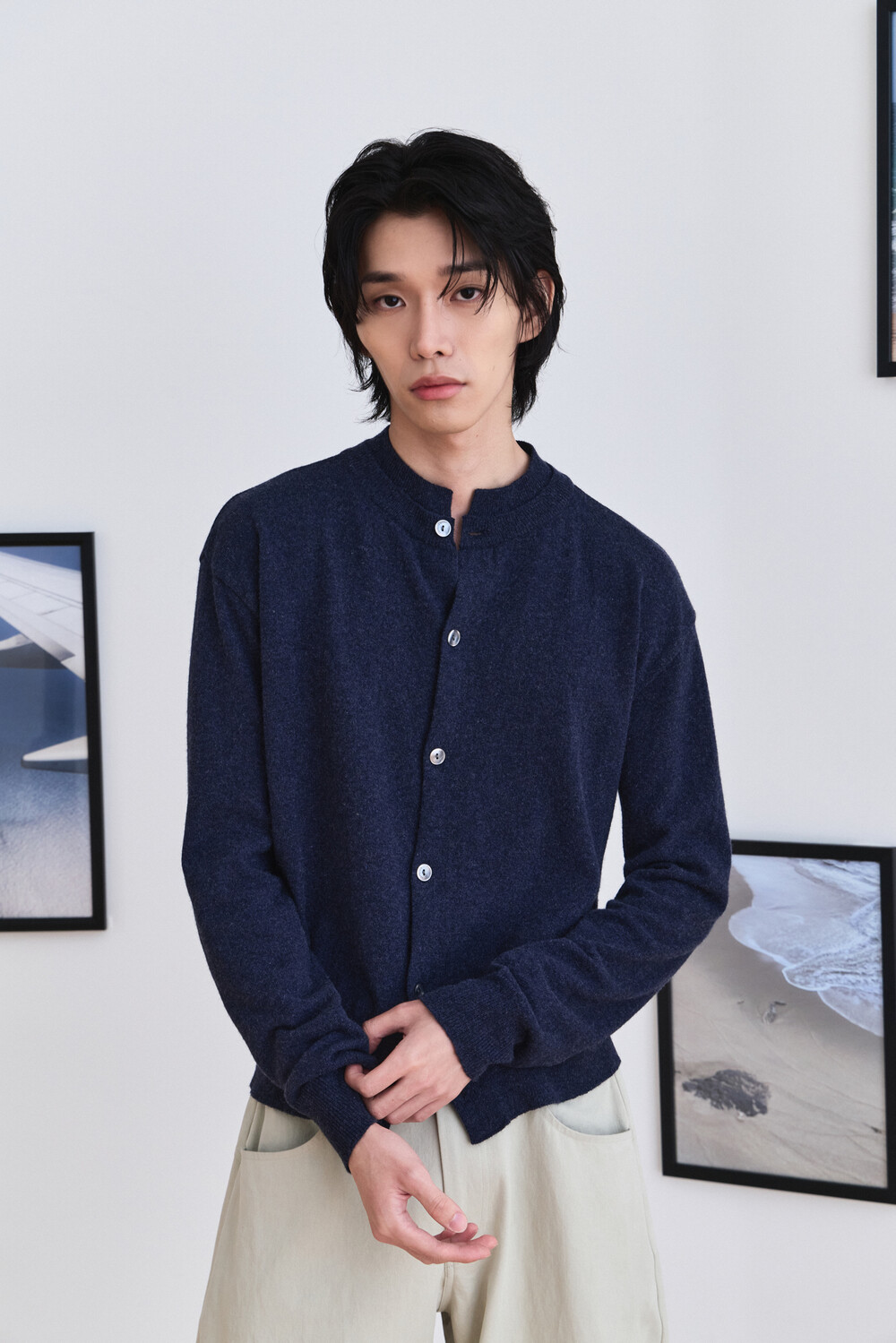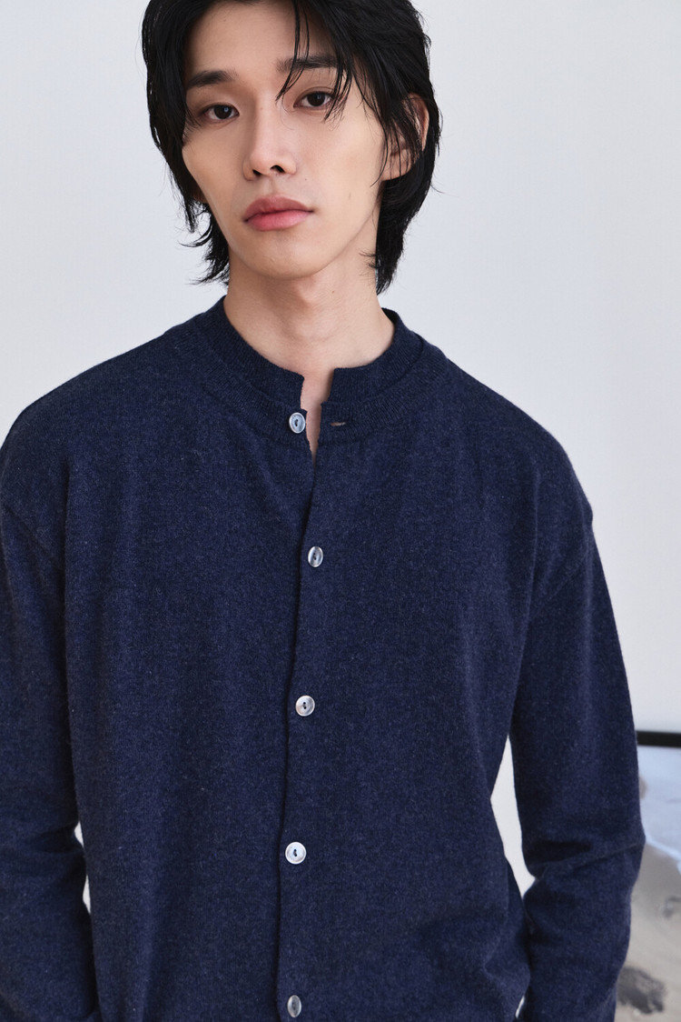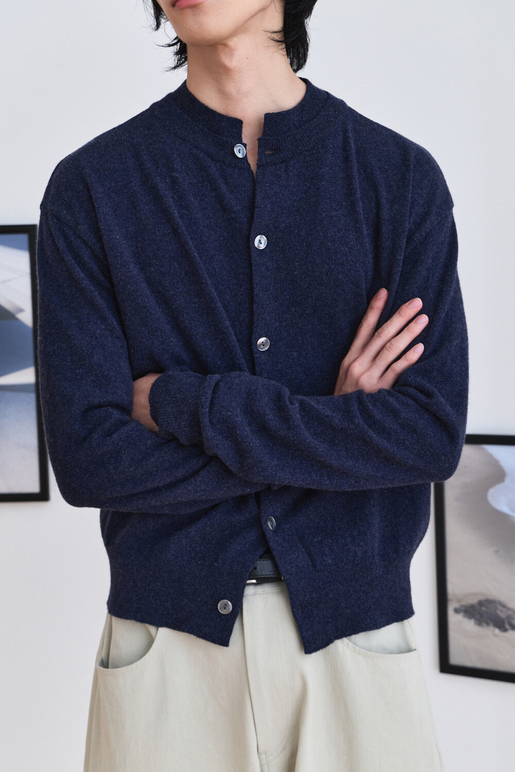 [WAVINESS] Double Frame Round Neck Cardigan Navy