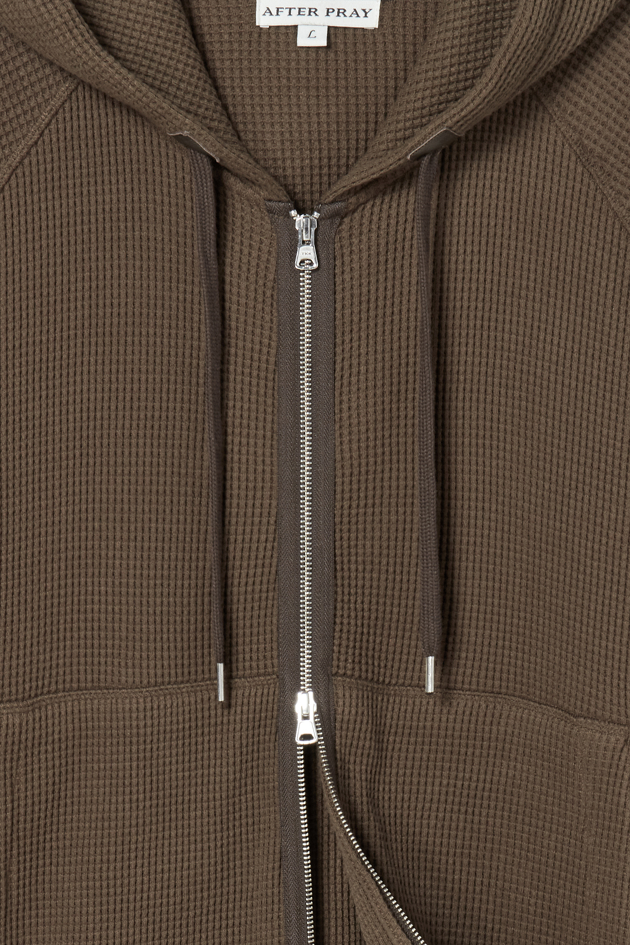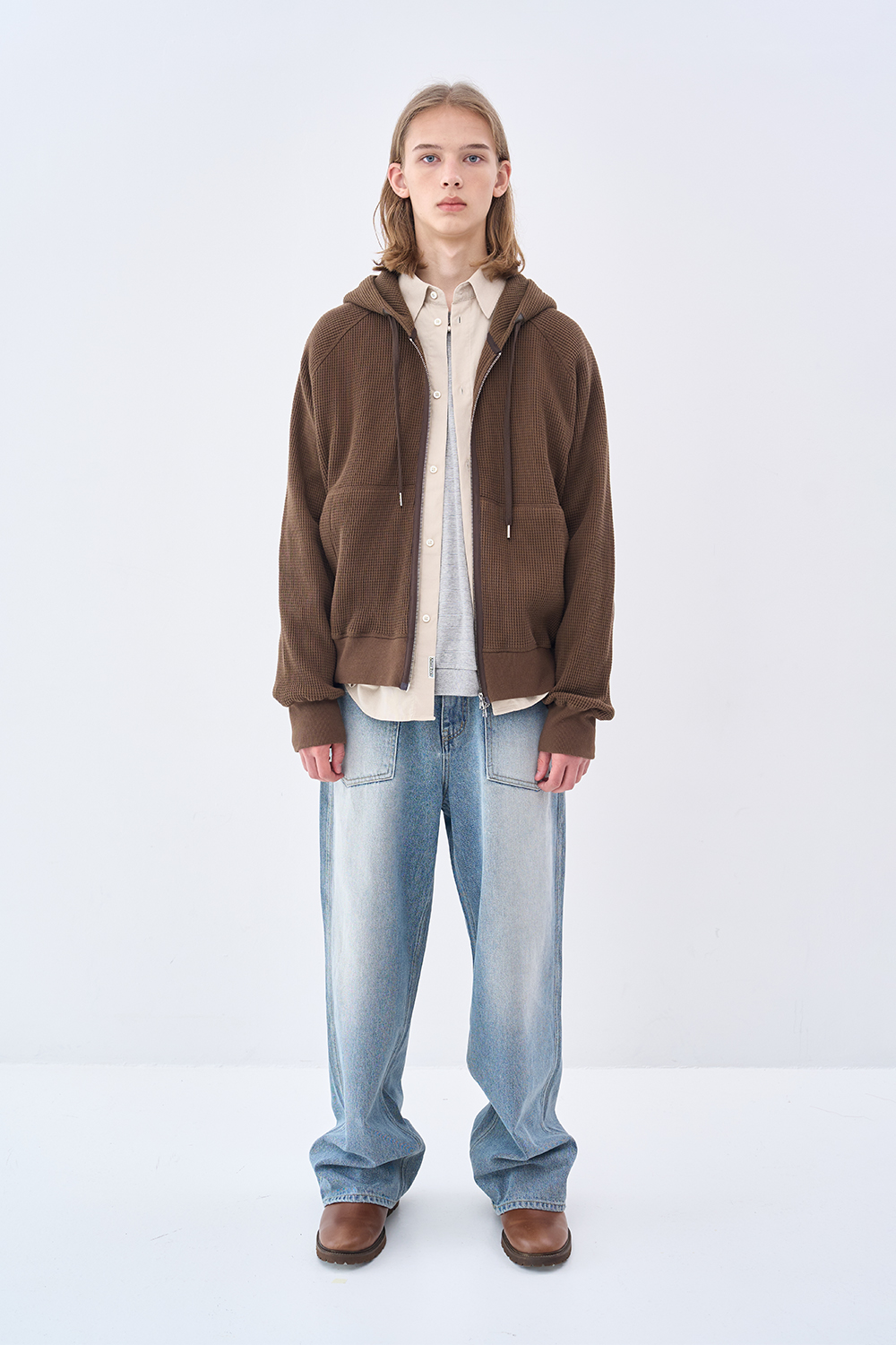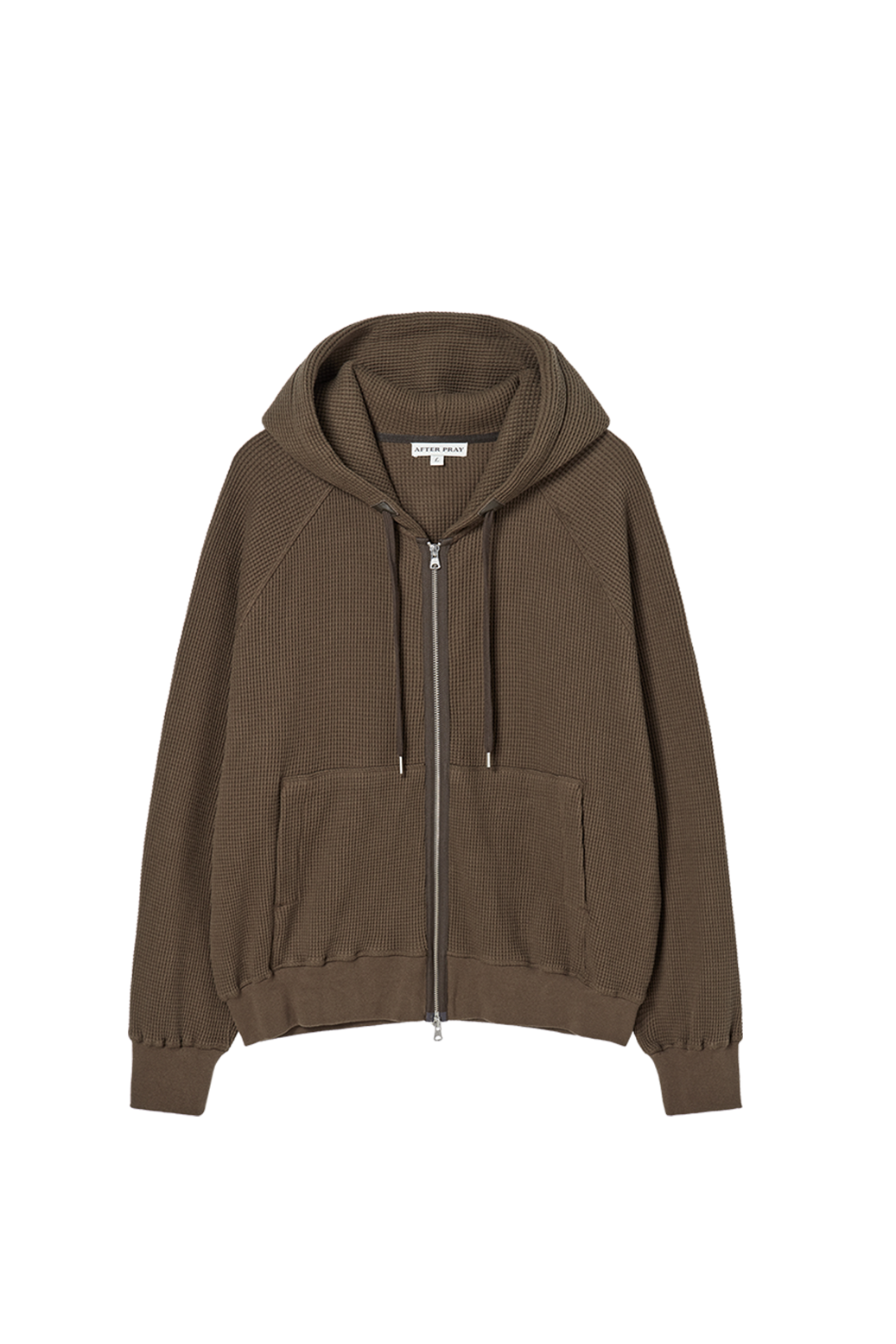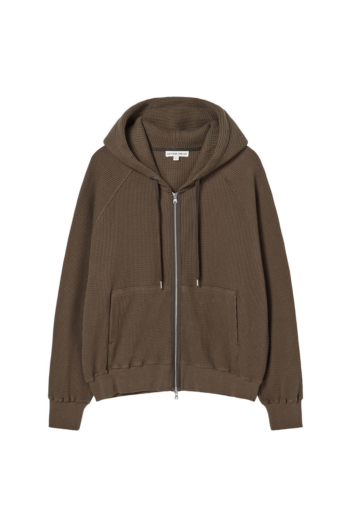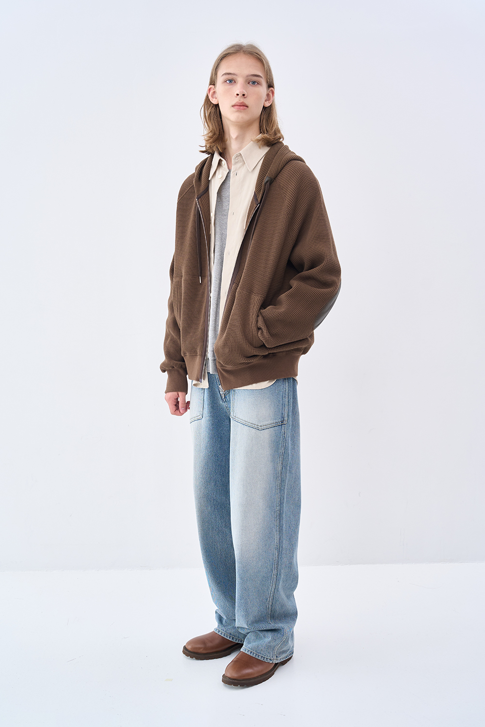 레더 패널 와플 집업 후디 브라운