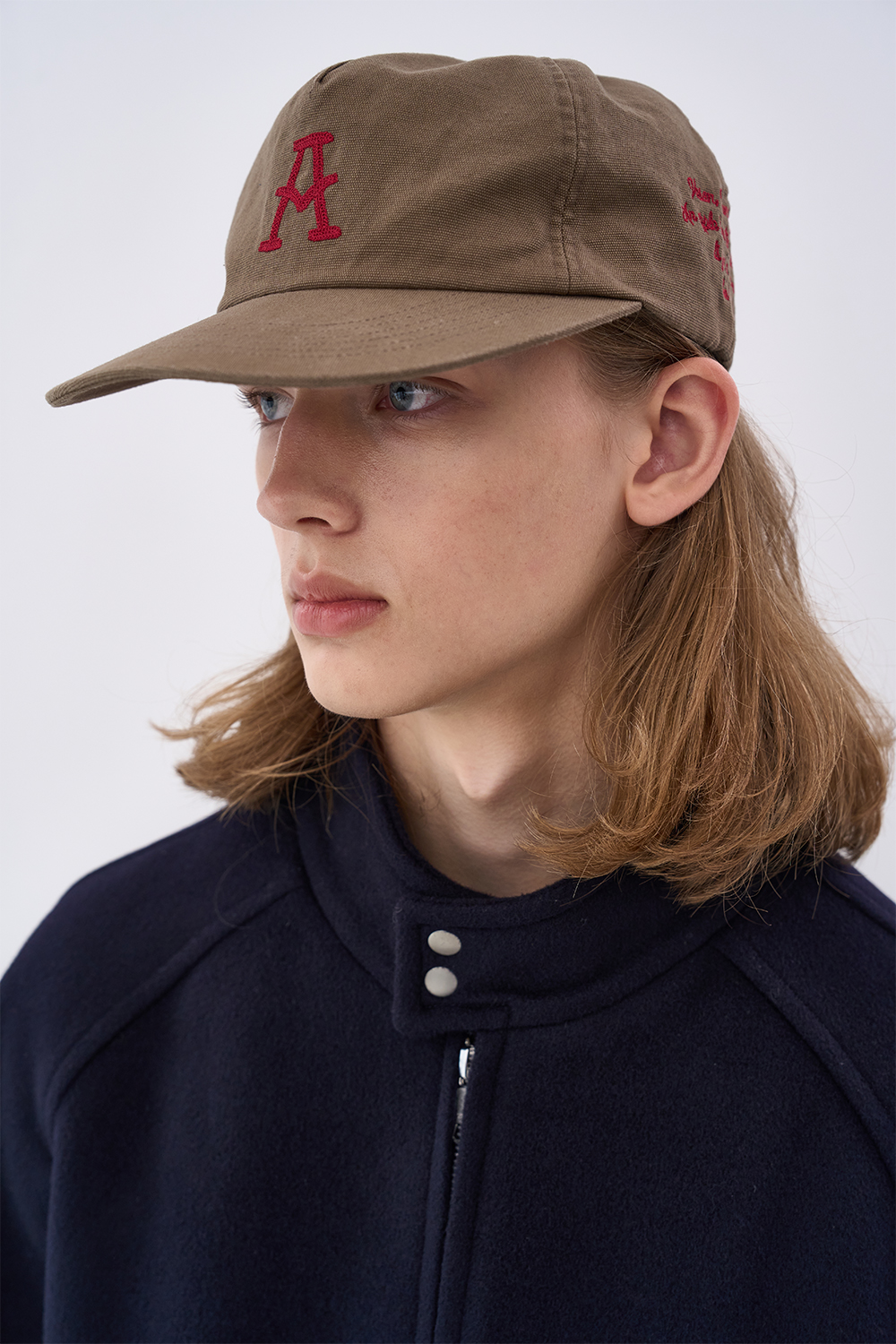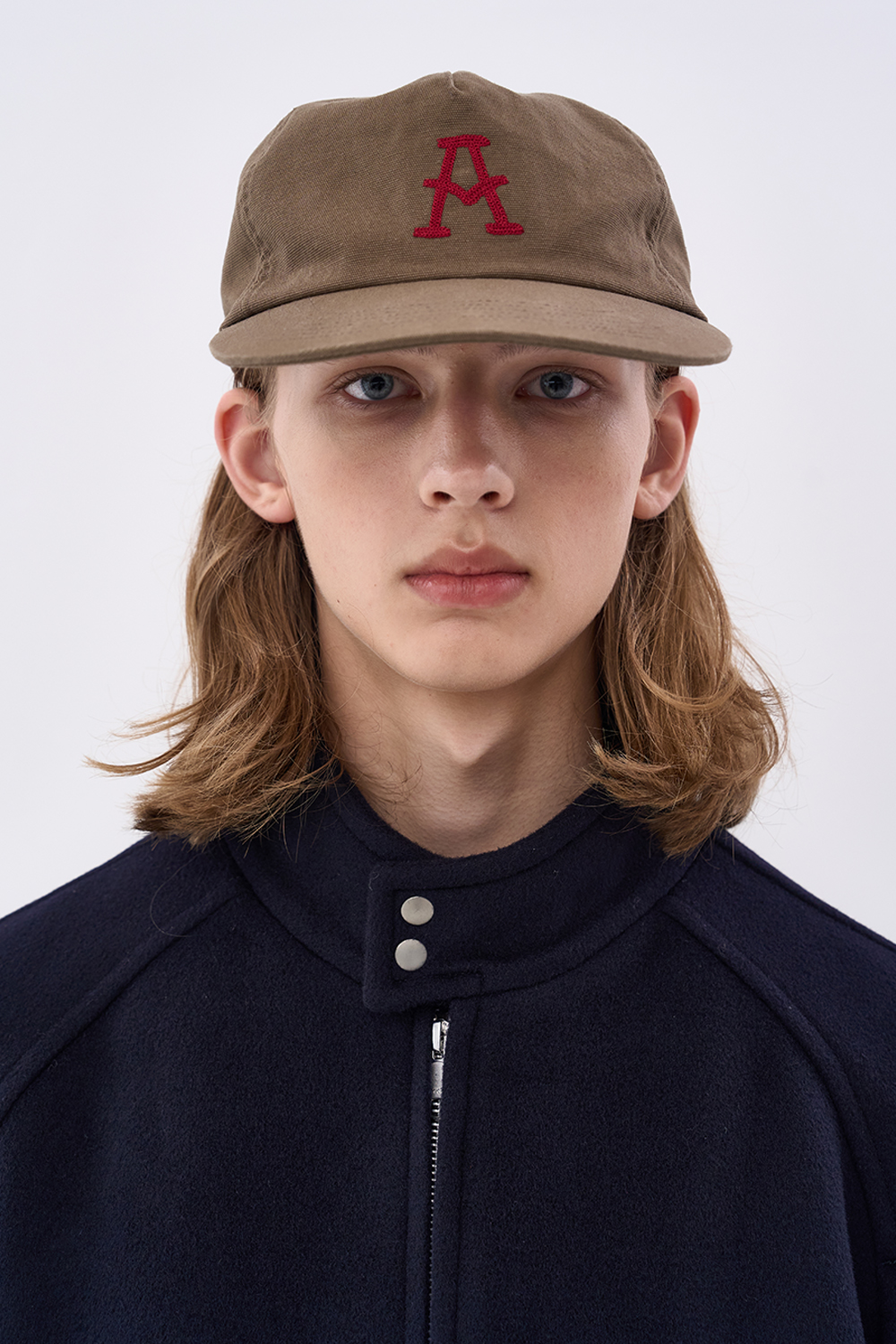 USA 베이스볼 캡에서 영감을 받아 완성한 시즌 캡. 바이오 워싱 처리된 14수 옥스퍼드 코튼 소재 사용. 다트가 적용된 5패널 패턴으로 깊이감 있는 입체 핏 연출. 날렵한 챙 라인과 얼굴을 감싸는 안정적인 실루엣이 특징. 시즌 테마를 반영한 A 심볼과 레터링 자수가 인상적인 포인트.