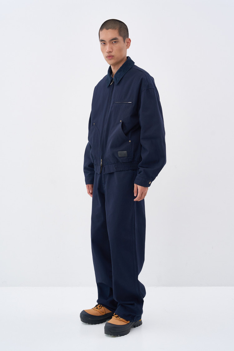 빈티지 워크 팬츠의 실루엣을 현대적인 시선으로 재해석한 워시드 코튼 팬츠. USA 원사 코튼으로 브로큰 트윌 편직을 구현하고 자연스러운 워싱으로 깊이 있는 표면감을 연출. 루즈한 핏과 양쪽 해머 루프 디테일로 워크웨어 특유의 터프한 무드를 현대적으로 구현. 매칭되는 워크 재킷과 함께 감각적인 스타일로 연출 가능한 아이템.